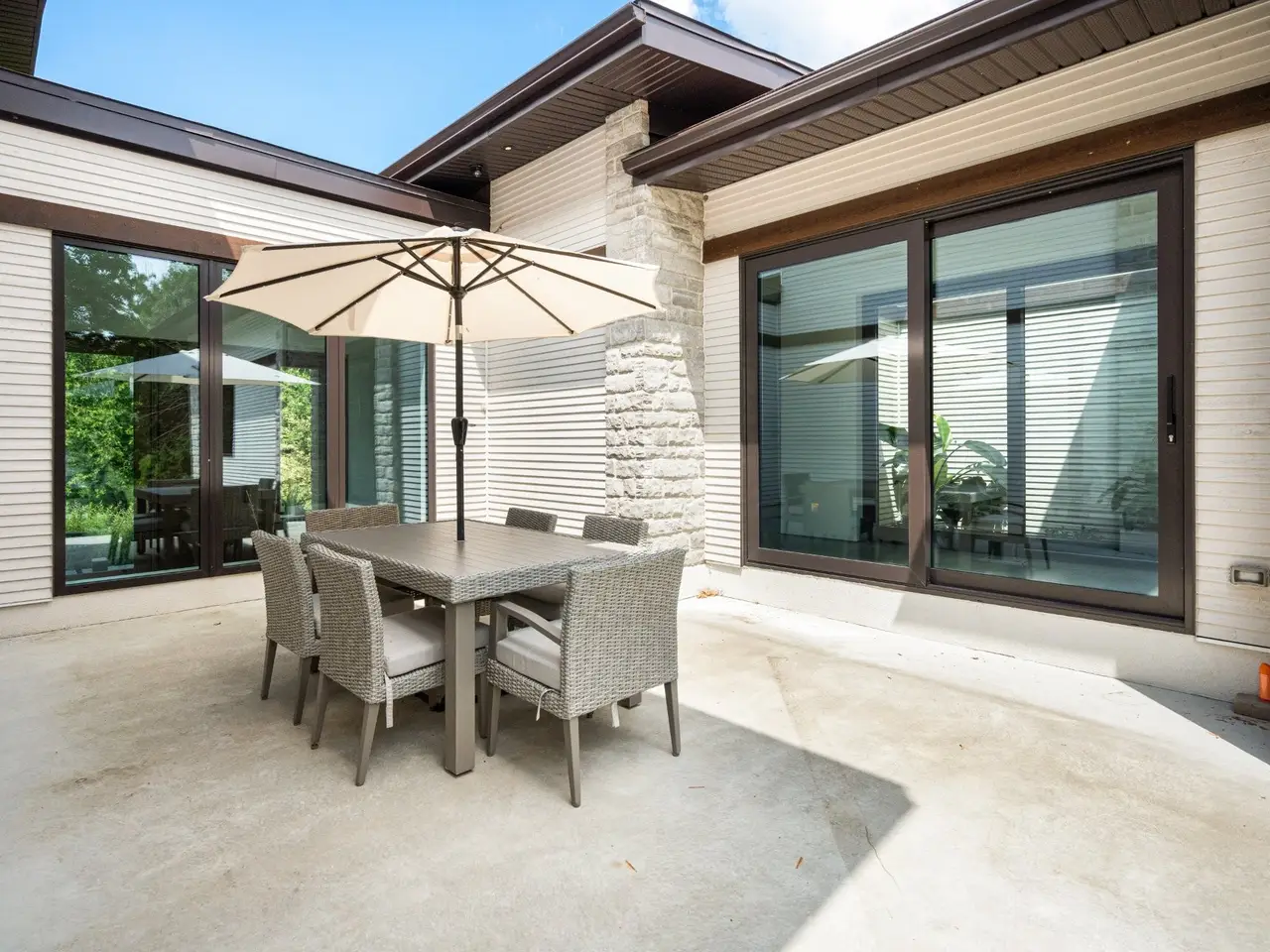 Welcome to 95 Upper Cambridge. This newly constructed 3+1 bedroom, 3+1 bathroom home is located on a sought-after street in Baie d'Urfe. Beautifully landscaped and situated on over 20,000 sq ft of property. This 2021 bungalow was meticulously crafted with cutting-edge contemporary architecture. You will find polished concrete floors with built-in hydronic radiant heating throughout the entire home. Ceiling heights vary from 9 to 12.5 ft on the main floor and 9 feet high in the basement.