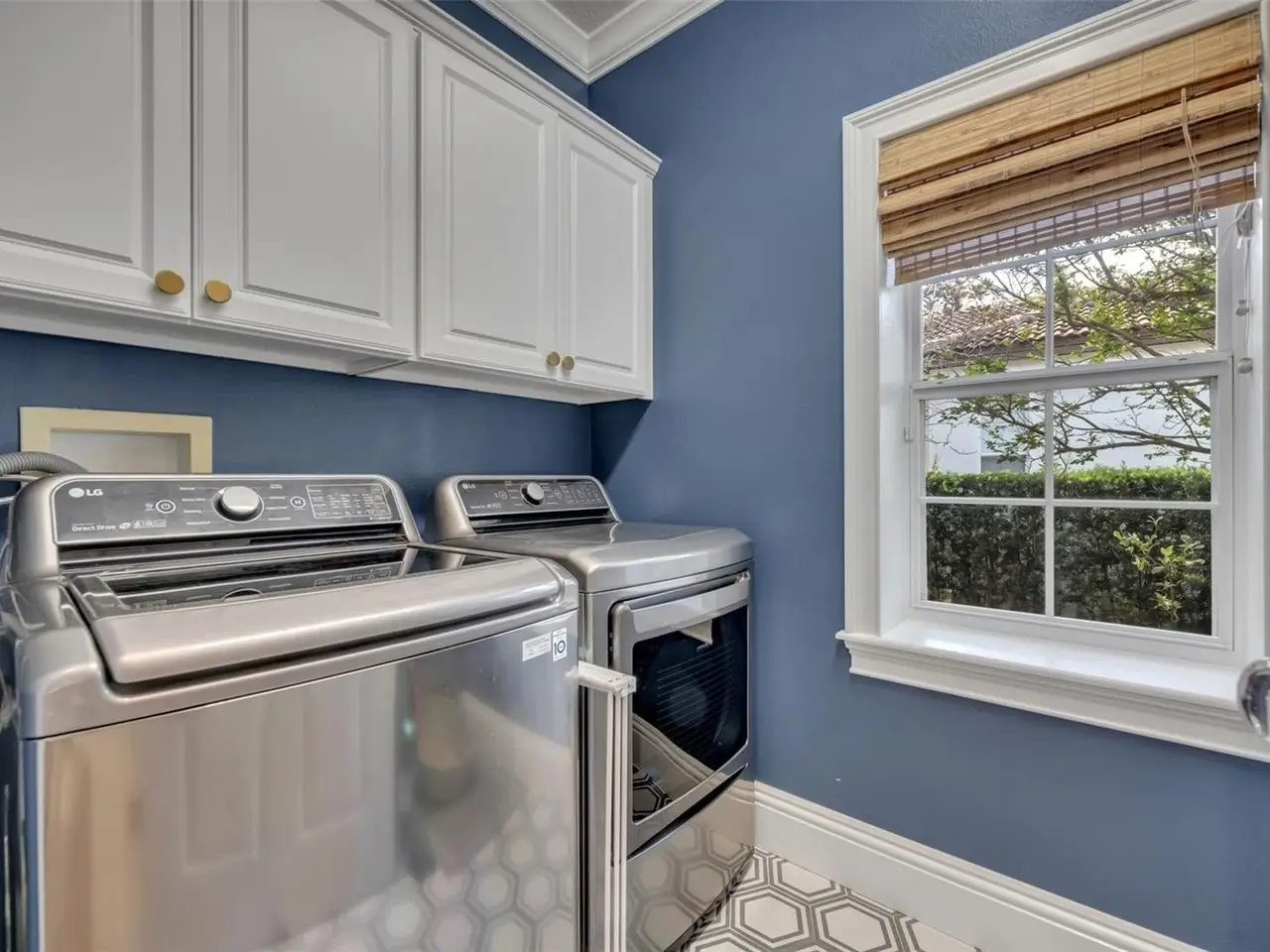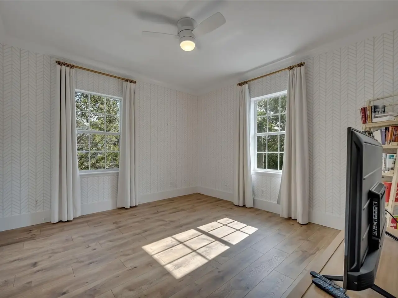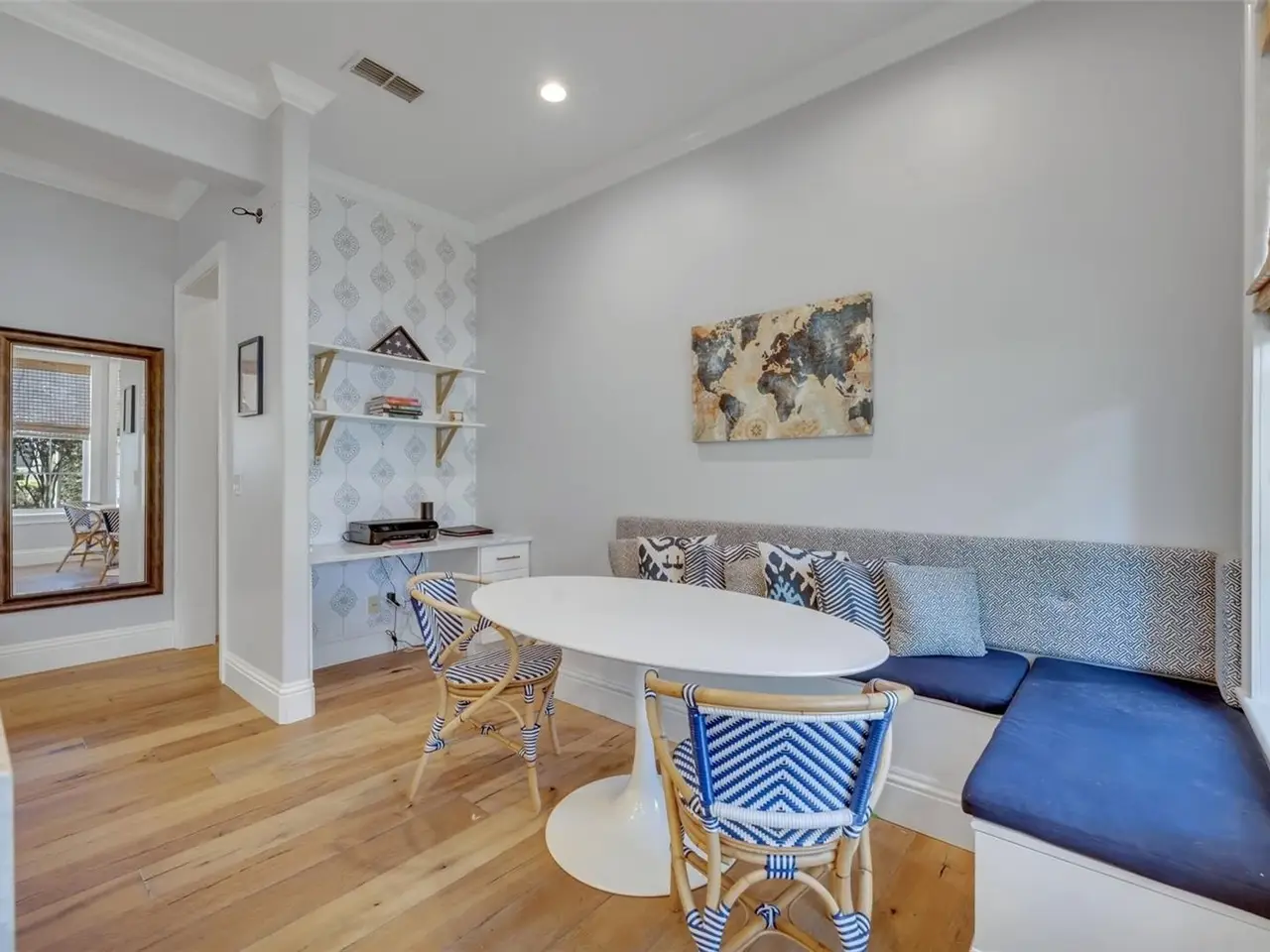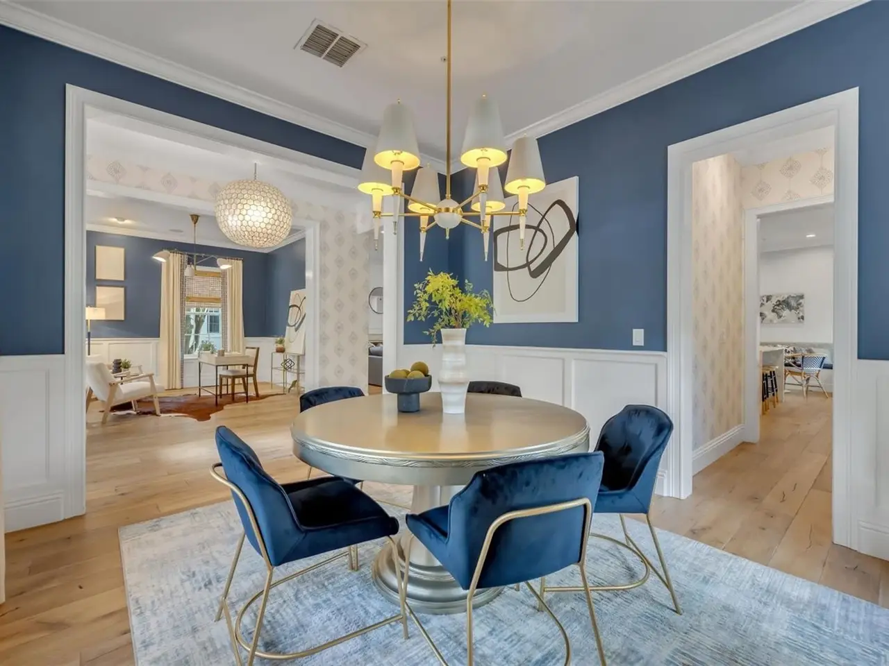 Under contract-accepting backup offers. Come see this stunning 5-bedroom, 4.5-bath, 3,811 sq ft home with a luxurious garage apartment, ideally situated on a prime corner lot in the heart of Baldwin Park. Inspired by the iconic style of Jonathan Adler, this home blends timeless sophistication with bold designer flair. Elegant details abound, including custom moldings, 8-inch wide French oak flooring, wainscoting in the office and dining room, and striking fixtures throughout. The light-filled great room features custom wall paneling, offering a refined yet welcoming space for relaxing or entertaining. The fully remodeled kitchen is a chef’s dream, boasting premium Bosch stainless steel appliances, custom marble countertops, and a show-stopping marble waterfall island with ample storage. Just off the kitchen, you’ll find a spacious walk-in pantry, a built-in office nook, and a custom banquette with hidden storage in the cozy eat-in area. The first-floor primary suite is a tranquil retreat, showcasing a beamed ceiling with tongue-and-groove paneling, crown molding, and French doors that open to a private side porch. The en suite bath feels like a spa, with marble floors and shower walls, a freestanding soaking tub, and a custom quartz-topped vanity. The second floor features two generously sized bedrooms connected by a shared Jack-and-Jill bathroom, an additional bedroom conveniently located next to a full hall bath, and a spacious, light-filled loft—perfect for use as a playroom, media room, or home office. Upstairs flooring has been recently upgraded with stylish laminate throughout, and all upstairs interior walls have been freshly repainted for a crisp, move-in-ready feel. Completing this exceptional property is a beautifully appointed garage apartment—ideal as a guest suite, home office, or rental opportunity—adding flexibility and value to an already incredible home. This is Baldwin Park living at its finest: elegant, functional, and effortlessly stylish. HVAC: 2021. Roof: 2021. New laminate floors and paint in the upstairs area of the main home.