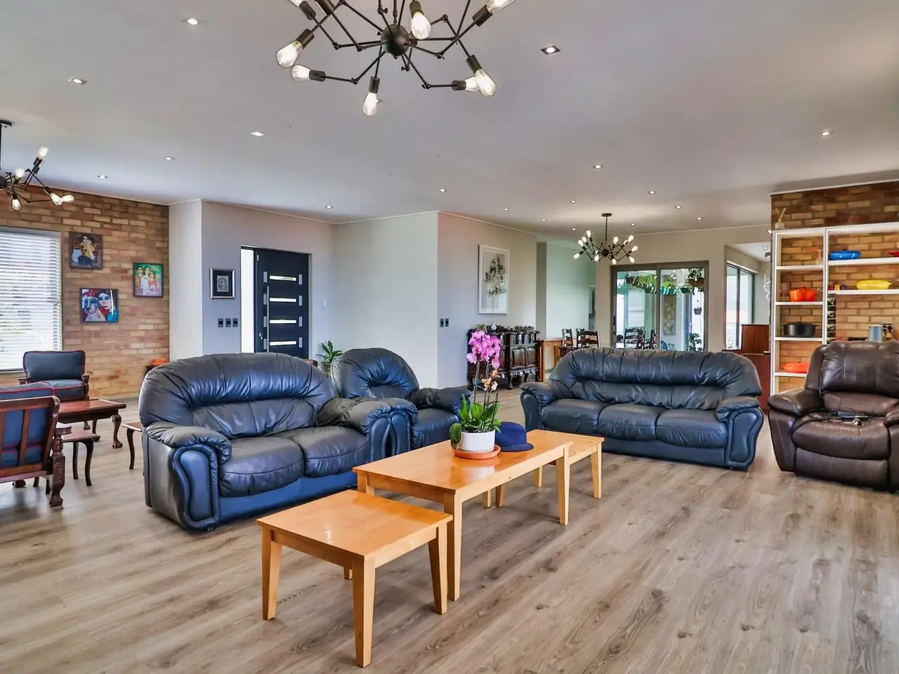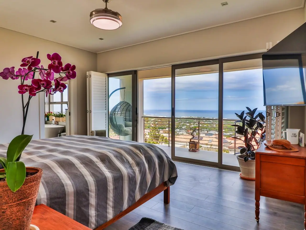 Dual Mandate - Exclusive and one of a kind, this striking residence is situated within the tranquil and exclusive Berghof Estate in Onrus River. The residence features a seamless blend of sophistication and comfort, presenting an ideal setting for entertaining, enhanced by breathtaking ocean as well as mountain vistas. Seamless indoor-outdoor living is achieved through a modern open-plan design, with the kitchen flowing effortlessly into the TV room, dining area and lounge complete with a feature woodburner fireplace. Outside, a spacious patio with stainless steel fire and gas braai combo overlooks Onrus River with a 180 degree ocean view - an idyllic setting for relaxation and enjoyment. The heart of the home is a chef's dream kitchen featuring top-of-the-line fitted appliances, large scullery, separate pantry and a view to die for. Convenient on the same level as the main reception area you will find a generously sized primary suite with an ocean view. Ensuite to a spacious full bathroom, double vanity and another Al Fresco shower which leads directly from the bathroom. The second and third bedrooms, both en-suite, complete the accommodation offering as a functional and separate apartment with its kitchenette and lounge area, with both bedrooms and lounge giving way to a large garden providing a private retreat for guests or family. Additional features of this enchanting home include a large study with a bathroom which could serve as a fourth bedroom as well, for the green fingers an observatory that leads from your dining area to show off your love of flourishing orchids, two laundry rooms available - one for the main house upstairs and one for your guests to use, a large fully integrated 28 Panel Solar and 8KVA inverter system and to complete this offering and maintain the large landscaped garden - 5 x 2 500 litres UV filtered water tanks. A double automated garage with direct access as well as ample off-street parking available.