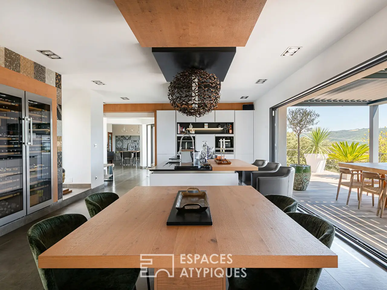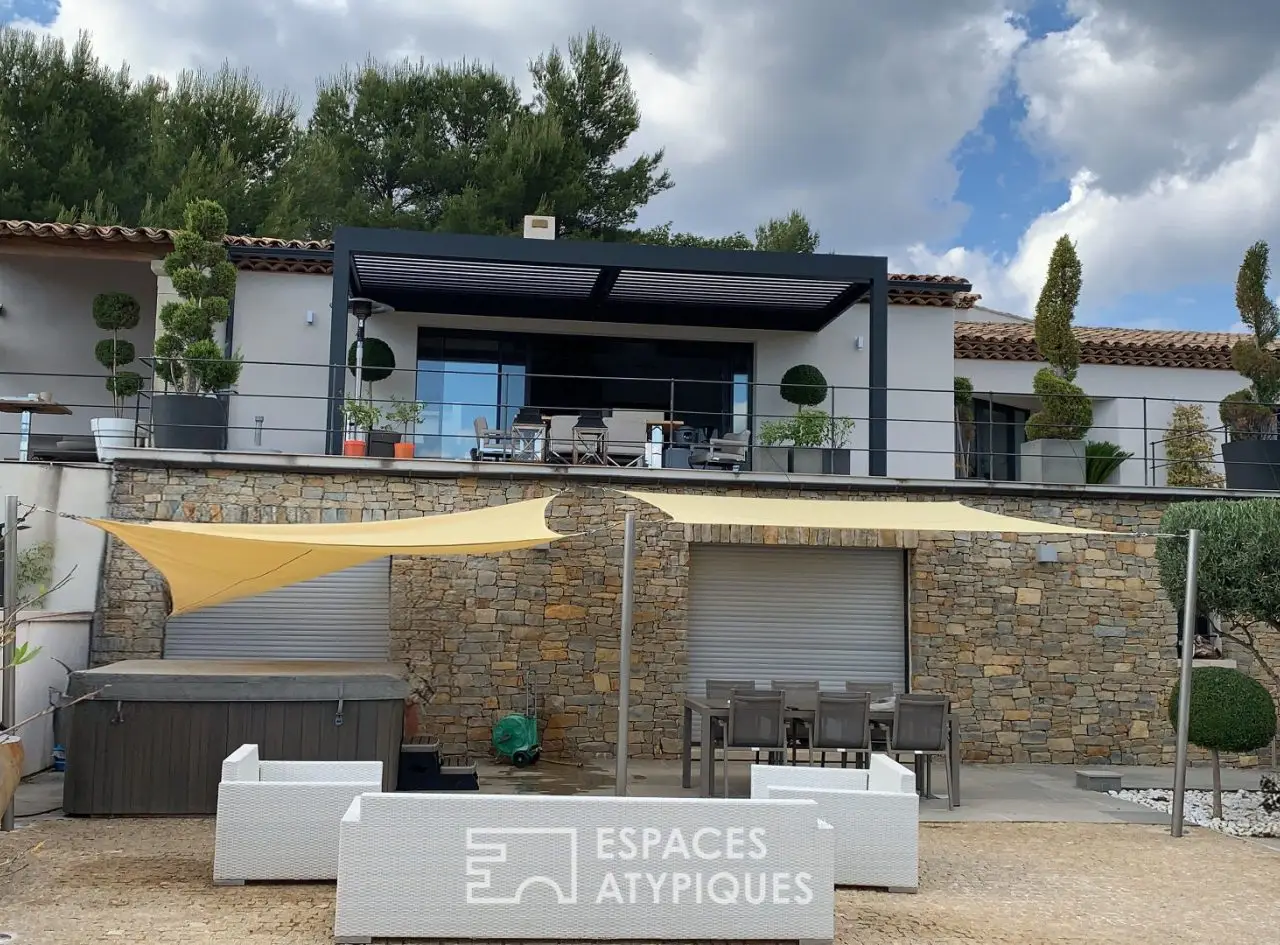 Located in a peaceful and highly sought-after environment in the commune of Oraison, this contemporary property built in 2014 seduces with its generous volumes, its exceptional unobstructed view and its high-end services.Built on a landscaped plot of 2,333 sqm, it offers 413 sqm of living space, extended by 300 sqm of terraces open to the surrounding nature and an elegant 10 x 5 meter swimming pool.The whole benefits from a rare panorama, without vis-a-vis, which accentuates the feeling of space and serenity.The main villa is organized around a vast living room of 110 sqm bathed in light, bringing together living room, dining room and open kitchen with direct access to the terrace covered by a bioclimatic pergola.A master suite, two bedrooms with shower room, a storeroom and numerous storage spaces complete this level.Two independent living spaces complete this configuration:- A single-story apartment with living room, kitchen, two bedrooms, bathroom and private terrace.- A studio equipped to receive comfortably.Each of these spaces has been designed to function autonomously, while remaining connectable according to needs, offering great flexibility of use: large family, reception, professional activity or rental.Comfort is omnipresent: underfloor heating, motorized roller shutters, automatic gate, alarm system, surveillance cameras, double garage, and carefully selected materials.A rare property in a prime location, designed for those looking for a place combining modern comfort, architectural elegance and quality of life in Provence.`ENERGY Class: C / CLIMATE Class: BInformation on the risks to which this property is exposed is available on the Georisques website: www.georisques.gouv.frFor any information contact Marion ROBERT 06 38 84 39 44 EI RSAC 892307539 MANOSQUEREF. 1089ADHPAdditional information* 10 rooms* 6 bedrooms* Outdoor space : 2333 SQM* Property tax : 6 185 €Energy Performance CertificateEPC : 122 kWhEP/m2.year* A 450Agency feesThe fees include VAT and are payable by the vendorMediatorMediation Franchise-Consommateurswww.mediation-franchise.com29 Boulevard de Courcelles 75008 ParisInformation on the risks to which this property is exposed is available on the Geohazards website : www.georisques.gouv.fr