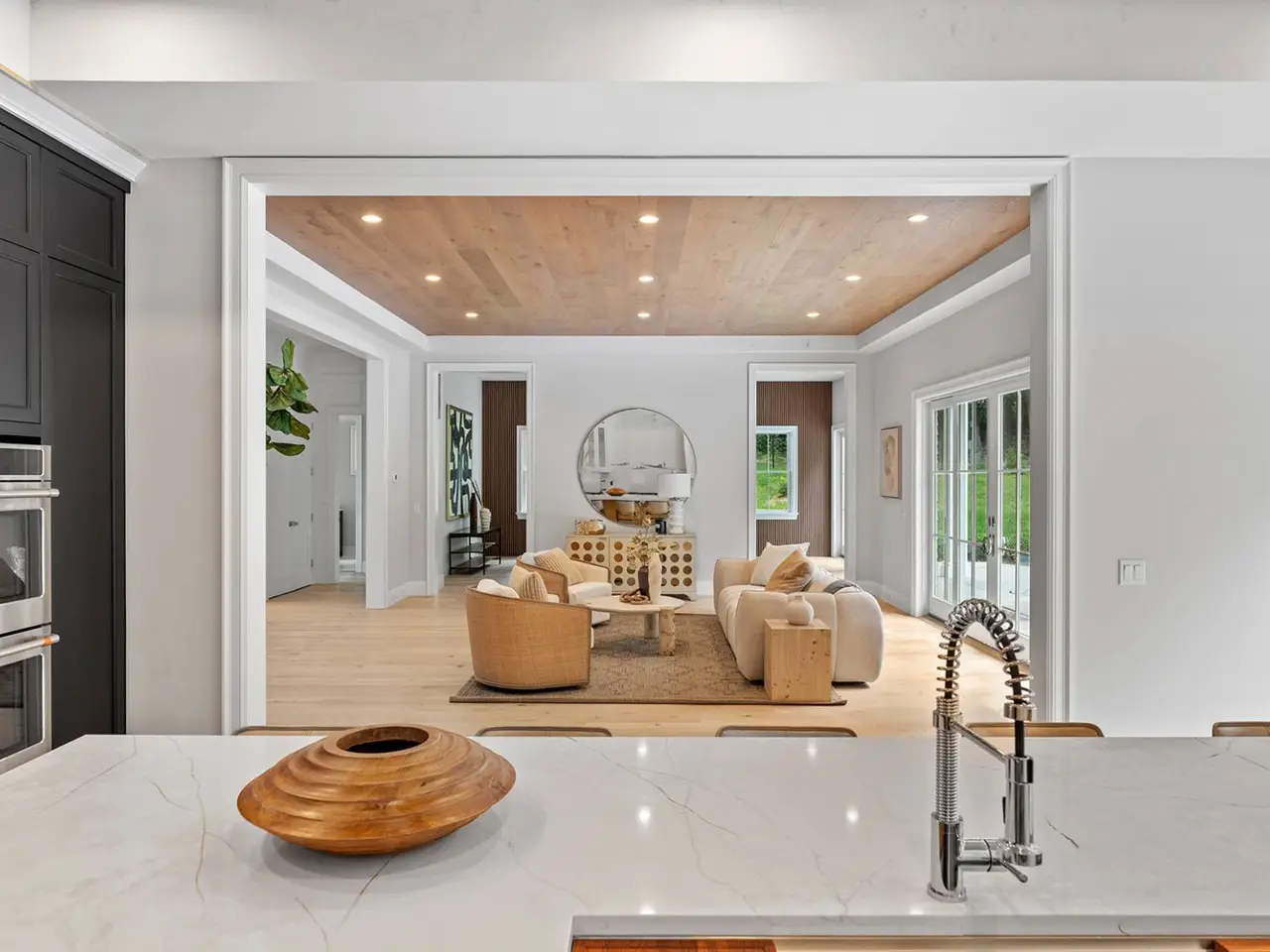 Stunning new construction situated on a 1.60+/- acre flag lot near the village of Sag Harbor, across from Little Peconic Bay. In a completely private, tranquil setting, this modern traditional style home features 6 bedrooms, 7 and a half bathrooms, and a total of 5,355 square feet of living space. The main level features a double-height foyer leading to a great room with an open kitchen, living room, and family room with a fireplace. A separate dining room caters to formal occasions. A spacious junior suite is also featured on the 1st floor as well as a mudroom, pantry, and dedicated laundry room. On the second level, a grand primary suite features a fireplace and a large luxurious bath. 4 additional en-suite guest bedrooms are also included as well as a 2nd dedicated laundry room. This magnificent property also includes a 360-degree circular driveway, an attached 2-car garage, a heated gunite pool with a pool shelf, a spa, a bluestone patio, and an extensive deck for entertaining. Permits for a tennis court are included.
