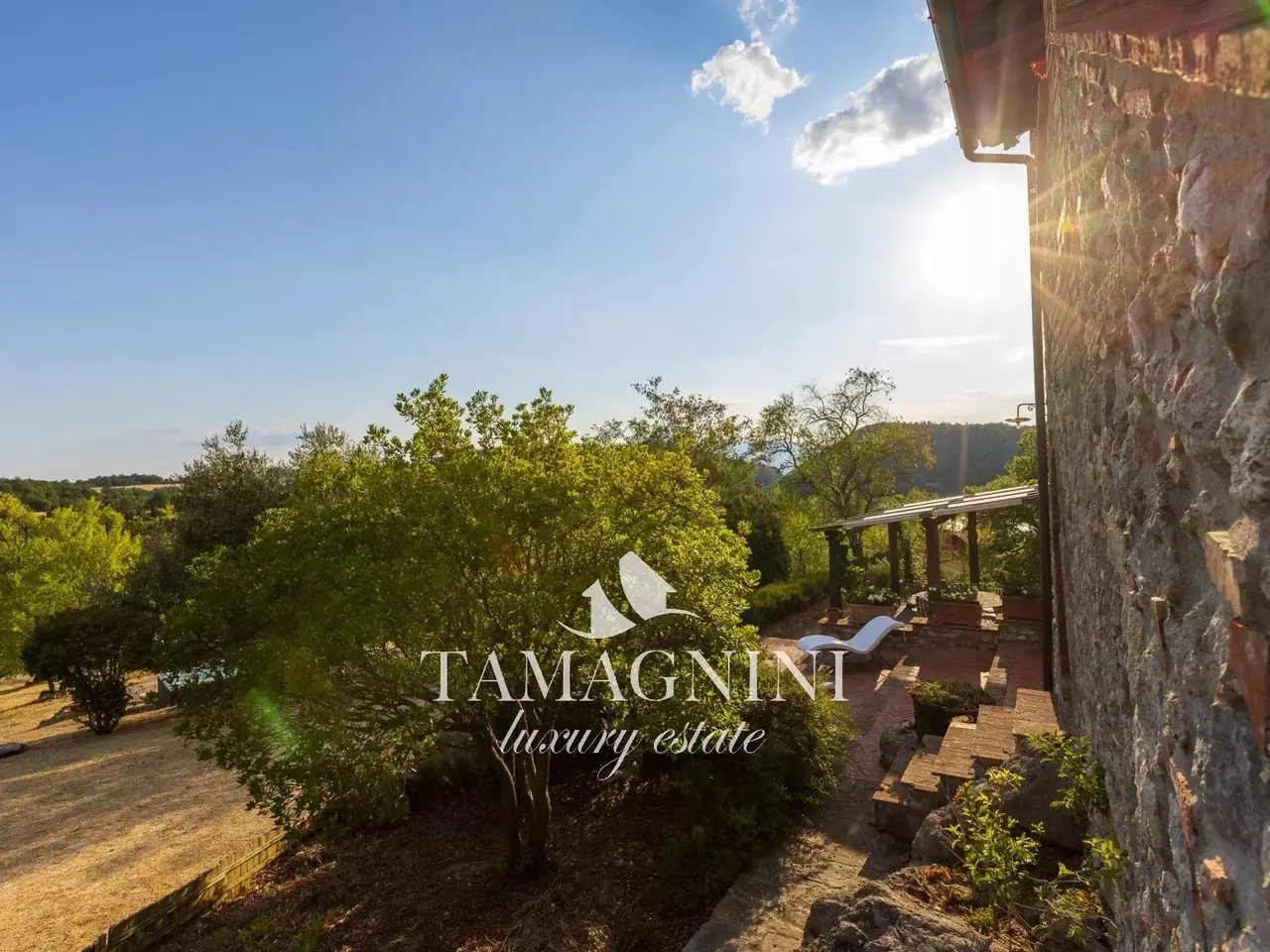 country house in Tuscany Valdorcia, today it's an charming countryside villa with panoramic views, offering absolute privacy and easy access with an excellent road surrounded by centuries-old oaks, cypresses, olive trees and almond trees. The home has a elegant structure of classic taste with large representative spaces, the hilly position and the particular large arched windows offer a spectacular views of the surrounding countryside; arranged on two levels for a total About 400 square meters. Ground floor composed of: entrance to triple living room with original stone arches, connected to the dining area, relaxation lounge with fireplace, the large characteristic Tuscan kitchen, the guest bathroom, as well as small two-room apartment for guests An internal staircase connects to the first floor consisting of a large hallway , four bedrooms and en suite bathroom, as well as another study room with fireplace, bathroom, with further access directly from an external staircase. In the home there are further accessory compartments. The driveway is planted with cypresses, there are olive and almond trees, patches of gorse, and in the garden lavender and rosemary, completed by 13 hectares of land.