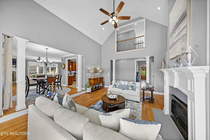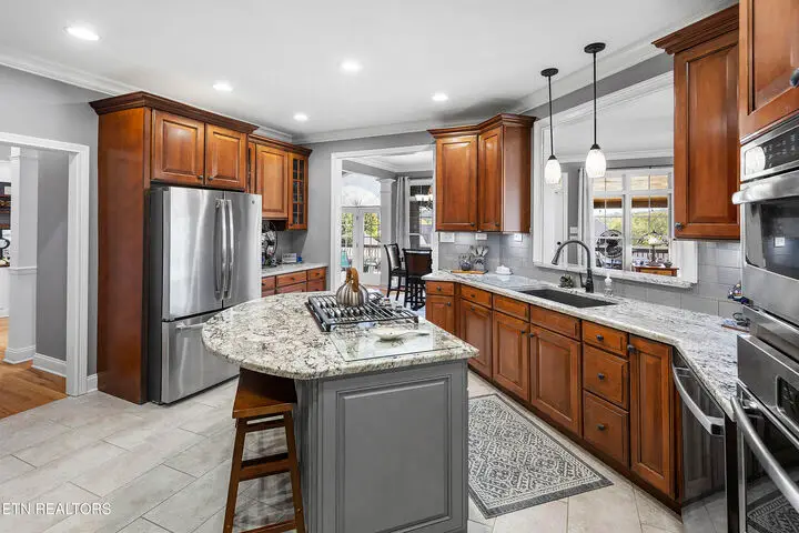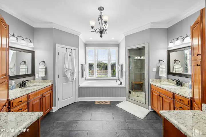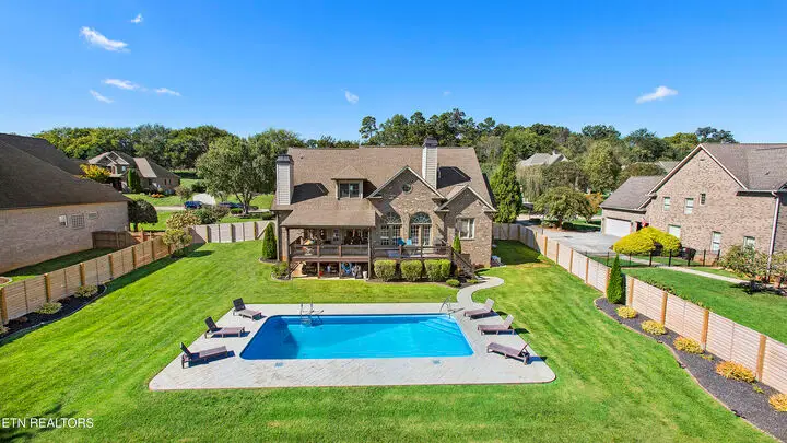 Experience refined living in Copperstone at Choto, one of West Knoxville's most desirable neighborhoods. Built in 2006 and offering approximately 3,962 square feet, this 4-bedroom, 3.5-bath all-brick home blends timeless craftsmanship with modern comfort. Every detail reflects quality—from the hardwood flooring on the main level to the natural light that fills each living space. A gracious foyer opens to a formal dining room with wainscoting and tray ceiling, complemented by a living room featuring a gas fireplace, built-in bookshelves, and cathedral ceilings. The family room centers around a stone gas fireplace and transom windows, creating a warm, inviting atmosphere that connects seamlessly to the kitchen and breakfast area. The chef's kitchen showcases granite countertops, stainless-steel appliances, custom cabinetry, and a large island that anchors the open floor plan. Whether entertaining or enjoying quiet mornings, the design provides both elegance and practicality. The primary suite on the main level offers a true retreat with a see-through fireplace, dual walk-in closets, and a spa-style bath featuring granite-topped vanities, a walk-in tiled shower, and a soaking tub. Upstairs are three spacious bedrooms, two updated full baths, and a bonus room ideal for media, recreation, or office use. A walk-in attic adds convenient storage. Outdoor living is equally impressive. A partially covered back deck overlooks the fenced backyard, newly enhanced with a wood privacy fence and integrated lighting. The in-ground pool offers a private oasis perfect for gatherings or relaxation. A sealed covered front porch, sealed driveway and sidewalks, and a sealed three-car garage contribute to the home's well-maintained curb appeal. Additional features include: • Encapsulated crawlspace with concrete floor and extra storage • Dual tankless water heaters for energy efficiency • Irrigation and security systems • Freshly re-tiled upstairs bathrooms and new carpet throughout Located near Fort Loudoun Lake, Concord Park, and area golf courses, this home places recreation and leisure just minutes away. The Turkey Creek retail district and West Knoxville dining are a short drive, offering convenience without compromising tranquility. The Copperstone community is known for its landscaped streets, well-kept homes, and easy access to main corridors connecting to downtown Knoxville and neighboring counties. Served by Farragut-area schools (verify attendance zones), this location offers both comfort and practicality for daily living. Whether enjoying the peaceful neighborhood vibe or entertaining by the pool, this home captures the best of luxury and lifestyle in one exceptional property. Schedule a private showing to experience the quality, space, and setting that make 12728 Watergrove Dr. truly stand out in today's West Knoxville market.