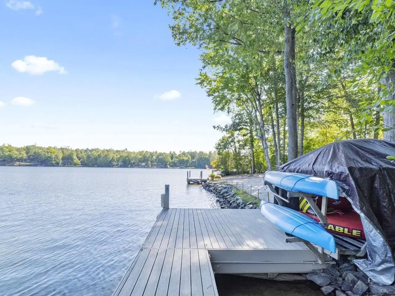 Lakefront Elegance with Docks, Beach, and Views