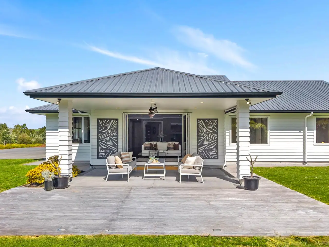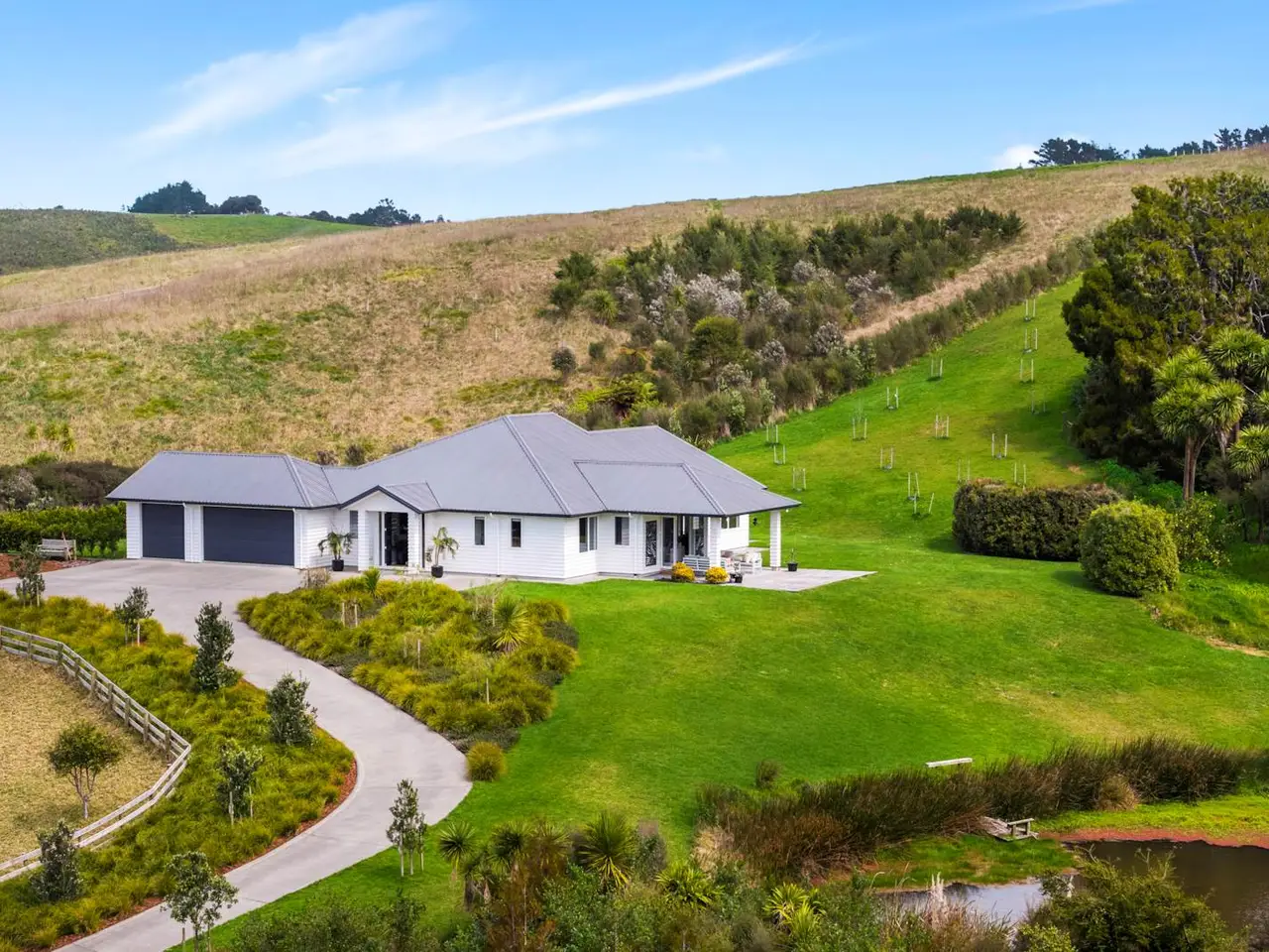 Dairy Flat is renowned for its impressive properties with generous sized sections whilst being moments from state highway one. 108 Tender Road is no exception. Escape the chaos of a busy working day with a drive that restores wellbeing and calm. The beguiling approach builds anticipation, knowing that your arrival will quench your thirst for a luxury retreat for yourself, your family and friends. This magnificent home does not disappoint, built in 2015 set on a pristine 2.7168 ha block, every inch of this 335m² abode affords expansive rooms with panoramic rural views on every aspect. Crafted for effortless living, this single level residence boasts high-stud ceilings, rich wooden floors, and a huge open plan living, kitchen, dining area with an island large enough to seat all of the family. This expansive room spills outdoors to a covered patio and deck overlooking your own private lake surrounded by native bush, wetlands and birdsong all in glorious north facing sunshine. Two more spacious living rooms, four double bedrooms, including a sumptuous master suite are accompanied by two large fully tiled bathrooms, triple-car garaging, and a separate laundry. The layout is both generous and practical. And that’s not all.... down the drive is a show-stopping ‘man cave’, perfect for more cars, hobbies, storage for sports equipment, or even a home gym. Elevated and private, fully fenced with gated entry, rolling lawns, wetlands and wildlife, a paddock for livestock or pets, and incredible indoor-outdoor flow. This is more than just a property, 108 Tender Road radiates mana, a spiritual sense that will resonate with everyone who comes to visit. Deadline sale: Closes on Wednesday 22 October 2025 at 1:00PM (unless sold prior)