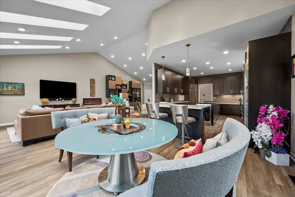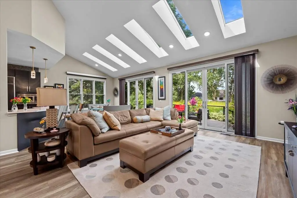 Stunning three bedroom, two full and one half bath ranch home in desirable Legacy Club with picturesque pond views. Sun-filled foyer with high ceilings and modern fixture opens to a dramatic great room featuring a vaulted ceiling, six skylights, electric fireplace and a wall of sliders leading to an expansive composite deck, perfect for seamless indoor/outdoor entertaining. Chef's kitchen boasts custom wood slab cabinetry, quartz perimeter counters, mosaic stone tile walls, stainless steel appliances, island and breakfast bar. Adjacent eating area flows into the great room and opens to the deck. A formal dining room with decorative paneled accent wall adds elegance and functionality for hosting. New Karastan luxury vinyl planked flooring throughout main living areas. The private primary suite offers a tray ceiling, two walk-in organized closets and exquisite pond views. A stunning, spa-like bath features oversized porcelain tile flooring, dual vanities with sleek Zebra wood cabinetry and quartz countertops, custom decorative tile wall surround, large Hydromassage soaking tub, oversized shower and separate commode room with built-in custom cabinetry. Two additional bedrooms share a hall bath. The main level also features a large laundry/mudroom with storage and access to the attached three-car garage, complete with epoxy coated flooring and EV charger. Unfinished basement offers endless possibilities and has great storage. The expansive composite deck with retractable awning provides panoramic views of the tranquil pond. Additional upgrades include a monitored alarm system with 6 Ring cameras, digital keyless entries and backup generator. This home is a knockout - move right in and enjoy Legacy Club living at its finest!