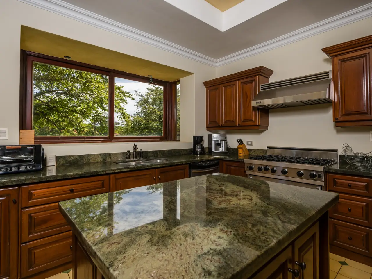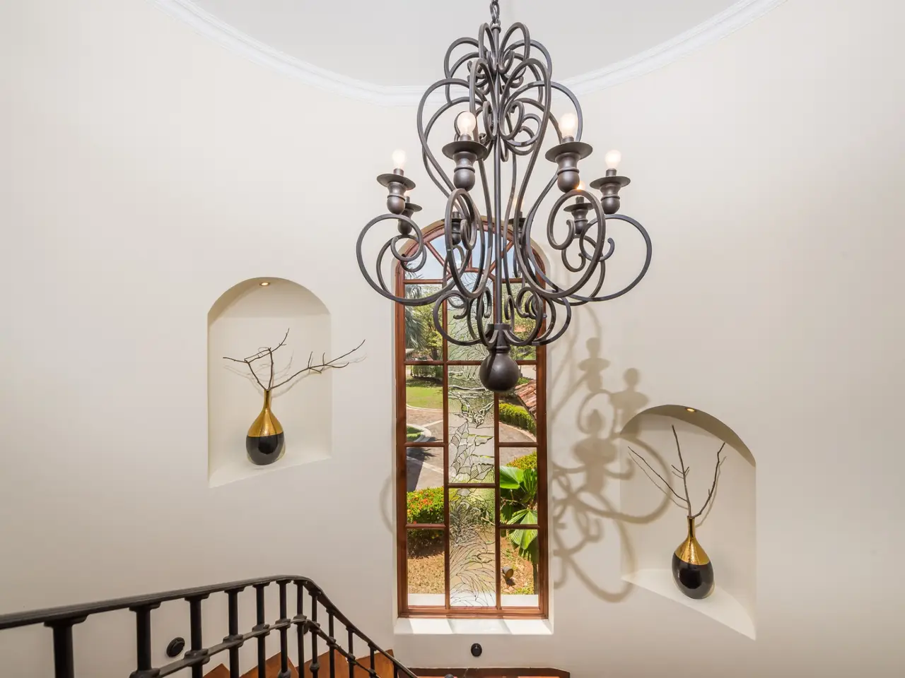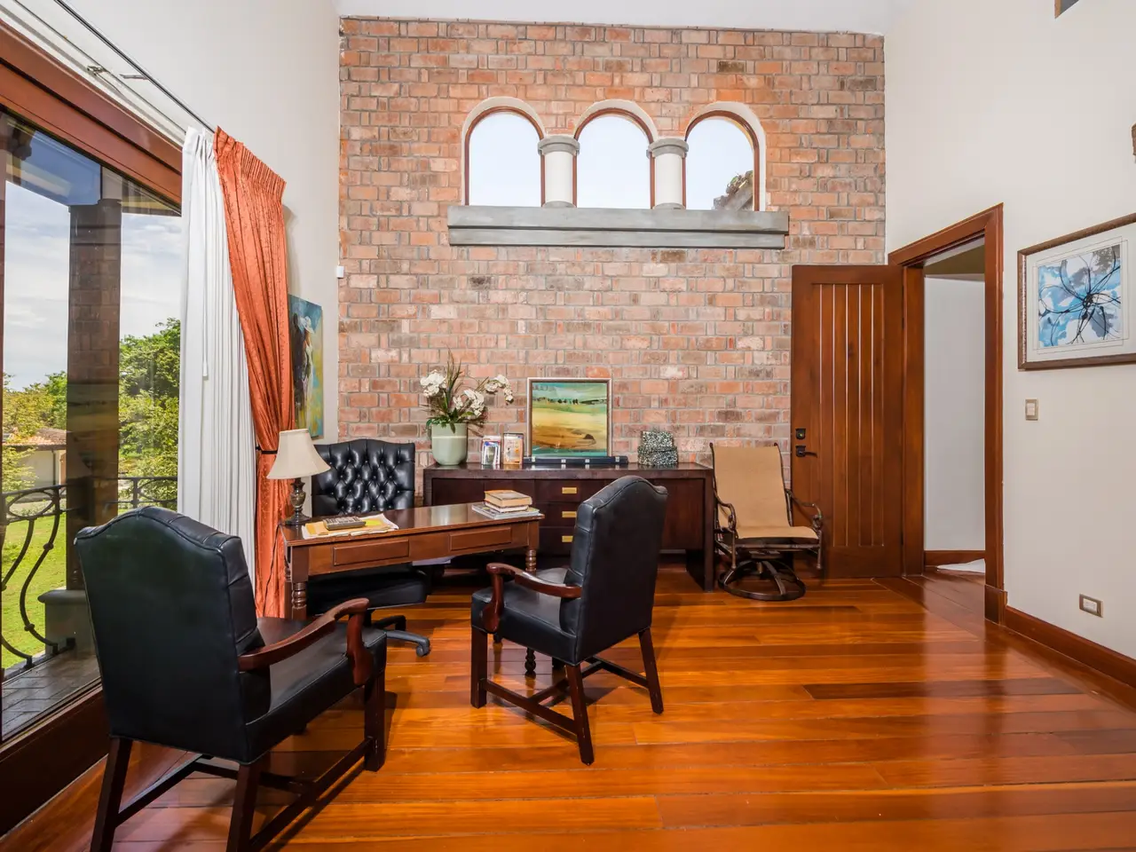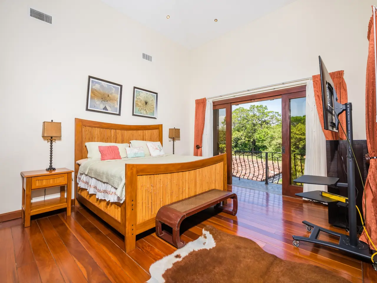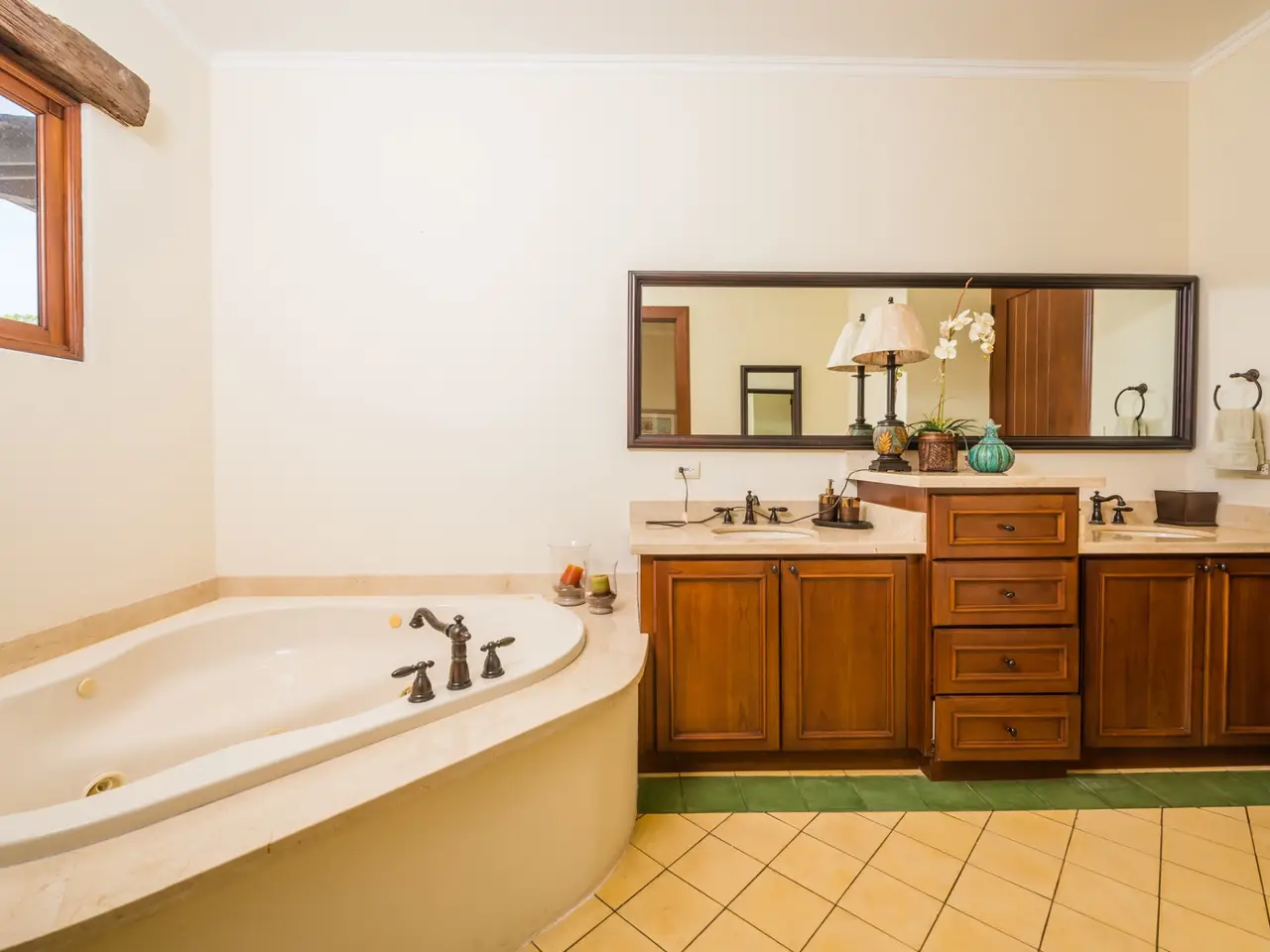 Welcome to Casa Miraflores, an exquisite colonial-style estate home located in the prestigious Reserva de Golf Community within Hacienda Pinilla. This luxurious property offers a captivating blend of elegance and comfort, with four bedrooms, five and a half bathrooms, a maids quarter, and an impressive total area of 6,500 square feet. Situated on a sprawling lot spanning 2,458.86m2, Casa Miraflores presents a truly remarkable living experience. As you approach the residence, you are greeted by a grand entrance adorned with colossal columns, creating a covered space that invites you into the house. The front of the property features a roundabout surrounded by mature landscaping, with a majestic silver Bismarck palm tree at its center, adding a touch of natural beauty. Upon entering the home, you will discover a two-story layout designed to provide ample space and comfort. The upper floor boasts two oversized master suites, each equipped with a king-sized bed, jacuzzi tub, walk-in closet, and a private balcony. These master suites offer a serene retreat, allowing you to unwind and enjoy the picturesque views. The main floor of Casa Miraflores features stone floors adorned with unique Spanish tile accents, adding a touch of charm to the living space. Designed with entertaining in mind, the home offers a main floor living room, an upstairs living room, and an outdoor living room, all capable of accommodating large groups comfortably. The main living room boasts two-story-high ceilings, creating an atmosphere of grandeur. For more intimate gatherings, curved wooden sliding doors can be closed, separating the kitchen from the living and dining room. The main floor also has 2 large bedrooms with ensuite bathrooms. One has a jacuzzi and the other has an outdoor shower with a volcanic rock wall. The residence offers four distinct dining areas, catering to different occasions. The private dining room showcases a striking brick feature wall and elegant teak floors, complemented by teak beams on the ceiling. Additionally, there are dining tables in the open living room, in the kitchen, and in the covered outdoor terrace. Throughout the home, you will find solid wood cabinetry, adding a touch of warmth and sophistication to both the kitchen and bathrooms. The kitchen itself is a chef's delight, boasting unique green-colored granite countertops and stainless steel Viking appliances including a six-burner gas stove. With its spacious layout and modern amenities, this culinary haven offers a delightful experience for cooking enthusiasts. Adjacent to the kitchen is a massive covered terrace, perfect for al fresco dining and relaxation. Featuring caña brava ceilings, this outdoor space creates a seamless connection between indoor and outdoor living. Out here you will find a billiards table, an outdoor living room and dining section. A standout feature of Casa Miraflores is its stunning curved teak wood staircase, enhanced by a wrought iron railing and an impressive wrought iron chandelier. Ascending to the second floor, you will find teak floors throughout and Spanish tile floors in the bathrooms. The bathrooms themselves are adorned with elegant marble countertops and two-person jacuzzi tubs, providing a luxurious bathing experience. The second floor also features an open living room with two leather couches, a balcony overlooking the outdoors, and a connection to the living room below. Perfect for relaxation and entertainment, this space includes a television for your viewing pleasure. To ensure comfort throughout the year, the home is equipped with central air conditioning. The backyard, surrounded by palms, has a large pool and outdoor family-sized jacuzzi to cool off in. Also included is a deep two-car garage, offering ample space for storage, including golf carts and beach toys, in addition to accommodating two cars. Casa Miraflores in the Reserva de Golf Community of Hacienda Pinilla is a remarkable colonial-style estate home that seamlessly combines luxurious living with timeless charm. With its spacious interiors, elegant features, and stunning outdoor areas, this property invites you to experience the epitome of refined living in a tropical paradise. We would love to show you this beauty! Please reach out for a live or virtual showing.