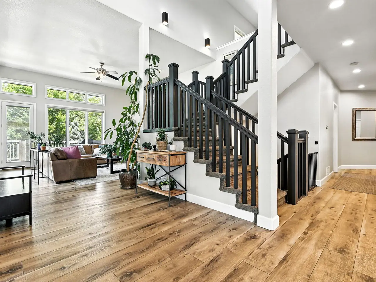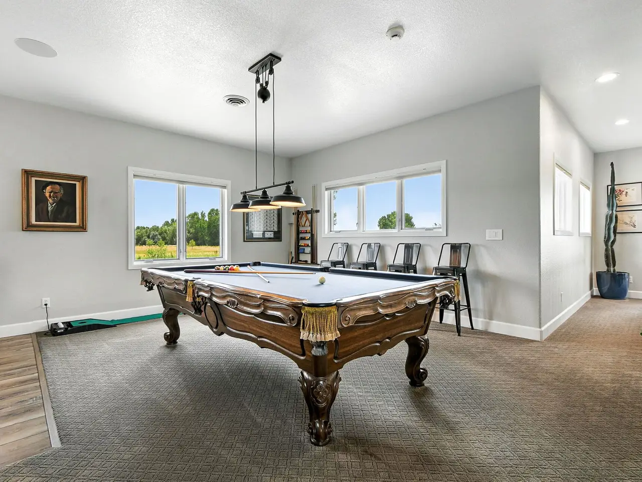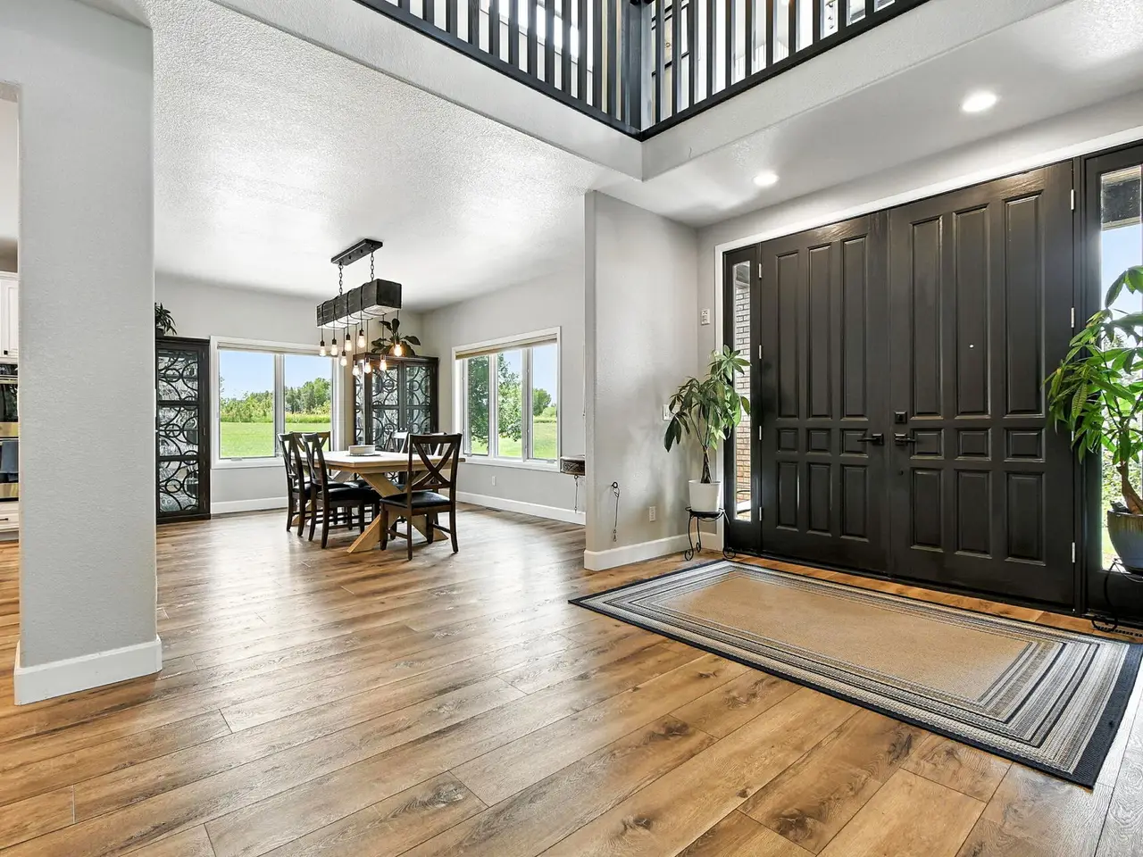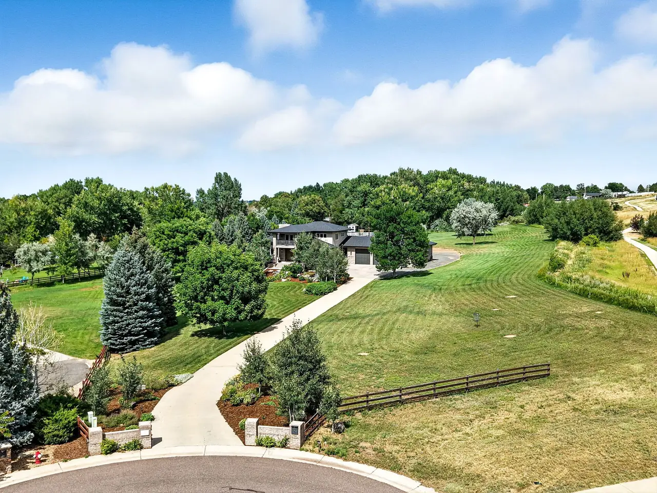 Tucked at the end of a cul-de-sac in Baxter Farm, one of Erie's most prestigious neighborhoods, this stunning estate sits on 2.3 acres of professionally landscaped grounds w/sweeping unobstructed mountain views. Main level features dramatic entry, soaring ceilings, sun-filled living room w/floor-to-ceiling windows, Gourmet kitchen w/Viking range, double ovens, breakfast bar, & pantry, Spacious main-floor primary suite, 2 ensuite bedrooms, laundry, & patio w/hot tub. Upstairs, enjoy a family room w/wet bar, study, bath, & view deck. Walkout basement adds 3,000+ sq ft of beautifully finished space, including media room w/ projection screen, 2 bedrooms, 2 baths, exercise room, 2 flex rooms, safe room, & multiple walkouts to lower patio. Outdoor living is elevated w/multiple decks & patios for relaxation & entertaining. Oversized 6 car garage, w/ extra-tall drive through doors, offers exceptional versatility. This home is the perfect combination of luxury, privacy & Colorado lifestyle.