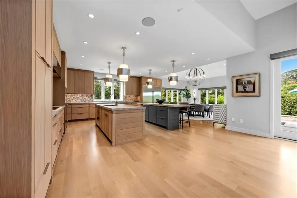 Located at 2 Black Rock Dr, Hingham, this luxurious condominium offers a completely renovated and unparalleled living experience within its meticulously designed spaces. Although the property, built in 2003, the upgrades presents itself in new condition, promising a residence where sophisticated design meets practical living. The living room serves as a central gathering space, distinguished by a fireplace that invites cozy evenings and built-in shelves that offer both aesthetic appeal and functional storage. The kitchen is a culinary dream, featuring a glass backsplash, a kitchen bar and island for casual dining and entertaining, alongside a double oven, a wall chimney range hood, two dishwashers, a built-in refrigerator, and a stovetop, all complemented by stunning stone countertops, and a wine cooler. Not to mention the pantry! The residence includes four beds and four full bathrooms, each designed with a commitment to luxury, exemplified by walk-in showers that provide a spa-like experience.
