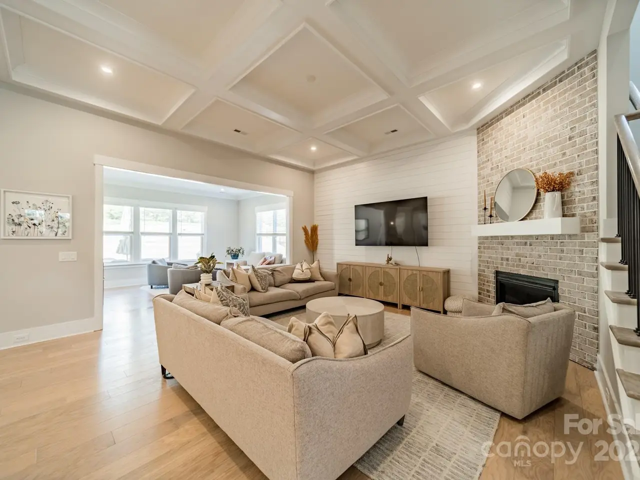 Looking for a magnificent 5 BR, 3.5 Bath modern home on over an acre surrounded by woods? Well look no further! This stunning & virtually brand new 2 story brick home w./ 3 car garage is situated on one of the largest lots in Cavesson (1.3 acres!) & is exactly what youre looking for! The beautifully appointed chefs dream kitchen features high-end appliances, quartz counters, designer tile backsplash, gas range, custom cabinets, butlers/walk-in pantry, oversized island & flows seamlessly into an open floor plan ideal for entertaining. Main level primary suite offers a luxurious shower & garden tub w./ spacious walk-in closet & exquisite finishes. Covered back terrace & beautifully prefinished oak HWs in living areas. Coffered ceiling in LR w/ fireplace sets a cozy tone. Spacious upstairs: 4 BRs w/ 2 full baths, game/bonus, loft & media room! Located in the sought-after Weddington HS district. Close to shopping/dining & easy access to Providence Rd, 485 & Hwy 74. A rare gem!
