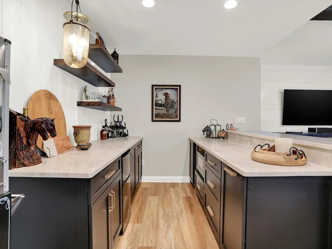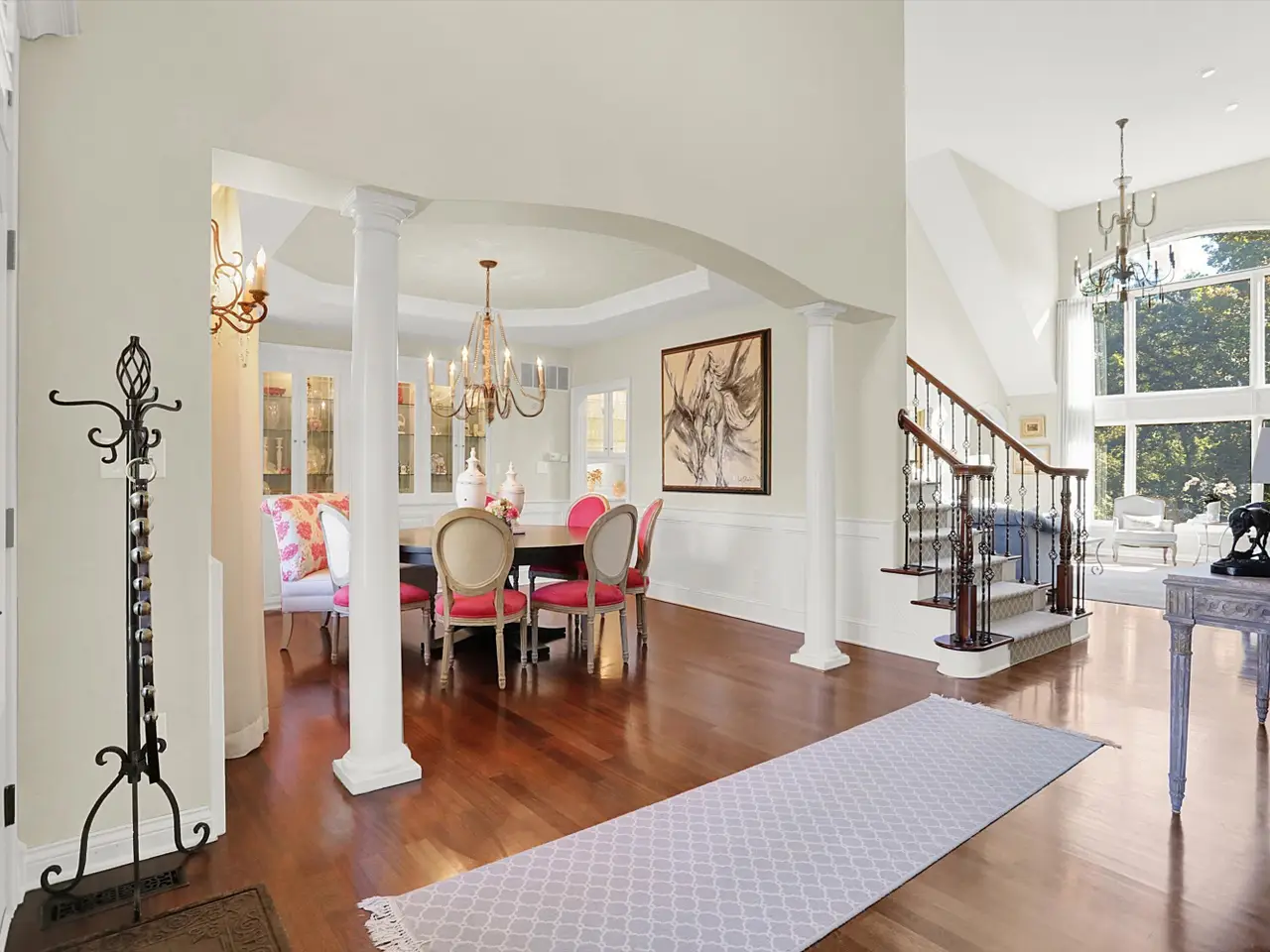 Home is back on the market due to no fault of seller. Discover the beauty of life well-lived in this stately custom brick home, perfectly positioned to capture tranquil views of Sugar Creek. This 5-bedroom, 5-bath masterpiece offers a harmonious blend of elegance, comfort, and versatility. From the moment you enter, the soaring ceilings and exquisite custom detailing set the stage for a home that is as welcoming as it is sophisticated. The heart of the home is the dream culinary kitchen-a space that inspires with its premium appliances, sleek countertops, and generous layout. Imagine preparing meals for family or entertaining guests in a kitchen that is both functional and stunning. Flowing seamlessly from the kitchen is the inviting 3-seasons room, where you can sip your morning coffee while soaking in the peaceful views of the creek or enjoy evenings surrounded by the beauty of nature. This space becomes a sanctuary year-round, perfect for quiet moments or lively conversations with friends. The walkout basement is a showstopper, designed to elevate your lifestyle. A warm fireplace anchors the space, while a stylish bar area invites celebrations and gatherings. Additional finished areas provide endless possibilities-a workshop for creative projects, a home gym to keep you energized, or a craft room to explore your passions. The home's five bedrooms is a private haven, offering ample space and thoughtful design. The primary suite, with its luxurious ensuite bath, feels like your personal retreat, perfect for relaxation at the end of the day. Every corner of the home showcases designer touches, from the custom ceilings to the hand-selected finishes, ensuring a cohesive blend of sophistication and comfort. Outside the magic continues, the natural beauty of Sugar Creek offers an unparalleled backdrop for outdoor gatherings, quiet reflection, or simply enjoying the changing seasons. This home isn't just a place to live-it's a lifestyle.