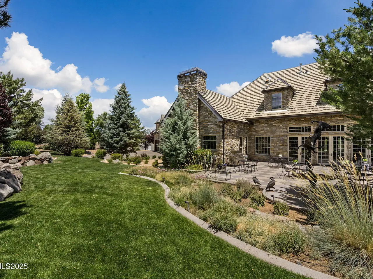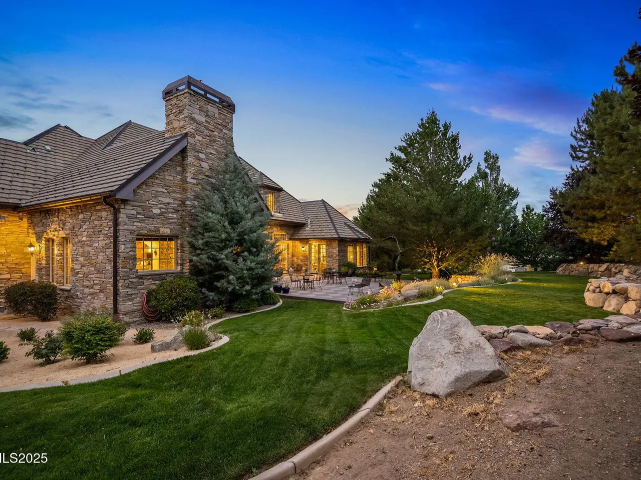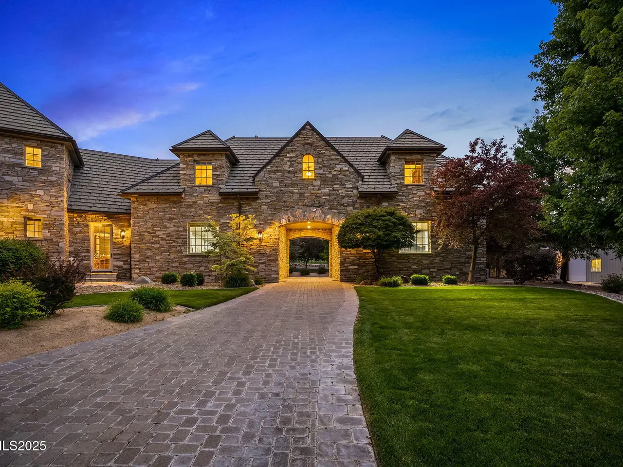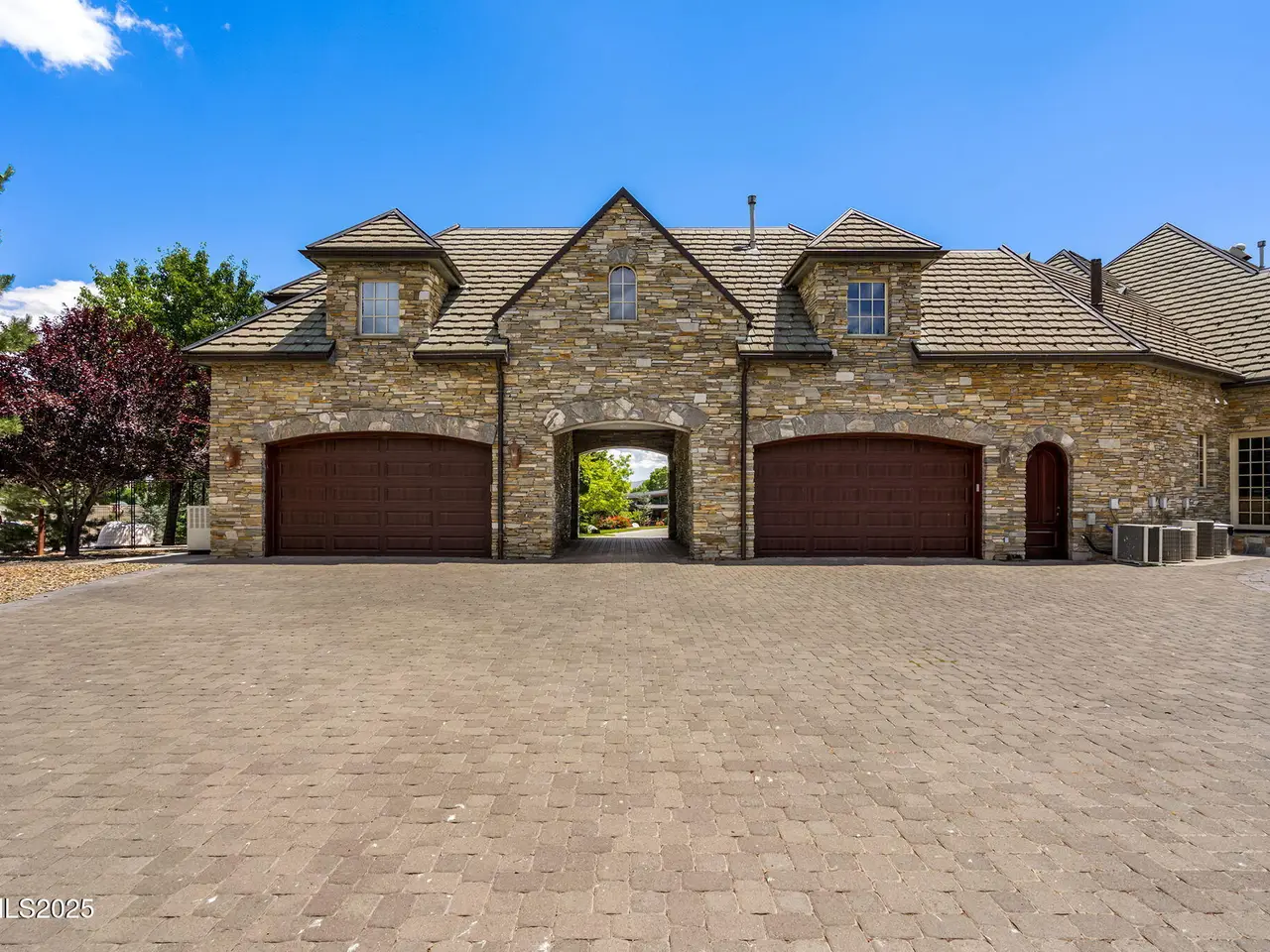 Rare and stunning property on 2.47 acres in coveted SW Suburban Reno Lakeside/Holcomb area. Down a long driveway and through the private gated entry, you will immediately be impressed by the mature landscaping and stunning exterior of this exquisite country manor with full hand-laid stone exterior. Wonderful curb appeal with beautiful entry, circular drive with water feature, and carriage breezeway between two 2-car garages. Additionally, there is a detached fully insulated and heated garage/car barn with soaring 18' ceilings, 3 doors including RV door. Steamboat ditch irrigation rights, domestic well plus AG water rights. The comfortable yet elegant floorplan features 4 ensuite bedrooms and 3 separate half baths. Large office with beautiful built-ins and the primary suite located on the main level feature a fireplace, luxurious bath, and huge walk in closet. The magnificent gourmet kitchen is open to the family room featuring 20 foot ceilings and extraordinary floor to ceiling stone fireplace and hearth. The grand formal dining room and separate living room with wall of windows overlook the grounds. Upstairs has 3 large bedrooms with private baths, a 1/2 bath, and beautiful landing open to the family room below and leading to expansive game room with walk-in wet bar, plenty of room for seating, dining, or extra office space! Other features include 8' solid Mahogany doors, water processing system, Control 4 lighting and Mesh Network Wi-Fi system. New insulated steel garage doors on attached garages, Generac whole house generator, extensive lighting and much more! Please see features list for more. Very close to all amenities .and airport yet very secluded country lifestyle Must see this extremely special home, location, and property!