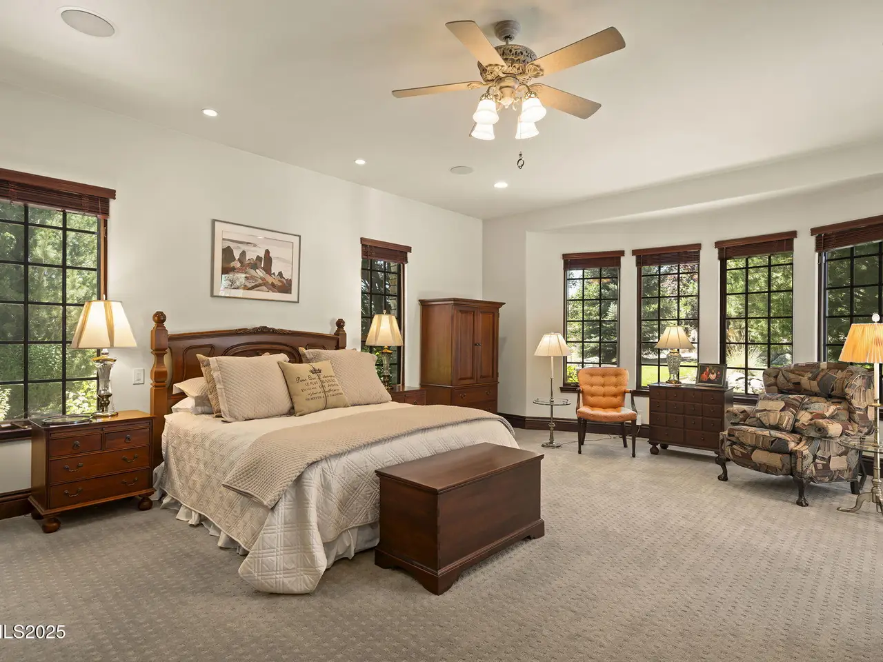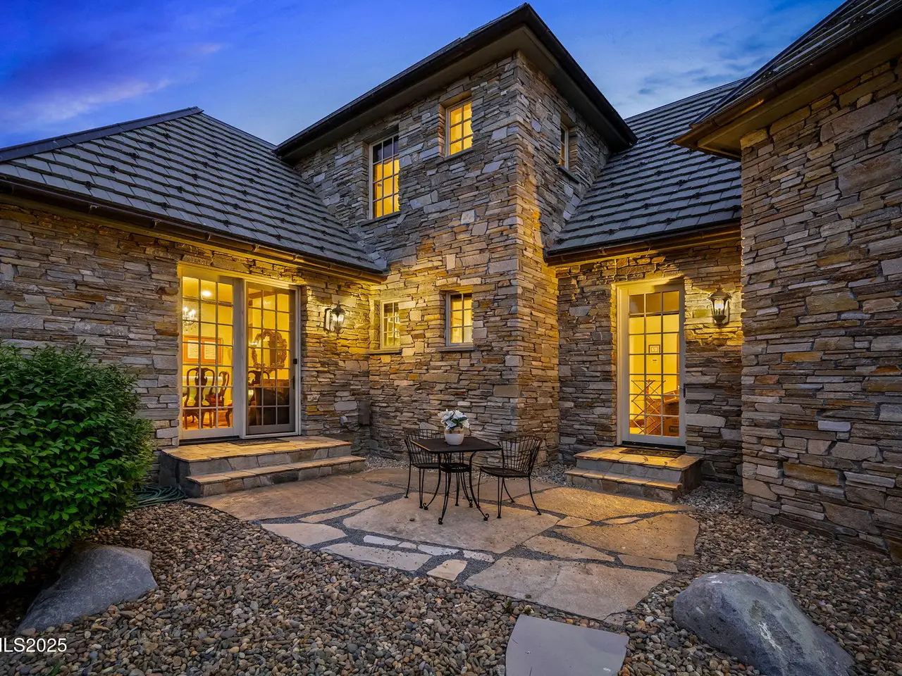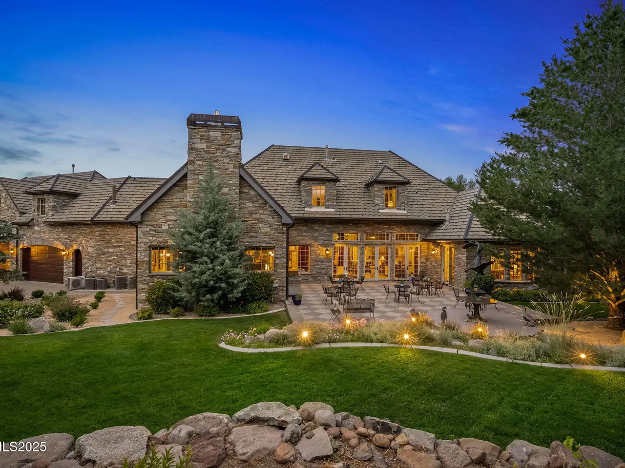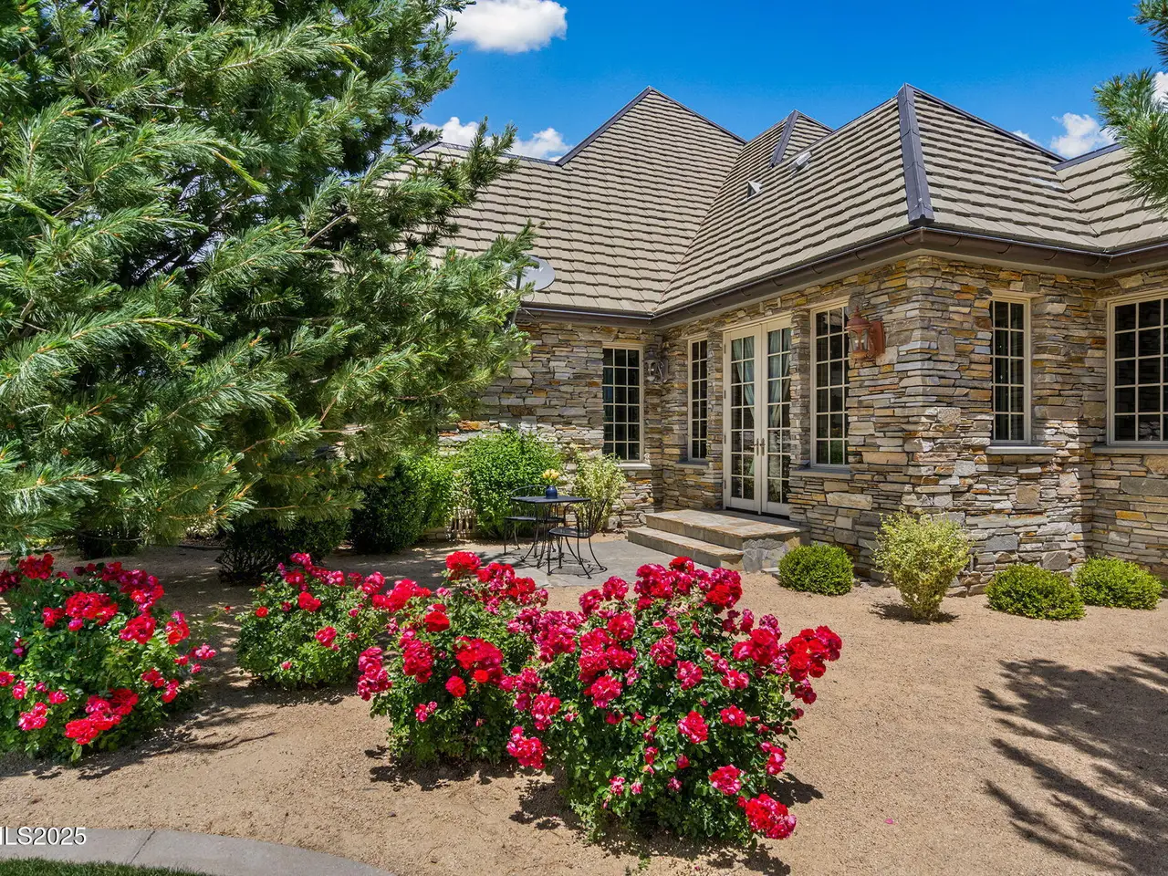 Rare and stunning property on 2.47 acres in coveted SW Suburban Reno Lakeside/Holcomb area. Down a long driveway and through the private gated entry, you will immediately be impressed by the mature landscaping and stunning exterior of this exquisite country manor with full hand-laid stone exterior. Wonderful curb appeal with beautiful entry, circular drive with water feature, and carriage breezeway between two 2-car garages. Additionally, there is a detached fully insulated and heated garage/car barn with soaring 18' ceilings, 3 doors including RV door. Steamboat ditch irrigation rights, domestic well plus AG water rights. The comfortable yet elegant floorplan features 4 ensuite bedrooms and 3 separate half baths. Large office with beautiful built-ins and the primary suite located on the main level feature a fireplace, luxurious bath, and huge walk in closet. The magnificent gourmet kitchen is open to the family room featuring 20 foot ceilings and extraordinary floor to ceiling stone fireplace and hearth. The grand formal dining room and separate living room with wall of windows overlook the grounds. Upstairs has 3 large bedrooms with private baths, a 1/2 bath, and beautiful landing open to the family room below and leading to expansive game room with walk-in wet bar, plenty of room for seating, dining, or extra office space! Other features include 8' solid Mahogany doors, water processing system, Control 4 lighting and Mesh Network Wi-Fi system. New insulated steel garage doors on attached garages, Generac whole house generator, extensive lighting and much more! Please see features list for more. Very close to all amenities .and airport yet very secluded country lifestyle Must see this extremely special home, location, and property!