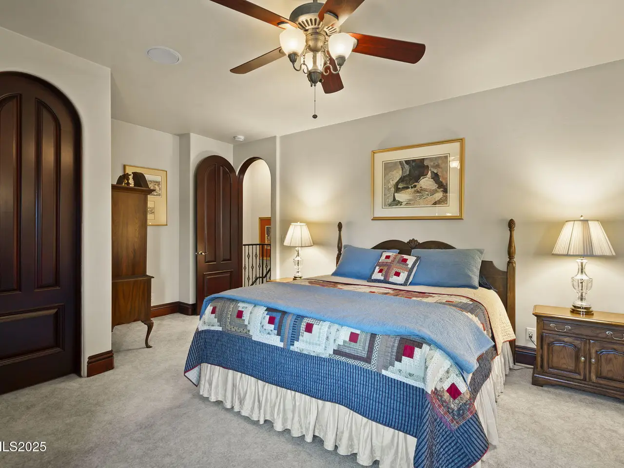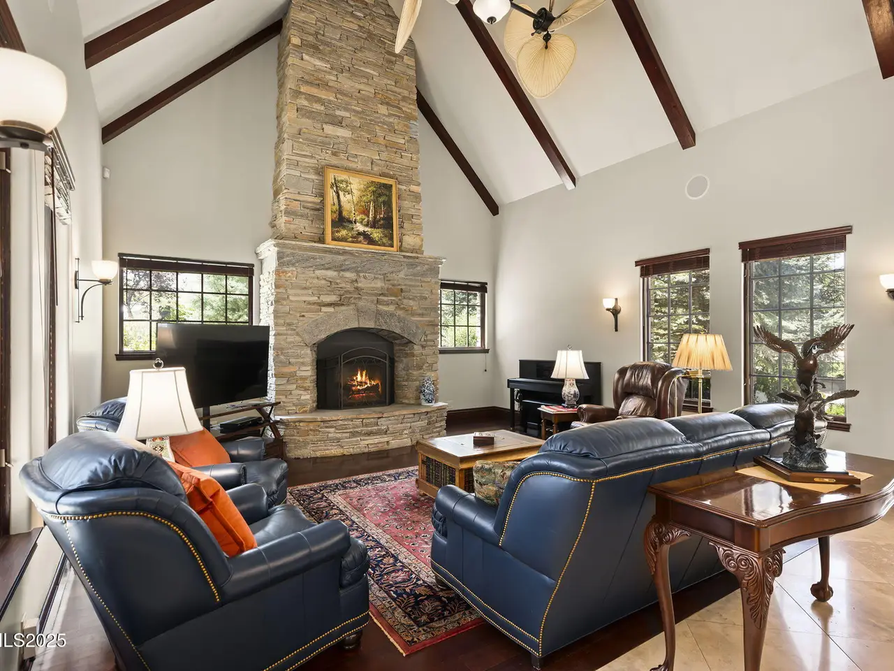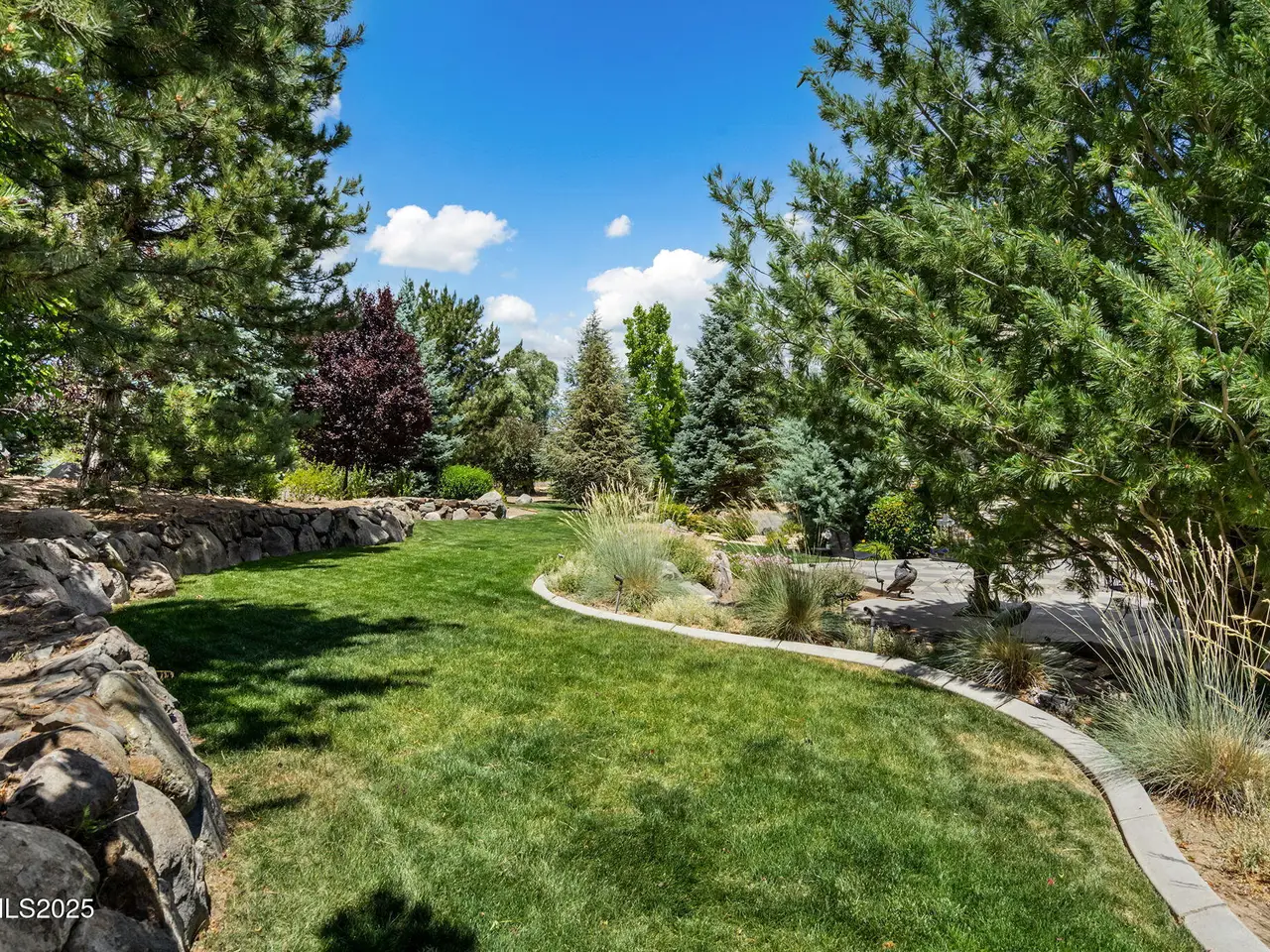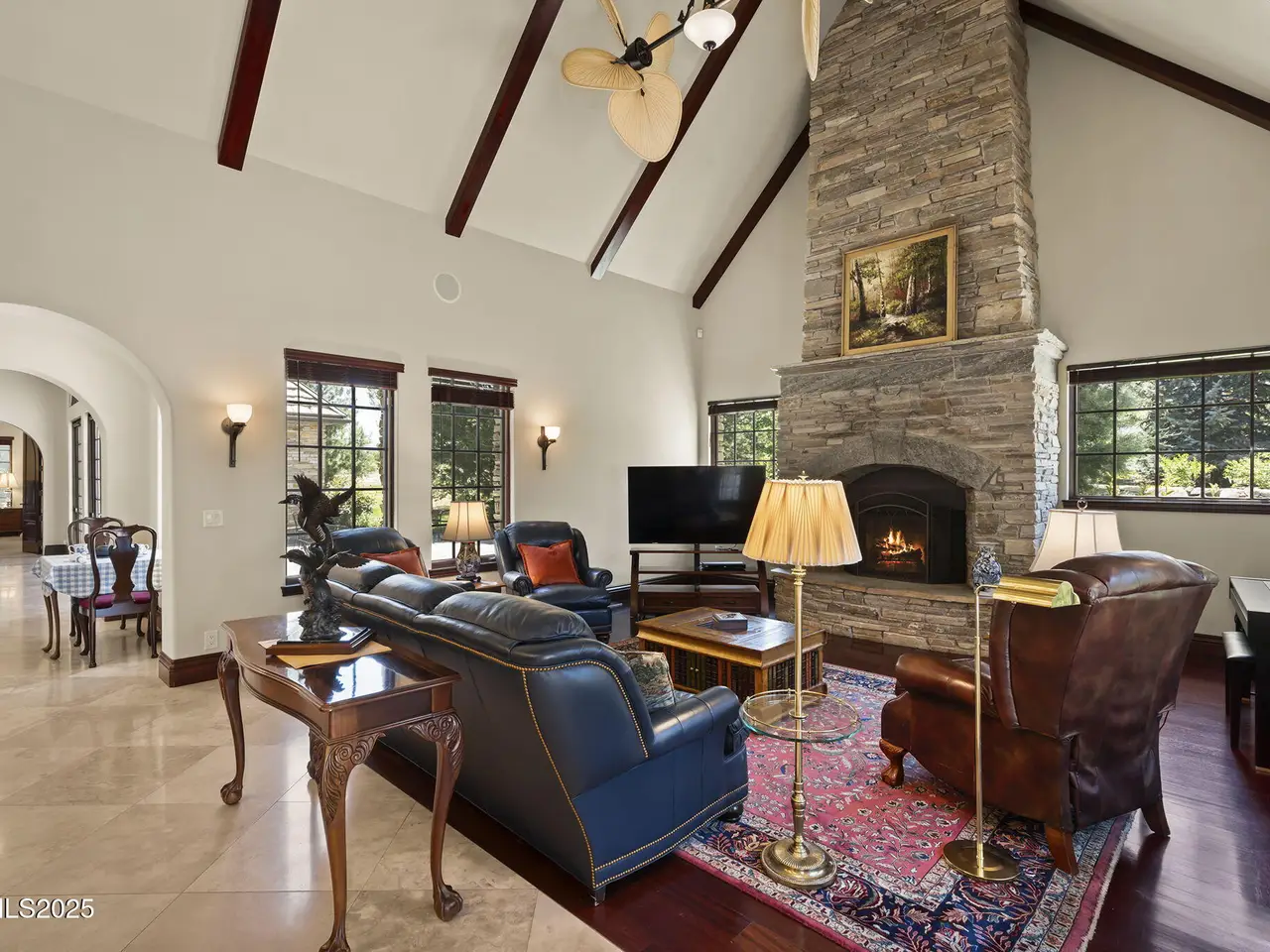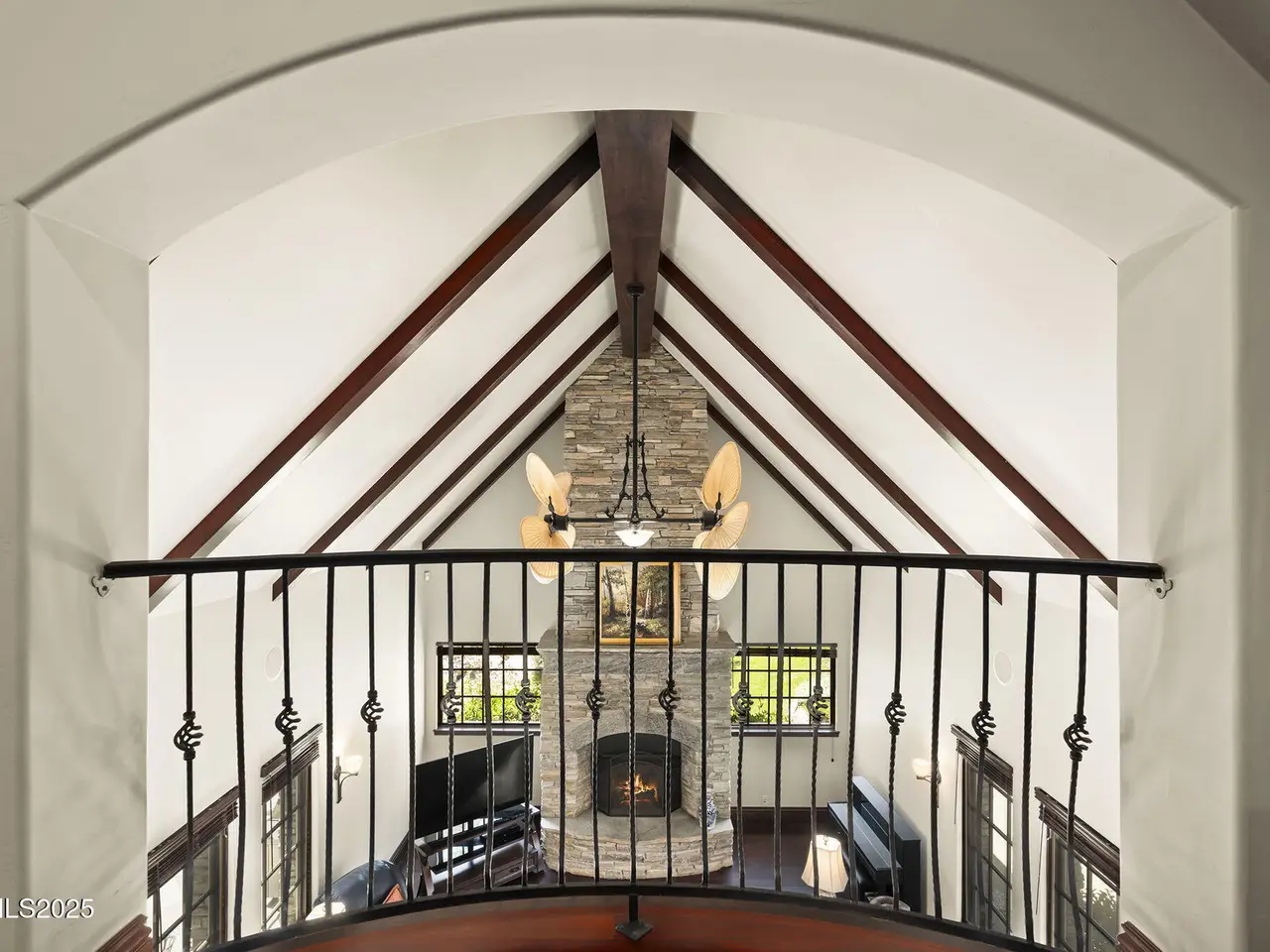 Rare and stunning property on 2.47 acres in coveted SW Suburban Reno Lakeside/Holcomb area. Down a long driveway and through the private gated entry, you will immediately be impressed by the mature landscaping and stunning exterior of this exquisite country manor with full hand-laid stone exterior. Wonderful curb appeal with beautiful entry, circular drive with water feature, and carriage breezeway between two 2-car garages. Additionally, there is a detached fully insulated and heated garage/car barn with soaring 18' ceilings, 3 doors including RV door. Steamboat ditch irrigation rights, domestic well plus AG water rights. The comfortable yet elegant floorplan features 4 ensuite bedrooms and 3 separate half baths. Large office with beautiful built-ins and the primary suite located on the main level feature a fireplace, luxurious bath, and huge walk in closet. The magnificent gourmet kitchen is open to the family room featuring 20 foot ceilings and extraordinary floor to ceiling stone fireplace and hearth. The grand formal dining room and separate living room with wall of windows overlook the grounds. Upstairs has 3 large bedrooms with private baths, a 1/2 bath, and beautiful landing open to the family room below and leading to expansive game room with walk-in wet bar, plenty of room for seating, dining, or extra office space! Other features include 8' solid Mahogany doors, water processing system, Control 4 lighting and Mesh Network Wi-Fi system. New insulated steel garage doors on attached garages, Generac whole house generator, extensive lighting and much more! Please see features list for more. Very close to all amenities .and airport yet very secluded country lifestyle Must see this extremely special home, location, and property!