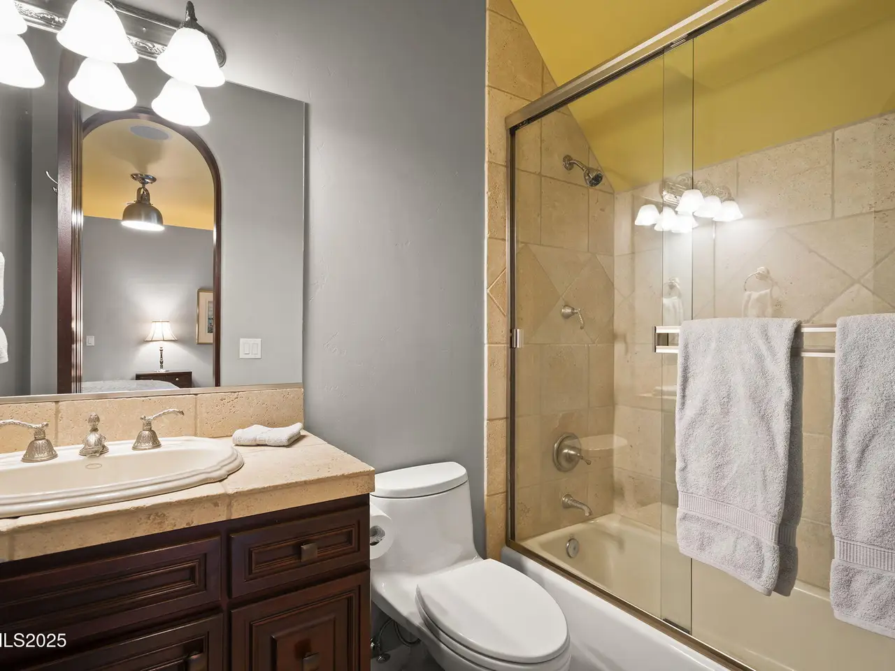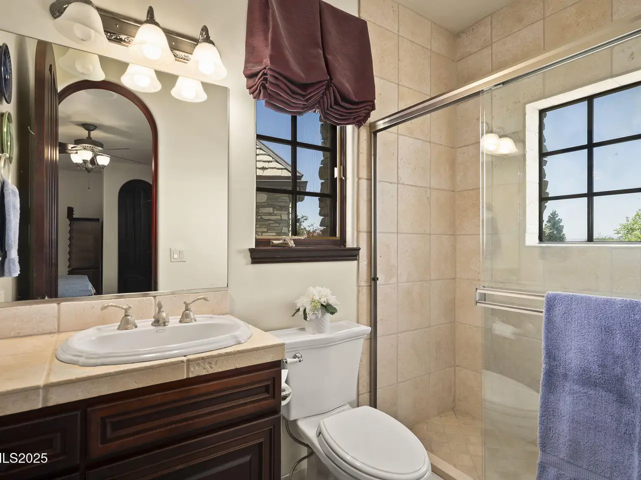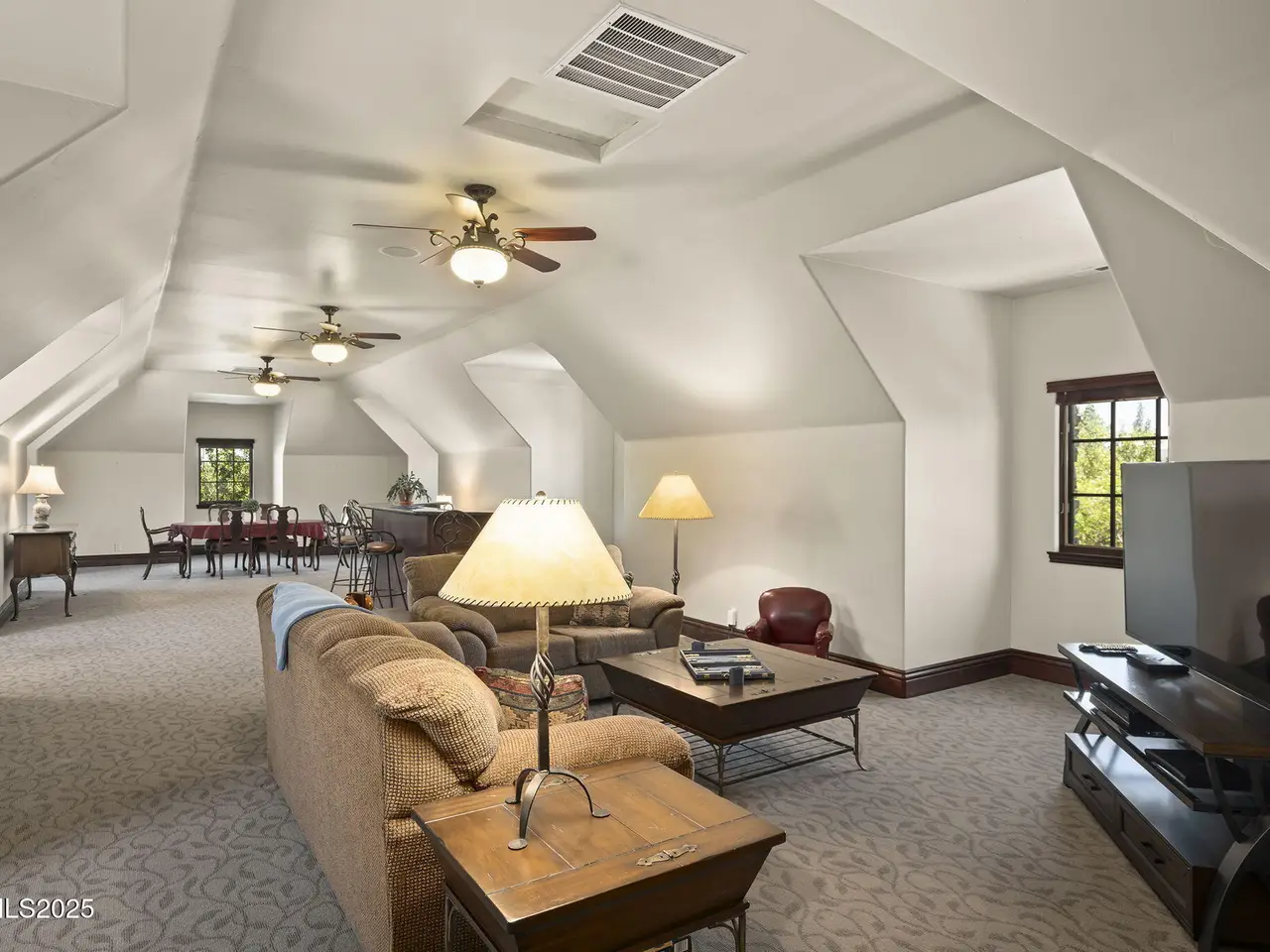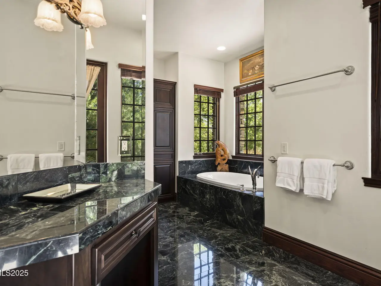 Rare and stunning property on 2.47 acres in coveted SW Suburban Reno Lakeside/Holcomb area. Down a long driveway and through the private gated entry, you will immediately be impressed by the mature landscaping and stunning exterior of this exquisite country manor with full hand-laid stone exterior. Wonderful curb appeal with beautiful entry, circular drive with water feature, and carriage breezeway between two 2-car garages. Additionally, there is a detached fully insulated and heated garage/car barn with soaring 18' ceilings, 3 doors including RV door. Steamboat ditch irrigation rights, domestic well plus AG water rights. The comfortable yet elegant floorplan features 4 ensuite bedrooms and 3 separate half baths. Large office with beautiful built-ins and the primary suite located on the main level feature a fireplace, luxurious bath, and huge walk in closet. The magnificent gourmet kitchen is open to the family room featuring 20 foot ceilings and extraordinary floor to ceiling stone fireplace and hearth. The grand formal dining room and separate living room with wall of windows overlook the grounds. Upstairs has 3 large bedrooms with private baths, a 1/2 bath, and beautiful landing open to the family room below and leading to expansive game room with walk-in wet bar, plenty of room for seating, dining, or extra office space! Other features include 8' solid Mahogany doors, water processing system, Control 4 lighting and Mesh Network Wi-Fi system. New insulated steel garage doors on attached garages, Generac whole house generator, extensive lighting and much more! Please see features list for more. Very close to all amenities .and airport yet very secluded country lifestyle Must see this extremely special home, location, and property!