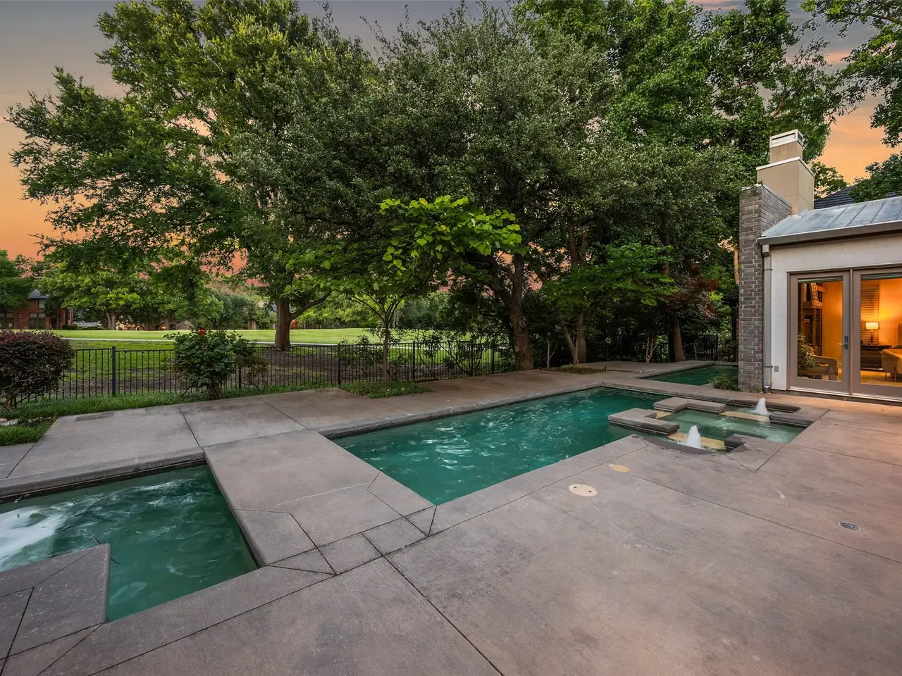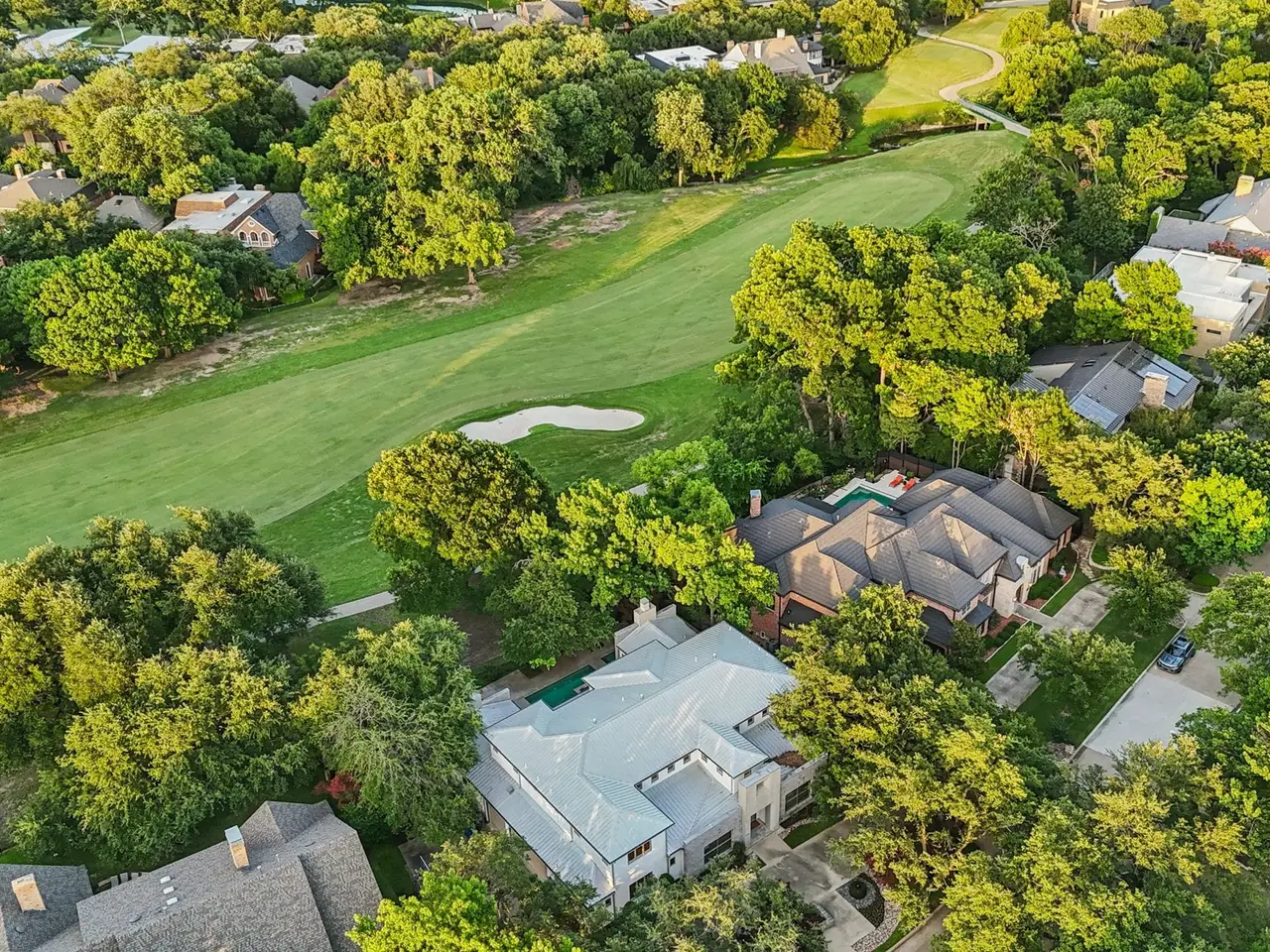 Perfectly positioned on the 16th hole of Bent Tree Country Club, this exceptional custom home offers over 7,100 square feet of luxury living on a 0.379-acre golf course lot. A circle drive, mature trees, lush landscaping, and two water features create a striking first impression, while the interior showcases thoughtful design, refined finishes, and modern functionality. The expansive layout includes five living areas, four bedrooms with en suite baths and custom walk-in closets, and three additional half baths. The gourmet kitchen is a chefs dream with Sub-Zero refrigerator freezers, Thermador gas range with grill, griddle, and double ovens, double Thermador dishwashers, a Miele built-in coffee system, oversized island, custom cabinets, walk-in pantry, and built-in desk. Entertaining is effortless with three wet bars, a 700-bottle climate-controlled wine room, media room with built-in speakers, and multiple gathering spaces. The luxurious primary suite features a gas fireplace, spa-inspired bathroom with dual vanities, frameless shower, SOK soaking tub, smart bidet, and a boutique-style closet with built-in Viking safe and ironing board. A private laundry room and coffee bar with beverage fridge offer added convenience. Hunter Douglas automatic window treatments are found throughout the home. Enjoy panoramic golf course views from the backyard oasis with a sparkling pool, spa, covered patio, and a gourmet outdoor kitchen. Additional highlights include a metal roof with gutters and leaf guards, Lutron lighting, smart home systems including Nest and iAquaLink, Flo by Moen water shutoff, two tankless water heaters, updated HVAC units, fire suppression system, and a spacious three-car garage with built-ins.