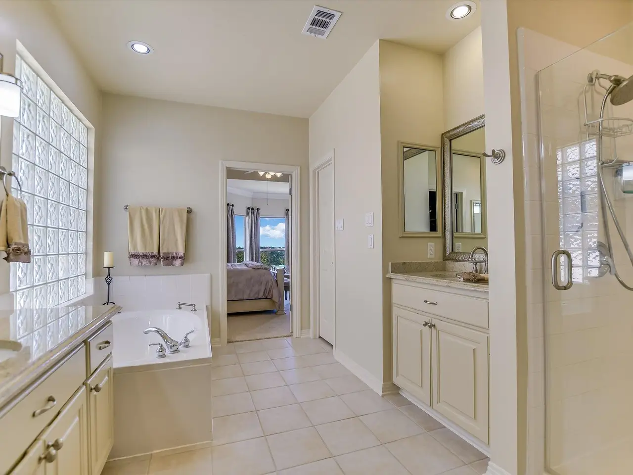 This home is nestled on a serene, low-traffic street of just 21 homes within the gated section of River Place, creating a friendly enclave. 4545 Golf Vista embodies elegance, comfort, and pride of ownership...Thoughtfully updated and meticulously maintained.Step inside and be greeted by bright, spacious interiors bathed in natural light with million-dollar views including that of the RP Golf Course from almost every room.The generous main-level primary suite with vaulted ceilings is a true retreat, complete with dual vanities, a large soaking tub, walk-in shower, and expansive closet.Upstairs, you'll find two additional oversized bedrooms, a flexible second living/game room, and a unique office nook with custom built-ins.Every bedroom is large enough to function as a home office, theater room or creative space, giving this home remarkable versatility.The kitchen is wonderfully large, with colorful granite, a center island, built in desk, room for a table and abundant storage -- perfect for cooking, gathering, and entertaining. The kitchen flows seamlessly into the dining room and the atrium with pergola-style roof (2023), this space was made for hosting family and friends.Outdoors, the landscaped front and back yards frame the home's curb appeal.The backyard, balcony, and atrium provide plenty of opportunities to bring the outside in.Access to Woodland Park, tennis courts, playgrounds, over six miles of scenic hiking trails, and River Place Country Club with golf and driving range.Zoned to award-winning Leander ISD schools: River Place Elementary, Four Points Middle, and Vandegrift High (IB).Minutes to Lake Austin, Lake Travis, City Park, The Domain, Four Points dining and shopping, downtown Austin, and the airport.