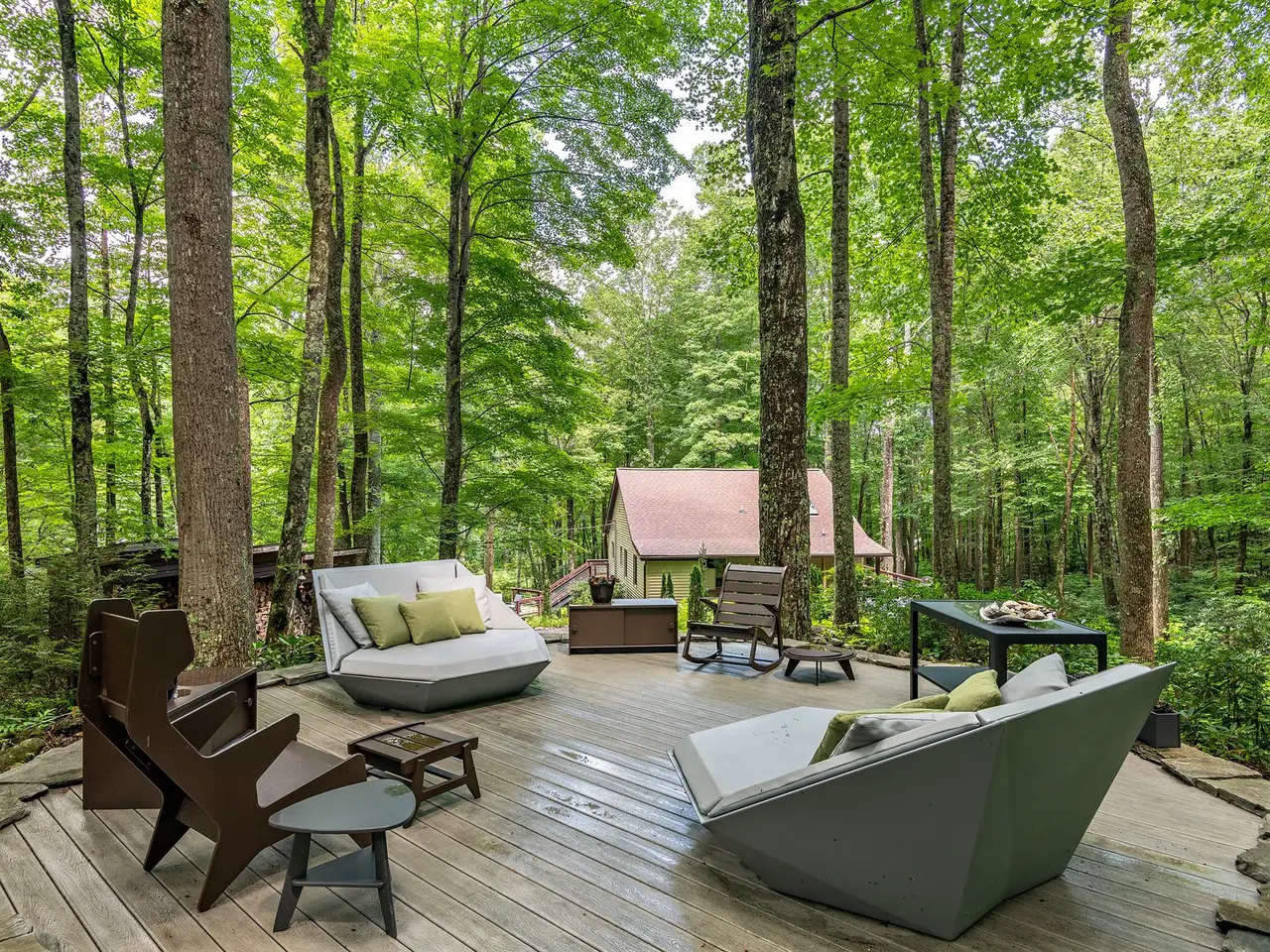 At the base of Celo Knob, one of the highest peaks on the Eastern Seaboard, discover a retreat where art, nature, and serenity meet. This 3.85-acre sanctuary rests at 3,200 feet, bordering 19,000 acres of untouched national forest. Flowing from the slopes above, Upper and Lower Browns Creek wind down along either side of the property, offering a moss-covered rhododendron sanctuary with private waterfalls that set a calming rhythm to daily life whilst the property remains high and dry from any possibility of creek water intrusion. The main home is an artistic masterpiece, filled with local creations, modern design, and refined furnishings. Expansive wraparound decks invite quiet mornings and joyful gatherings, all against a backdrop of endless forest. Meander private trails to secluded firepits, retreat to the guest cottage or bunkhouse, and feel the stillness of the South Toe Valley?renowned for its pristine waters and natural purity. Offered turnkey and fully furnished, this haven is more than a home; it's a place to breathe, to connect, and to simply be. Please call the Listing Agent for Showings.