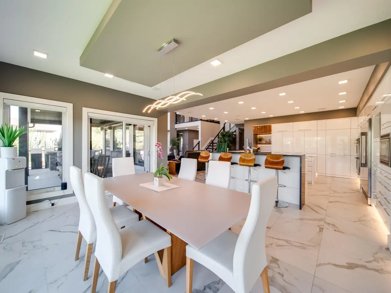 Award-winning show home by Vicky’s Homes (best build under $2m) ready for the buyer that has a budget for the best! TRIPLE CAR GARAGE with room for 6 via lifts, 4 beds total + main floor den/bed, 5 baths, fully finished & backing pond/greenspace with a large SW yard! This home is loaded and a must see, located in the community of Keswick which is nestled between parks, ponds, trails & the river. The expansive main floor brings in plenty of natural light with the 2 storey vault but adds warmth with the heated floor tiles. The massive kitchen is an entertainers dream featuring built in appliances, lots of cabinetry & a special U shaped island where everyone will gather. Steps away is a large deck with built-in barbecue and custom built automated pergola. Upstairs the 3 beds all have their own bath with the primary having a balcony, large closet and ensuite with steam shower & multiple vanities. The basement is finished with a wet bar, rec room & 4th bed - Automation/blinds/control4 throughout + und. sprinklers!