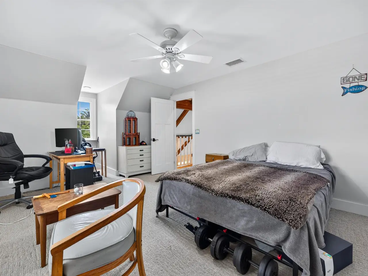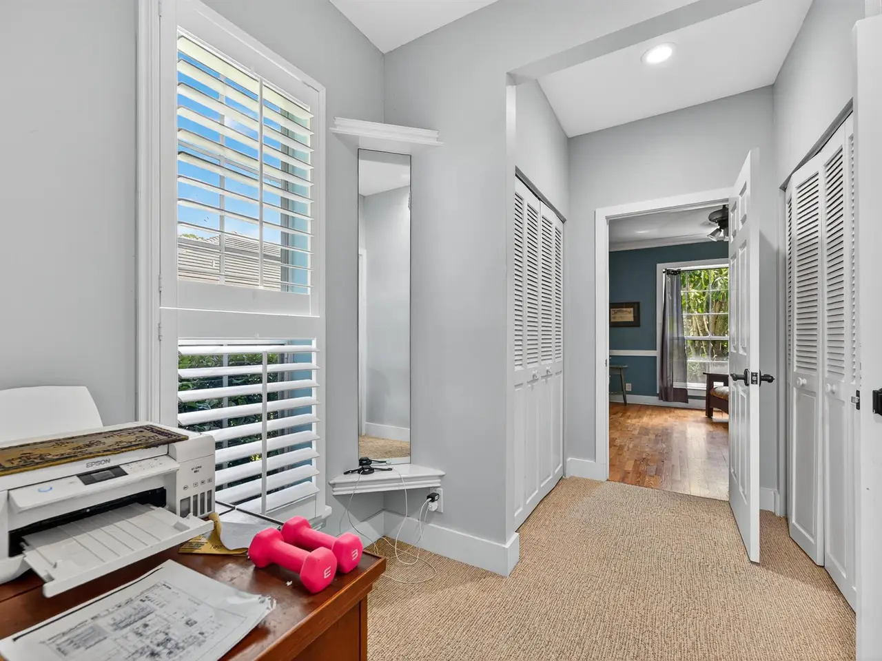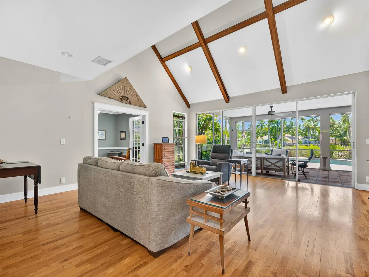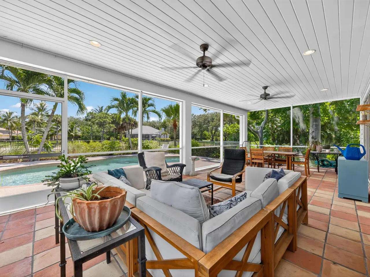 Nestled in the picturesque, tree-lined community of River Ridge, this inviting home blends comfort, style, and convenience. Set on a peaceful lake and just minutes from the beach, it offers a relaxed Florida lifestyle in a private, gated setting. Brand new 2025 Roof. The primary suite is located on the main floor and features plantation shutters, a large walk-in closet plus a built-in closet, and a spacious master bath. It also connects to a versatile flex room that works perfectly as an office, nursery, or guest space. The living room is filled with natural light with soaring ceilings, creating an open, welcoming atmosphere for everyday living or entertaining. Sliding doors lead to the covered patio and pool area--an ideal spot for sunsets and entertaining.