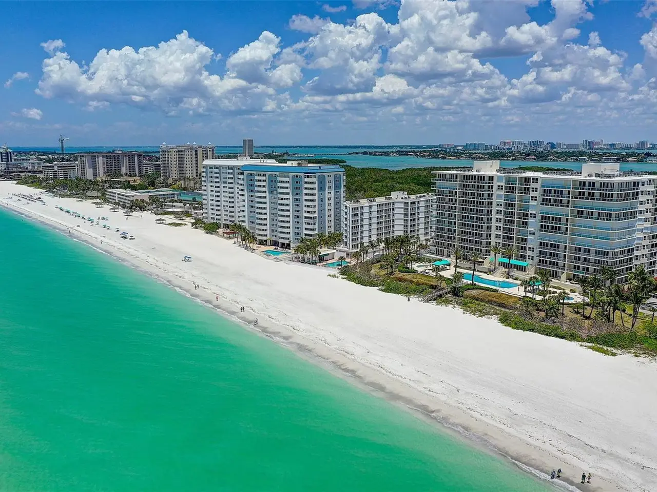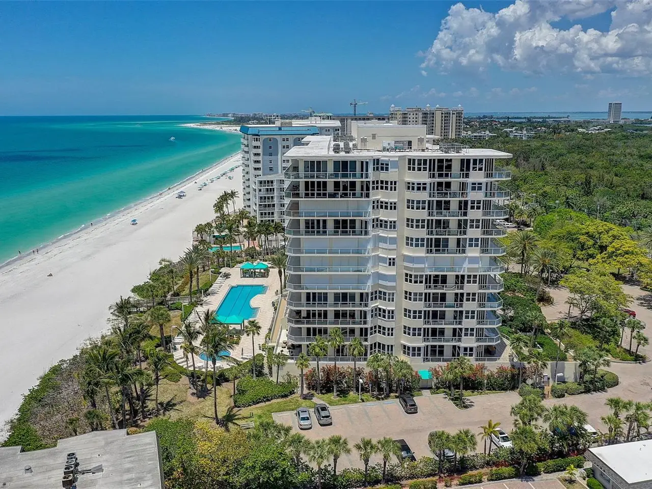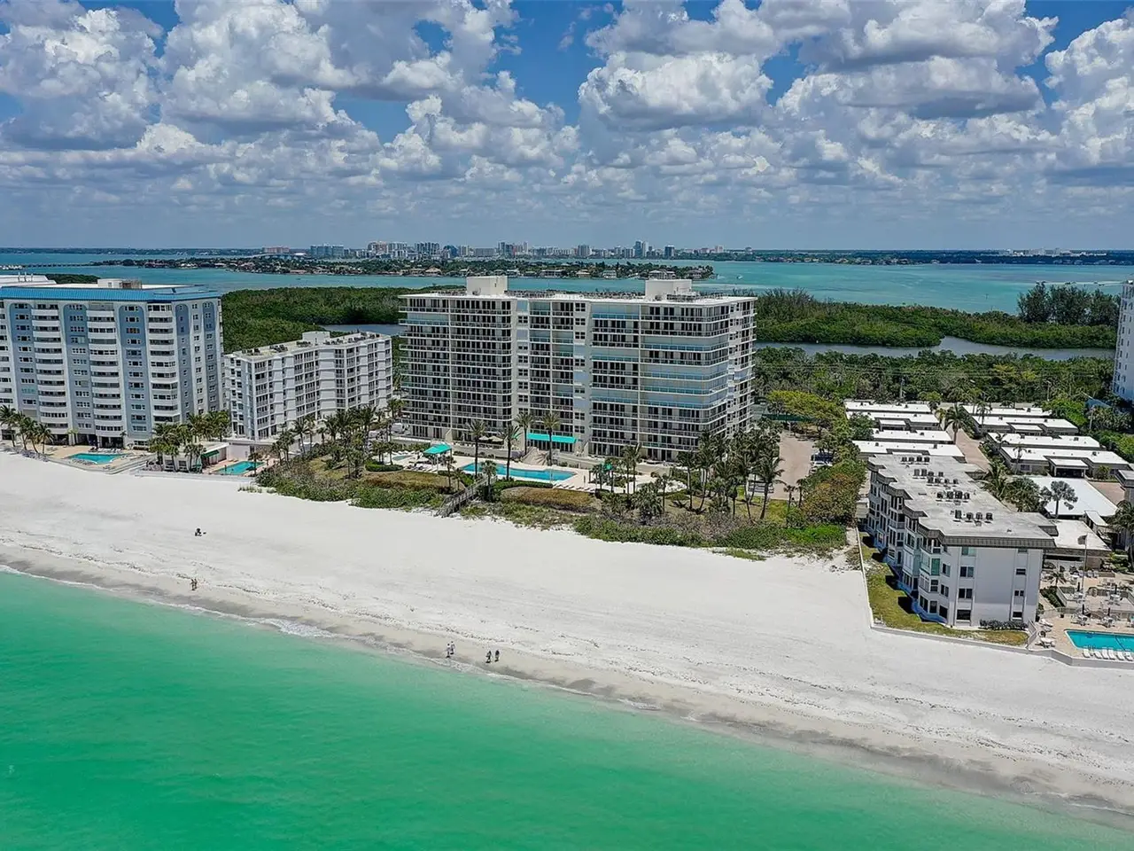 Wake up to the sound of waves and end your day with Gulf sunsets at L’Elegance, a premier gated beachfront community on Lido Key. This 3-bedroom, 3-bath condo offers just under 2,000 sq. ft. of bright, airy living space designed for seamless indoor-outdoor living. Step onto your private 50-foot terrace and feel the sea breeze, with every bedroom opening to its own terrace. The main living area showcases sweeping Sarasota Bay views with a glimpse of the Gulf, perfect for morning coffee or evening wine. L’Elegance offers resort-style amenities: a heated pool, spa, kiddie pool, tennis courts, and private beach access. Additional conveniences include underground parking, on-site management, and full maintenance services. Just minutes from St. Armands Circle with dining, boutique shopping, and live entertainment, this residence is the ultimate front-row seat to the Sarasota lifestyle, where the beach truly is your backyard.