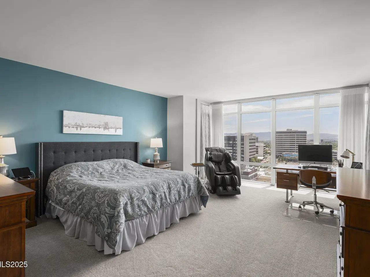 • Panoramic city vistas Luxurious primary suite finishes