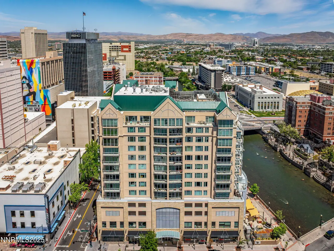 Live Above It All in Reno's "Global Headquarters" — The Palladio Penthouse. Experience the pinnacle of luxury urban living in this rare and breathtaking Penthouse at 50 N Sierra Street— in the heart of the city's vibrant downtown. One of only four exclusive penthouse residences in the prestigious Palladio, this 3-bedroom, 3.5-bath home is a masterclass in elegance, privacy, and elevated design. Step off your private express elevator—a luxury reserved for this unit—and into an expansive retreat where sophistication meets comfort. Hickory hardwood floors, polished granite surfaces, and exquisite stone finishes set the tone, while an upgraded fireplace and custom feature wall with built-in bar and uplighting create a perfect atmosphere for entertaining or relaxing in style. The sun-drenched great room is designed for gatherings large or small, anchored by a striking kitchen island bar that invites culinary creativity and connection. Extend the experience outdoors on the protected balcony spanning the full length of the unit, offering panoramic vistas of downtown Reno, the Sierra Nevada, and the flowing Truckee River. The primary suite is a serene escape with luxurious finishes, while the junior suite and additional bedroom offer flexibility for guests or home office needs. With three side-by-side parking spaces, ample storage, and a private storage unit, this home offers unmatched convenience. Located in the heart of Reno's walkable downtown, The Palladio places you steps from fine dining, art galleries, theaters, local parks, and cultural landmarks. Wake up to river views, walk to your favorite café, and end the day with a city skyline sunset—all from your new perch in Penthouse 15. This is more than a home. It's a statement. It's Reno redefined.