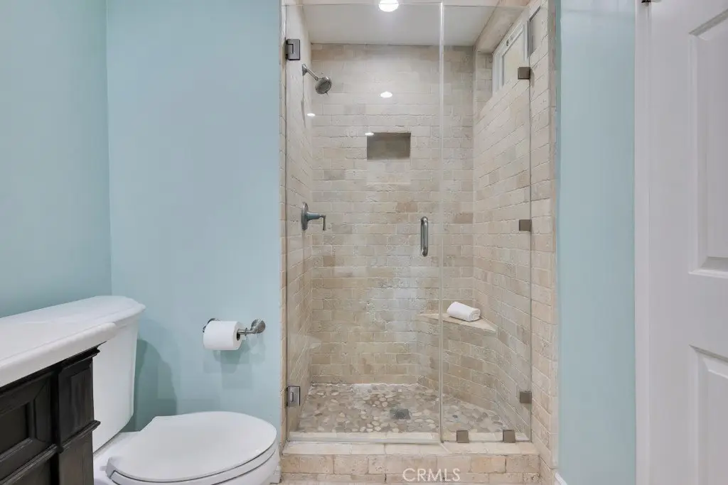 Tucked south of the Blvd on a tree-studded hillside, 4384 Saltillo Street is a two-story 4 bed 3 bath 1,994 sqft retreat designed for easy indoor-outdoor living. The main level features two bedrooms and two bathrooms, including a serene primary suite with leafy views from the front balcony. A sunlit living room with vaulted ceiling and a classic brick fireplace flows to a generous cook’s kitchen with stone counters, center island, white cabinetry, and stainless appliances that opens to an inviting family room. Downstairs offers two additional bedrooms and a full bath, ideal for guests, office, or gym. The multi-level backyard is an entertainer’s dream: the top deck captures tranquil views and fits a table and chairs for morning coffee, the middle patio sets the stage for outdoor dinners and hosts the built-in kitchen with grill, sink, and prep counters, and the lower deck is made for lounging beneath mature oaks features a relaxing jacuzzi. A rare Woodland Hills find in a highly desirable south-of-the-Boulevard location.