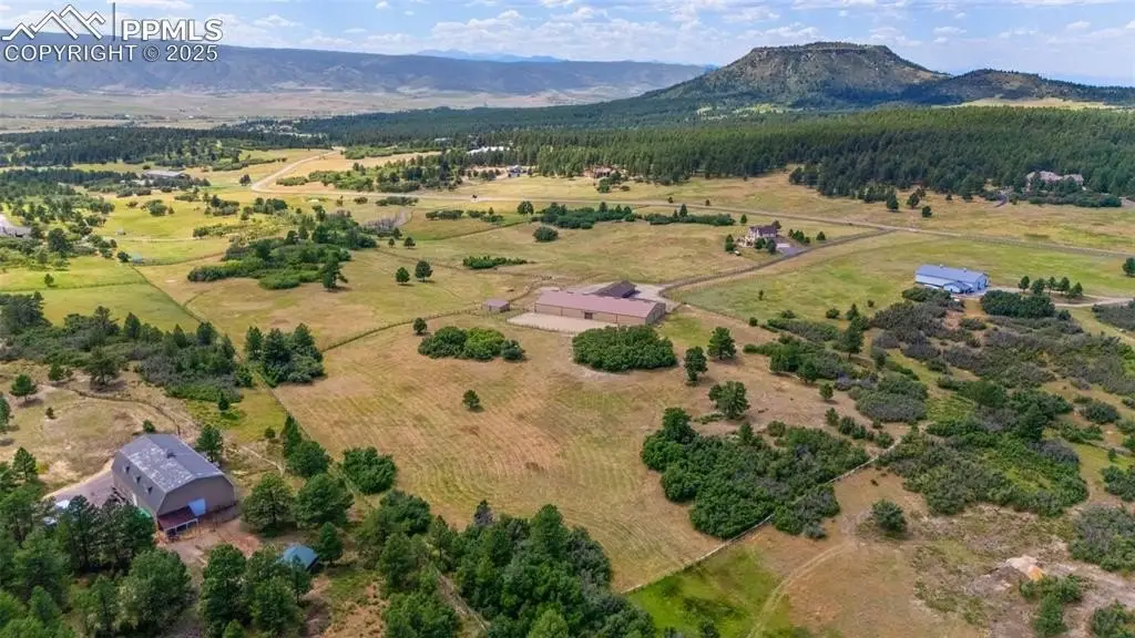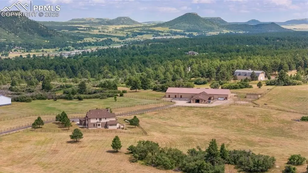 Unparalleled equestrian estate w/ epic mountain & butte views ~ PREMIER horse property nestled on 35+ fully usable, private acres of lush rolling pastures * Designed for serious equine use w/ 14,700 SF indoor riding arena, multiple outdoor arenas, 3,276 SF, 11-stall horse barn w/ wash stations, heated 418 SF tack room w/ half bath, 1,296 SF equipment shed & 500 SF fully furnished caretaker's apartment * This 5-bed, 5-bath custom home w/ a 3-car garage welcomes you in a private, gated community * A Swarovski crystal chandelier highlights the spacious formal dining room * The gourmet kitchen boasts granite countertops, pecan cabinetry, SS Viking appliances, barstools & an eat-in nook * Soaring, vaulted ceilings in the great room, featuring a grand stone fireplace & views through a wall of windows, including electric shades & surround sound speakers * Enjoy the large concrete paver deck w/ new electric awning (installed at the end of July), fire pit w/ chairs & hidden gutter system * Main floor study can be converted into a 6th bedroom w/ a ¾ bath across the hall * The main level laundry room includes washer/dryer w/ utility sink * Upstairs has 4 beds & 4 baths, including the primary suite w/ vaulted ceilings, two walk-in closets, & five-piece spa-like bath w/ granite countertops * The walk-out basement features a fully equipped wet bar (bar stools & appliances included), media room (screen, sound system, & chairs included), billiards room (pool table & accessories included), chess table & chairs, sunroom, wiring for hot tub (table & chairs included) & large storage room * An ensuite bedroom (TV included) are a plus in the basement * Extras included: automatic start, whole house generator, radon mitigation system, 3-zone heat/AC, water softener, new well pump installed in 2022, propane tanks for the house and barn, and a dog fence, freezers & shelving in garage included * THIS PROPERTY WON’T LAST LONG, IT’S A MUST SEE!!!