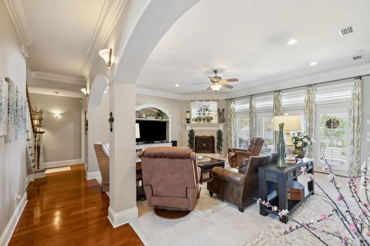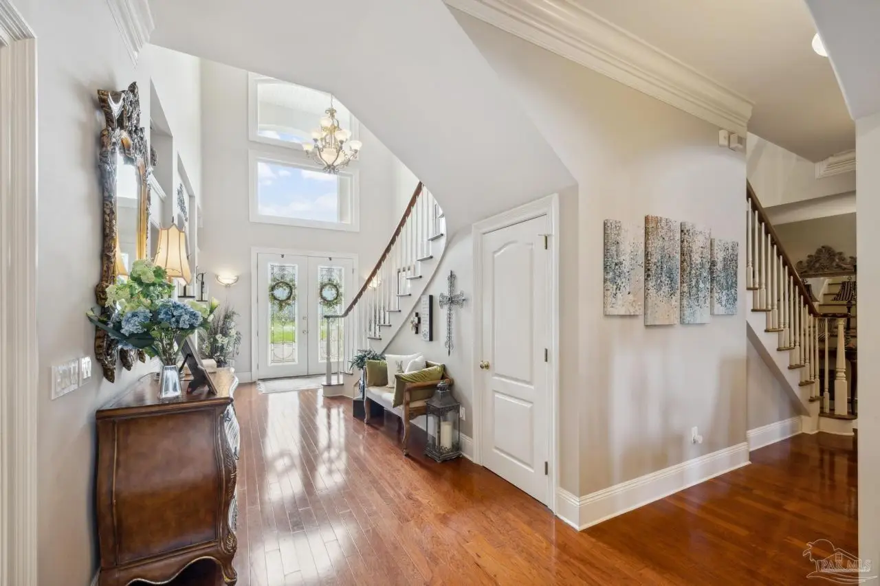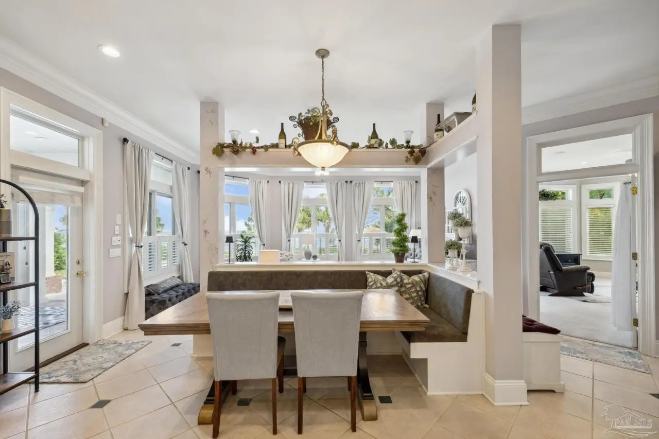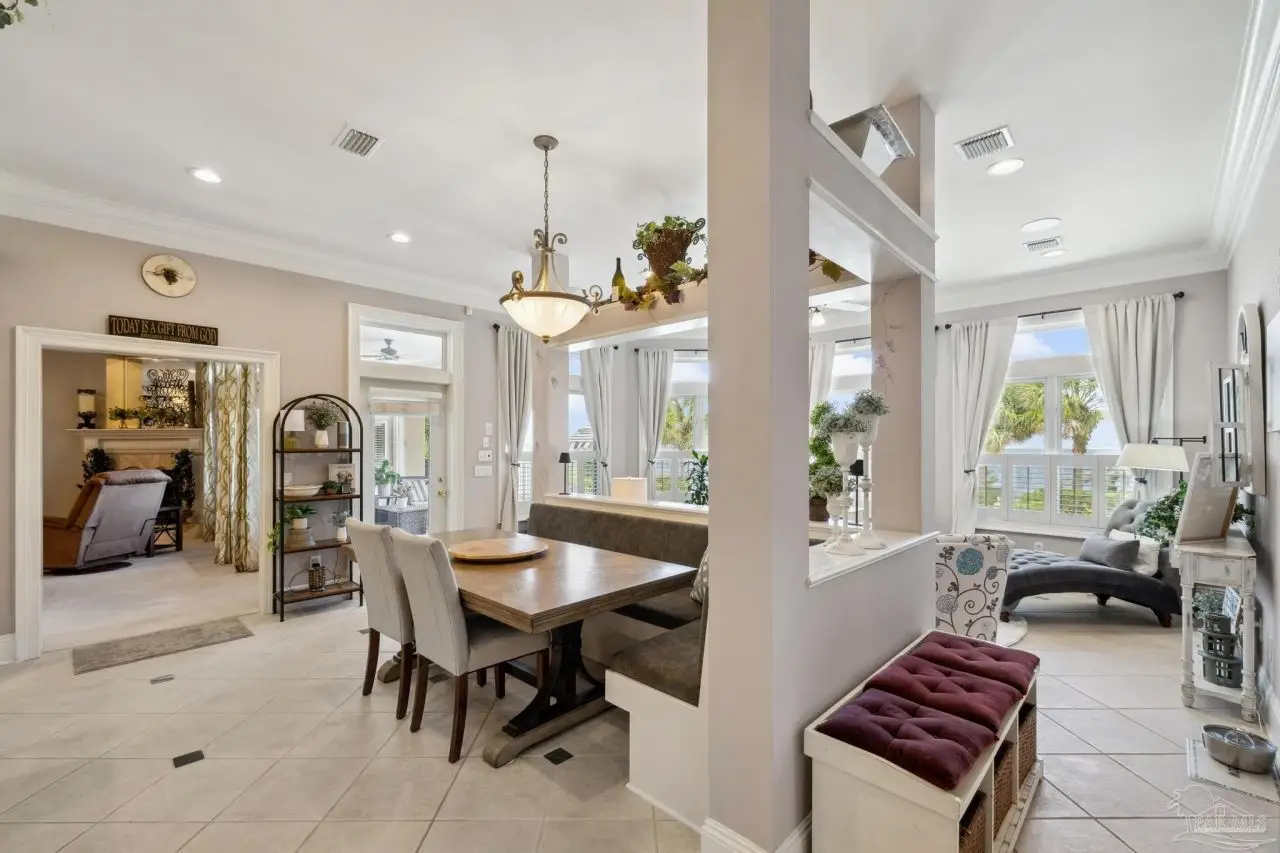Discover coastal elegance at this stunning 5-bedroom waterfront estate perfectly positioned on a pristine stretch of shoreline overlooking pristine Johnson's Beach. This extraordinary residence offers the ultimate blend of privacy, comfort, and breathtaking views-complete with its own sandy white beach and gunite pool. Step inside to find a thoughtfully designed floor plan featuring a formal dining room ideal for hosting gatherings, a dedicated home office for remote work or study, a spacious waterfront living room with panoramic water views, a chef's kitchen ready for everyday meals or upscale entertaining a sunroom, a luxurious primary suite and a guest bedroom all on the main level. A spacious family room with built in cabinetry upstairs opens to three generous bedrooms and a game room perfect for entertaining. The 2-car garage adds convenience and storage, while the expansive covered outdoor area creates your own personal retreat with a private pool just steps from the water's edge. Enjoy sunrise strolls on your own beach, sunset views over the bay, and quick access to the natural beauty of Johnson's Beach and the Gulf Islands National Seashore-just minutes from your back door. This rare waterfront gem combines luxury living with laid-back coastal charm. Whether you're looking for a full-time residence or a private escape, this is where your dream lifestyle begins. Schedule your private tour today and experience waterfront living at its finest.