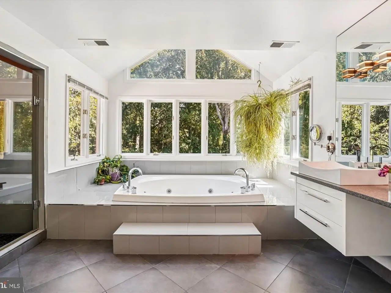 OPEN SUNDAY 11/9, 1-3PM! An Exceptional Contemporary Masterpiece On Private Cul-de-Sac! Perfectly situated at the end of a quiet cul-de-sac, backing to a tranquil wooded creek, this stunning 5-bedroom, 4.5-bathroom Contemporary Colonial offers an unparalleled blend of nature, luxury, and location. With thoughtful renovations throughout, including a brand-new roof & new skylights(2024), fully renovated gourmet kitchen (2019) , stylishly remodeled powder room (2018), and primary bath (2009), upgraded Thompson Creek windows (including new updates in 2025), and a new attic fan (2024), this home is truly move-in ready. And best of all-there's no HOA! A charming flagstone walkway leads into a striking, modern foyer where soaring ceilings and skylights welcome you into the sun-drenched, showstopper living room. Floor-to-ceiling windows flood the space with natural light and showcase wooded views, while a commanding stone fireplace anchors the room with style and warmth. Just off the foyer is a renovated powder room with a sleek vanity and oversized mirror, while a hallway leads to the oversized two-car garage and a sunlit laundry room with a storage closet, and built-in shelving. The formal dining room, enhanced by large replacement windows overlooking lush greenery, sets the stage for elegant gatherings. The fully renovated modern gourmet kitchen is a chef's dream, boasting a picturesque breakfast nook surrounded by an oversized scenic window, top-of-the-line stainless steel appliances, and a sleek quartz center island with a cooktop and breakfast bar. Craftmade cabinetry, a deep sink, and abundant storage (including pantry closet, pull-out drawers, spice racks, and an appliance garage) ensure effortless organization. Open to the kitchen, the family room offers a cozy atmosphere with access to the private deck-an ideal space for relaxing or al fresco entertaining surrounded by a peaceful wooded setting. Upstairs, a dramatic open hallway overlooking the striking living room and foyer below adds an architectural wow-factor-creating a light-filled, gallery-like feel that is both airy and grand. The spacious primary suite features vaulted ceilings, and multiple windows. A custom dressing area leads to the bedroom and includes several walk-in closets, built-in drawers, custom shelving, and wall closets for an abundance of storage. The renovated primary bath is a true standout, with a vaulted ceiling, heated floors, and wide windows overlooking the backyard. A heated ceramic tile floor, Jacuzzi tub, dual vanities with vessel sinks, a walk-in shower, and private water closet bring spa-like comfort to everyday living. Three additional bedrooms and two full baths are situated at the other end, offering flexible living for guests or family members while maintaining the seclusion of the primary suite. Each bedroom offers double-door closets, ceiling fans, and large windows. The updated bathrooms include features such as a double vanity, new toilet (2024), and a brand-new window (2025). The finished walk-out lower level features a large recreation room with built-in bookshelves, a wet bar, a beverage fridge, and a pool table, which conveys with the home. Additional features include a spacious fifth bedroom with large window views, a dedicated exercise room, a full bath, a large storage/utility room, and door leading directly to the backyard for convenient access. Whether you're hosting friends, hiking scenic trails at nearby Cabin John Regional Park, or commuting easily into the city, this home offers the best of all worlds. Enjoy access to miles of trails, ball fields, playgrounds, and recreational amenities just minutes away. A multitude of premium shopping and dining options just minutes away make errands and evenings out a breeze, while close proximity to I-270 and the Capital Beltway ensures easy access to Bethesda, Rockville, and Washington, D.C. Don't miss out!