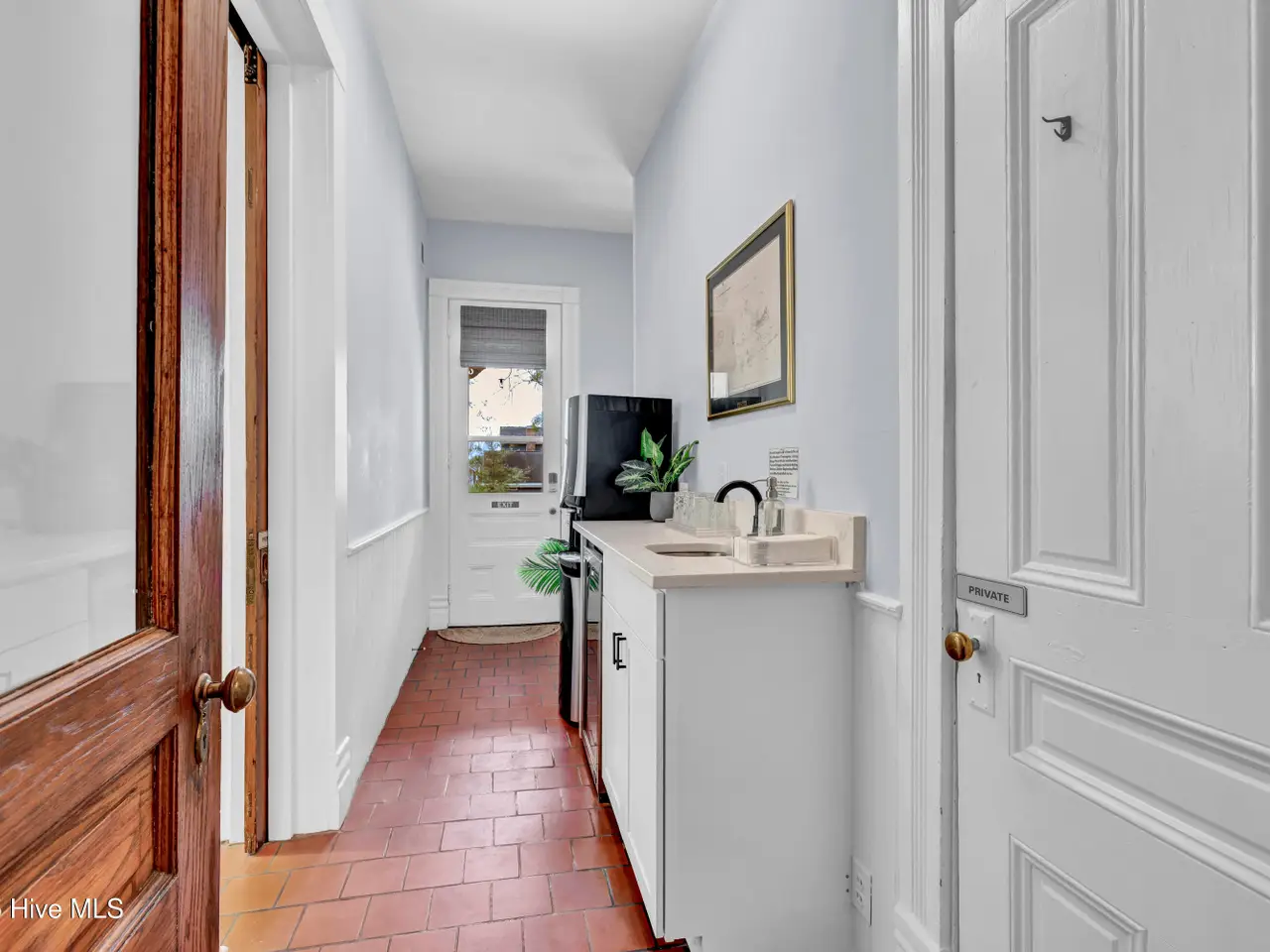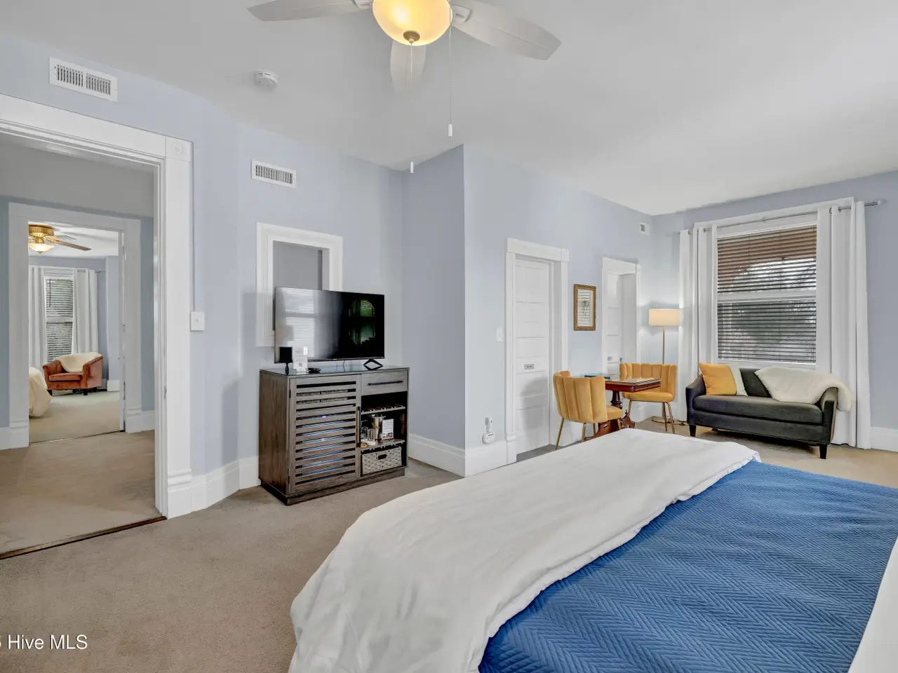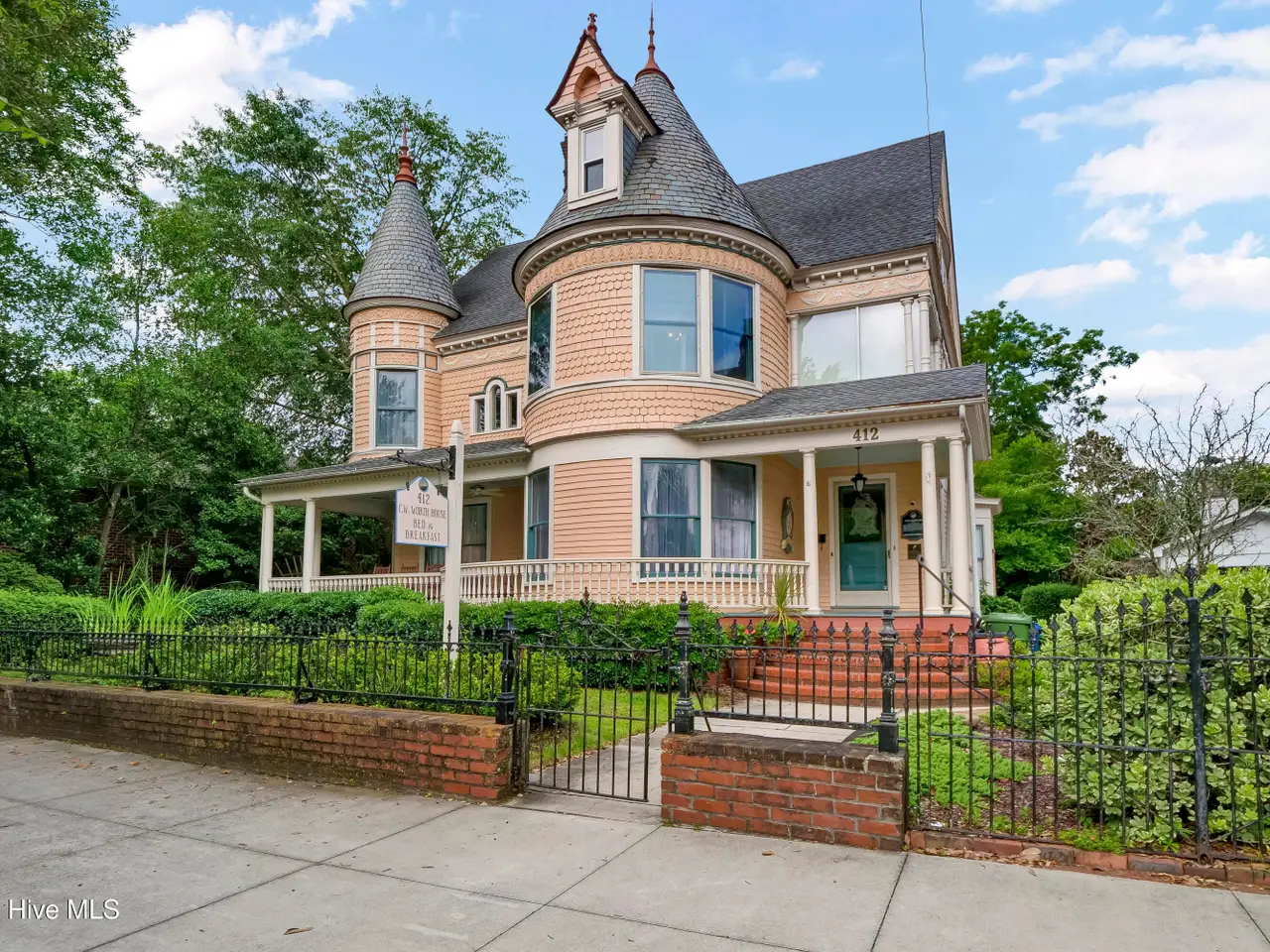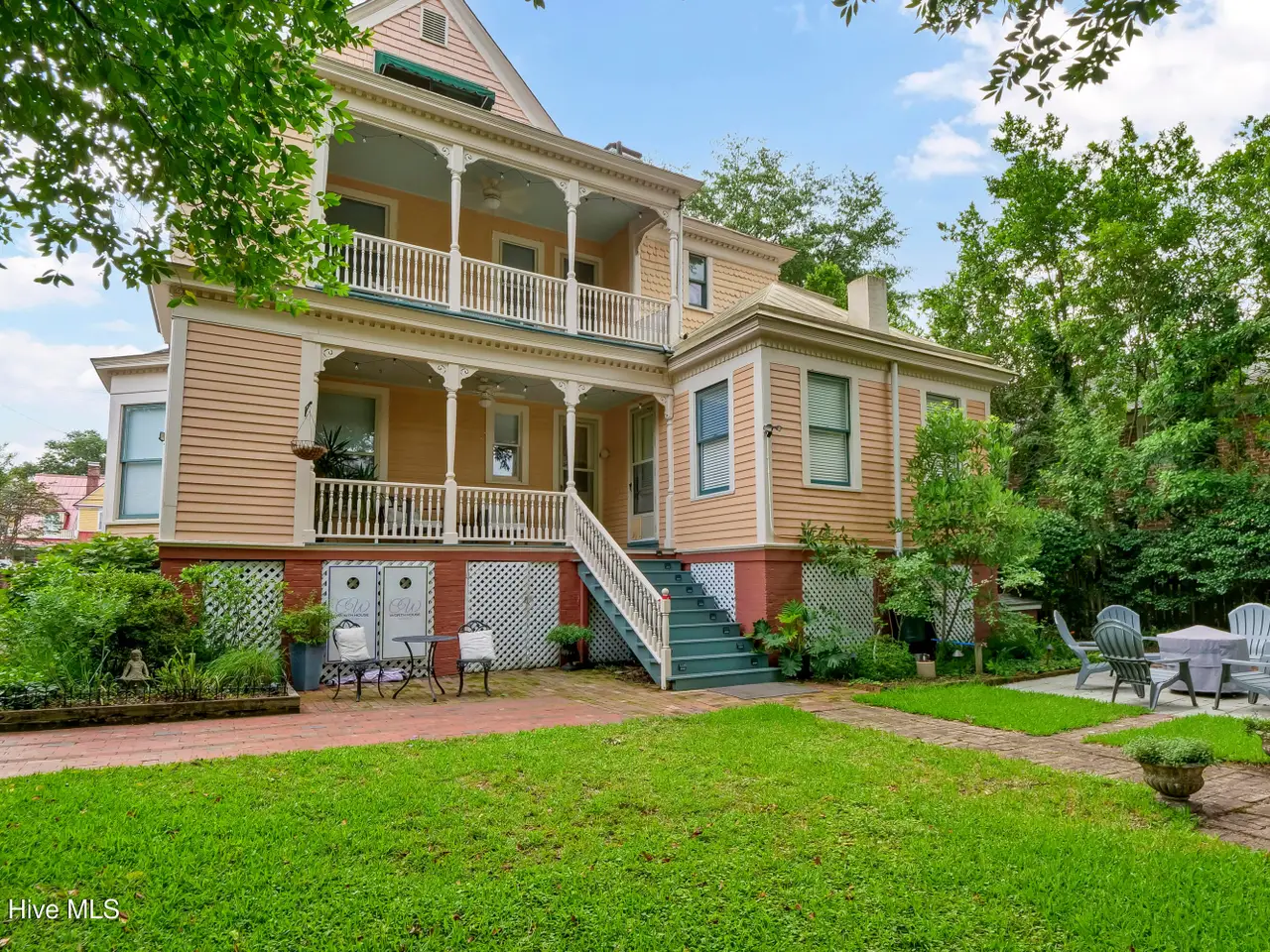 Charming Victorian Estate in Wilmington Historic District Nestled in the heart of the Wilmington Historic District, this unique Victorian residence offers a rare blend of historic elegance and modern comfort. Spanning approximately 6,290 square feet, the property features eight distinctive bedroom suites, each with its own private bath and unique character, making it ideal for a spacious family home or continued use as a luxury bed and breakfast. The main level is designed for both comfort and entertaining, showcasing formal gathering areas, a recently updated kitchen, and a large primary suite. A stylish powder room is cleverly tucked beneath a handcrafted wooden staircase, adding a touch of architectural charm. The second and third floors house the remaining seven bedroom suites, along with generous additional living spaces that offer flexibility for guests or family. Outside, enjoy Southern living at its finest with a welcoming wrap-around front porch and a private back porch that overlooks a serene garden and pond, surrounded by mature landscaping and towering trees for ultimate tranquility. An alley-access drive at the rear of the home leads to an additional vacant parcel, currently used for parking but equally suited for expansion, gardening, or outdoor gatherings. Located just minutes from downtown Wilmington, the Riverwalk, and top dining destinations, this property offers both historic charm and prime convenience. Currently operating as the CW Worth House Bed and Breakfast, it provides a seamless opportunity for continued business or conversion to a grand private residence.