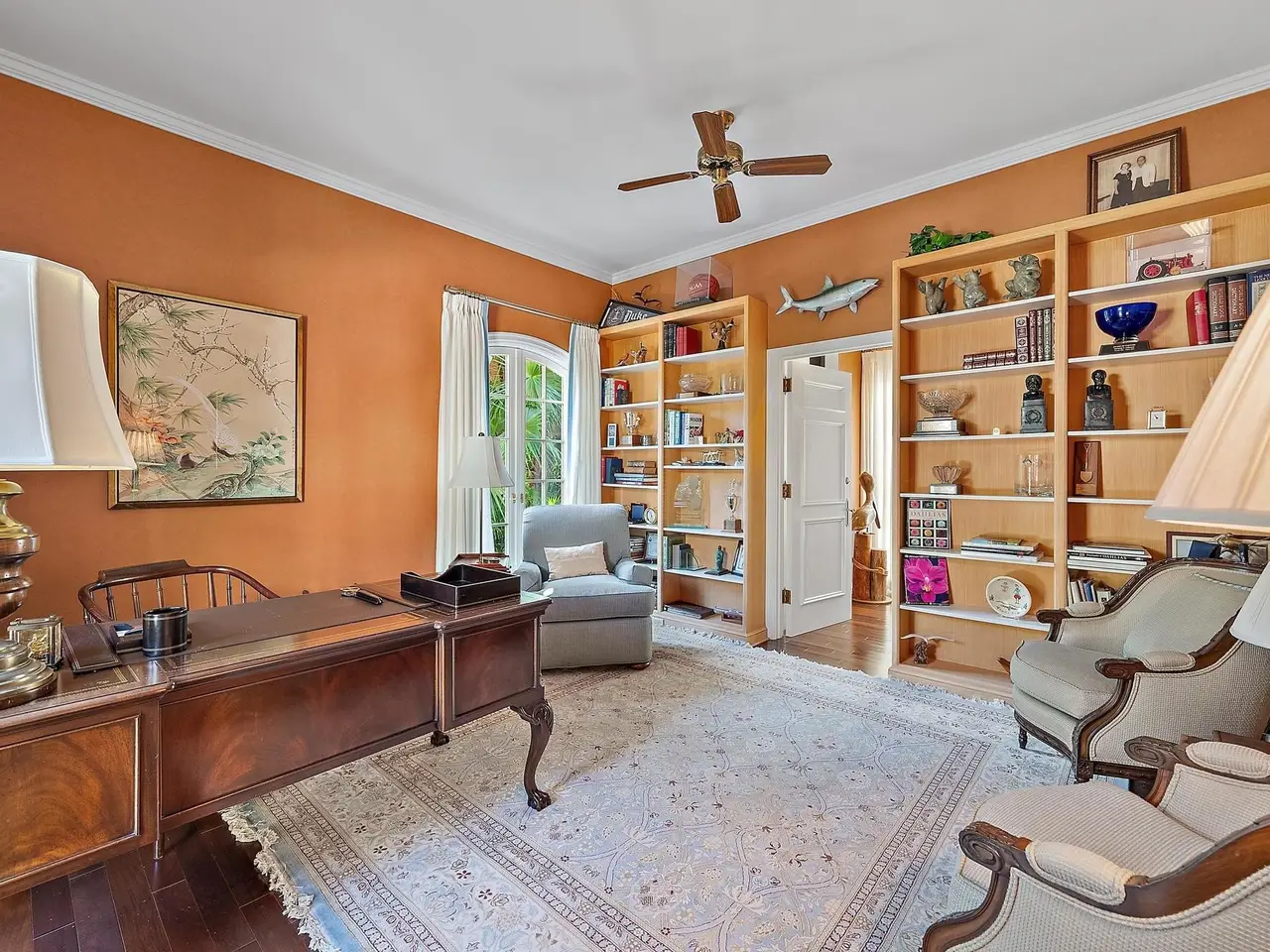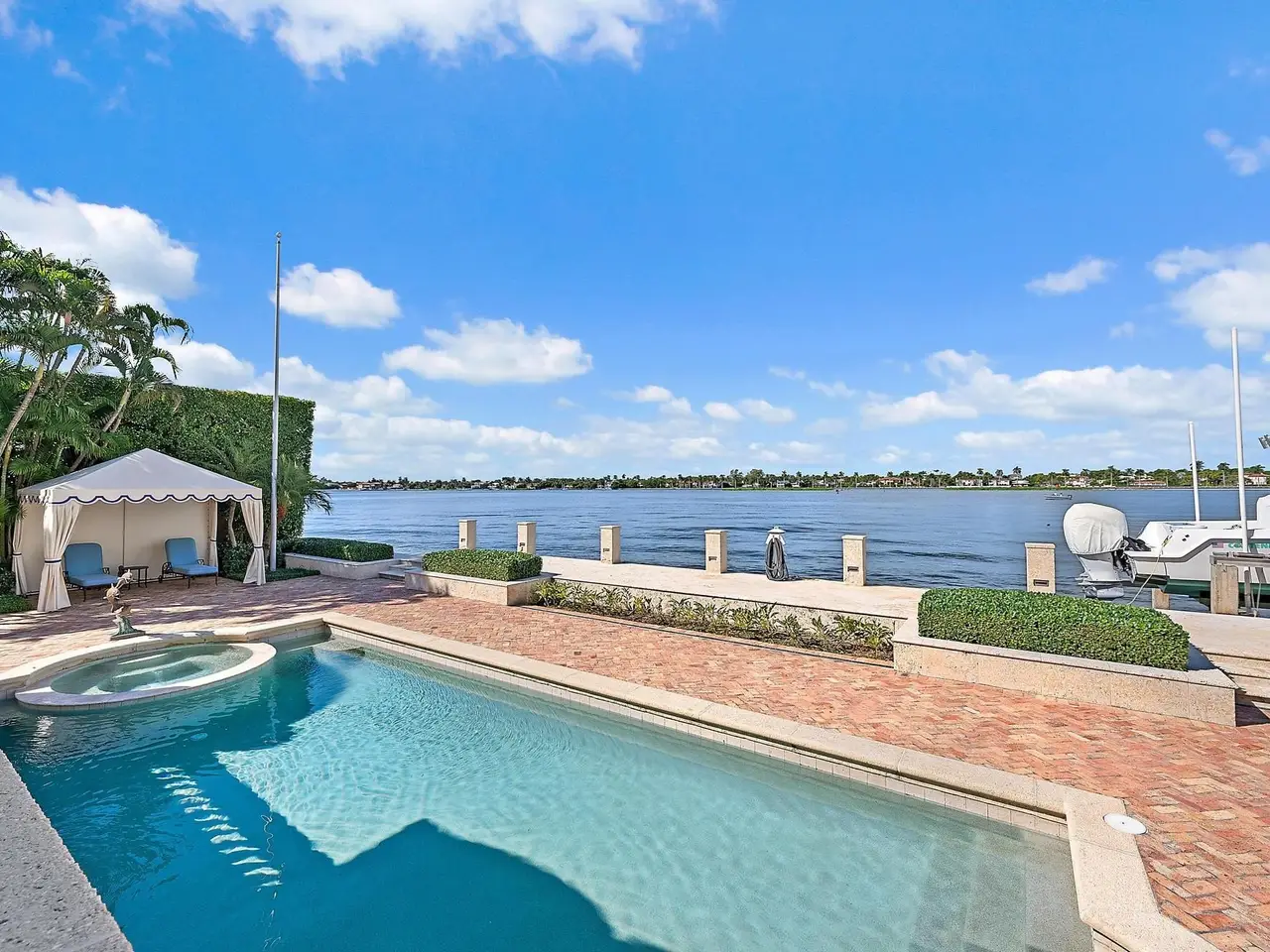 A private paradise and the ultimate tropical retreat, this elegant Estate boasts 110 feet on the Intracoastal Waterway and offers stunning water views. Everglades Island is prized as one of Palm Beach's most exclusive and tranquil enclaves. With only one entry point, it provides an unmatched level of privacy offering an unparalleled lifestyle of luxury and recreation for a select few. Showcasing classic architecture defined by graceful symmetry, posh detailing, decorator volume ceilings and banks of French doors provide access to the waterfront loggias, serene, heated pool and dock with 10,000 lb. boatlift. The water-view primary suite, a serene sanctuary, features an awning-covered terrace as well.