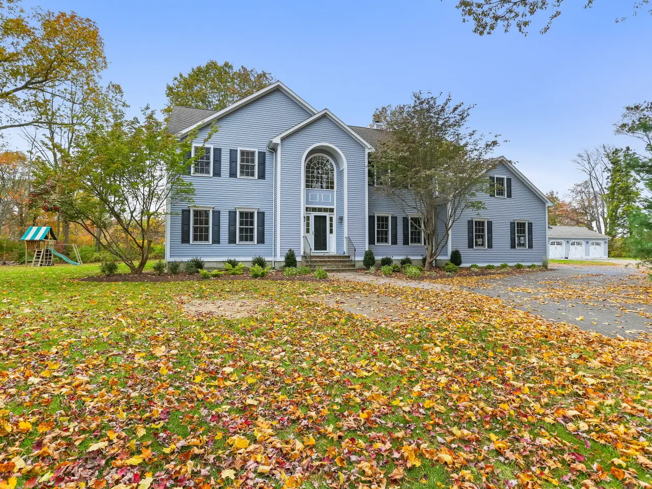 Stately Colonial retreat with Sunset Views and Pool Oasis...Privately situated on a rear lot, this Massive Colonial home opens to expansive, sunlit fields offering breathtaking sunset views year-round. The Main Level feaures spcious Entertaining Areas with Gleaming Hardwood Floors and 9'+ Ceilings, creating an Open and Elegant flow throughout. The Primary Bedroom Suite includes Hardwood Flooring, an Oversized Bath with Jetted Soaking Tub, separate Shower, and Custom Walk-In-Closet fitted with built-in organizers. Three Additional Bedrooms feature New Carpeting and ample storage provides perfect flexibility for Modern Living. Step outside to beautifully landscaped grounds with a Large In-Ground Pool and Spa, both solar co-heated for efficiency. A Spacious Deck with a Sunsetter Awning overlooks the open fields, ideal for outdoor dining or relaxation. Additional highlights include a 3-Car Garage (has the potential to accommodate 6 Cars total if lifts were installed) Ample Private Parking, Generac Generator System for peace of mind. Recent upgrades include a solar pool heating system and on-demand hot water heater. The oversized playset is also included. Enjoy your own private enclave just mintes from all the wonderful amenities Trumbull has to offer-parks, shopping, schools and commuter routes.