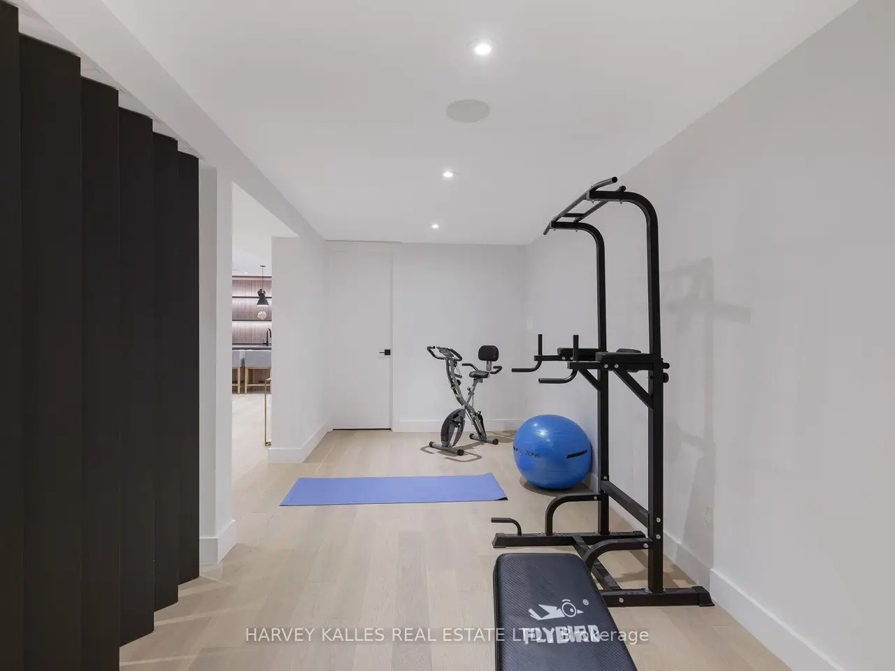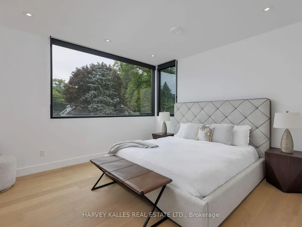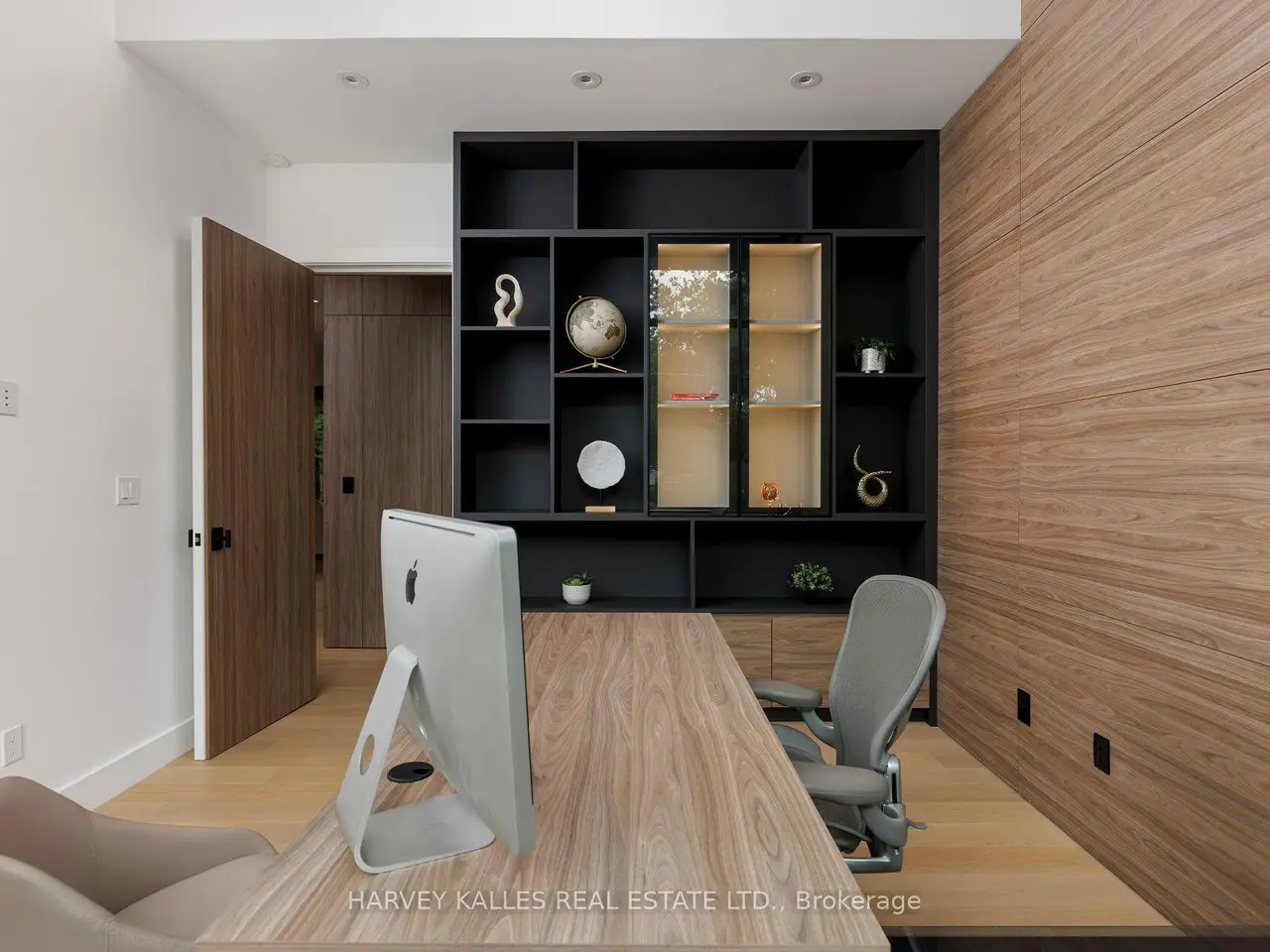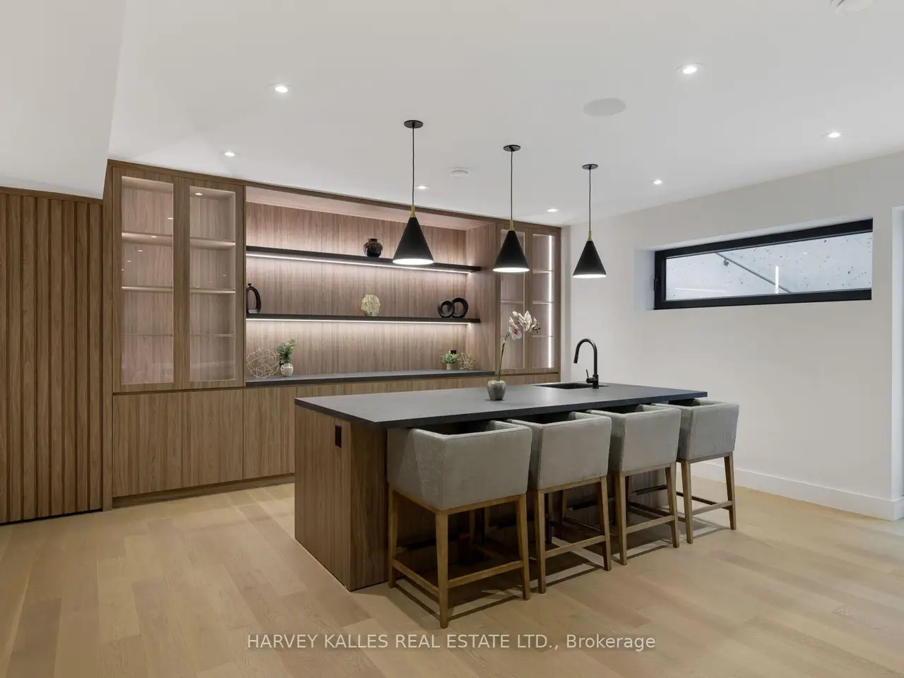 Exceptional custom residence with a masterful fusion of contemporary design with serene Zen influences. 6600+ sq. ft. of finished living space, carefully crafted over four years. Dramatic 20-foot foyer with its illuminated glass pivot door, with expansive light-filled spaces highlighted by a floating staircase, architectural feature panel walls, and warm custom millwork. On the main level, a modern family room with a striking two-sided linear fireplace provides both comfort and sophistication, while the bespoke executive office offers custom millwork and gorgeous treetop views. The chef's kitchen is a true showpiece, featuring Miele appliances, a PITT gas counter range, and a separate catering kitchen. A stylish powder room, skylights, heated floors, and refined cabinetry complete the main level. The primary suite is your private retreat with a spa-inspired ensuite, custom walnut and glass walk-in closets, and a cozy lounge complete with 3-sided fireplace ambiance. Additional bedrooms feature en-suite baths and built-in cabinetry, with a flexible fourth bedroom suite that provides versatility. Your laundry room with full custom millwork completes the upper level. The lower level is an entertainment and wellness oasis: 15-seat soundproof theatre, glass-walled temperature-controlled wine cantina, open-concept gym, and a sleek wet bar create the ultimate space for relaxation and hosting. A nanny or guest suite with a spa-like ensuite and direct walkout to the landscaped grounds ensures comfort and privacy for extended stays. The exterior showcases modern brick and aluminum cladding, beautifully landscaped grounds with irrigation, and sleek architectural lighting. Technology is seamlessly integrated with a Control4 smart home automation system, delivering comfort, convenience, and efficiency at your fingertips. This is more than a home, it is a contemporary Zen oasis, where design, technology, and tranquility converge to create a sanctuary for modern living.