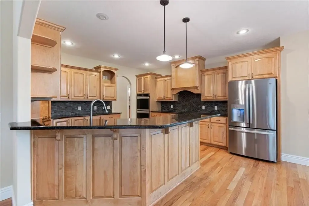 Nestled on a beautiful 1.73 acre lot, surrounded by landscaped gardens and mature trees. The 3 car garage, stone accents, and solid wood front door welcome you to this custom-designed property. The living room is an inviting retreat, with 11 foot ceiling, a stone fireplace and built in bookcases with a wall of windows overlooking the wooded back yard. Wood flooring leads into the dining area and kitchen, with an abundance of granite counters, wood cabinetry with under cabinet lighting and additional bar top seating. The four season sunroom gives the feeling of being in a treehouse, with access from the dining area and primary suite. The primary suite and bath feature a large closet with access to the laundry. The perfect home office completes the main level. The lower level has a living area with bar sink and wine refrigerator, two spacious bedrooms and full bath. Additional finished space could be used as a game room, home theater or workshop. The patio and outdoor kitchen are perfect for entertaining! Gorgeous!