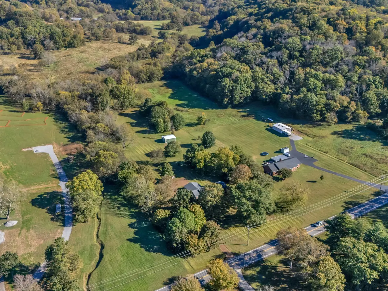 One level living on 5.9 beautiful acres of flat, Williamson County land. Priced at Appraised Value. Ten minutes from downtown Franklin and one mile to Southall Farm & Inn. The land tells a beautiful story of a local family riding their tractor from historic Leipers Fork to this family land in Franklin back in the day and planting acorns from their father's travels along the eastern property line. Irises that have continued to grow for 100 years. Wildlife to be seen and arrowheads to be found along the spring-fed creek. The home is warm and welcoming with plenty of space including a formal living, dining room and den. The eat-in kitchen holds a vintage Frigidaire refrigerator. The laundry room is spacious right off the kitchen with an additional utility room and access to the back patio and carport. The large, primary suite welcomes the morning light and has a private bathroom and walk-in closet. Two additional buildings are on the land including a large workshop/barn and a storage shed.
