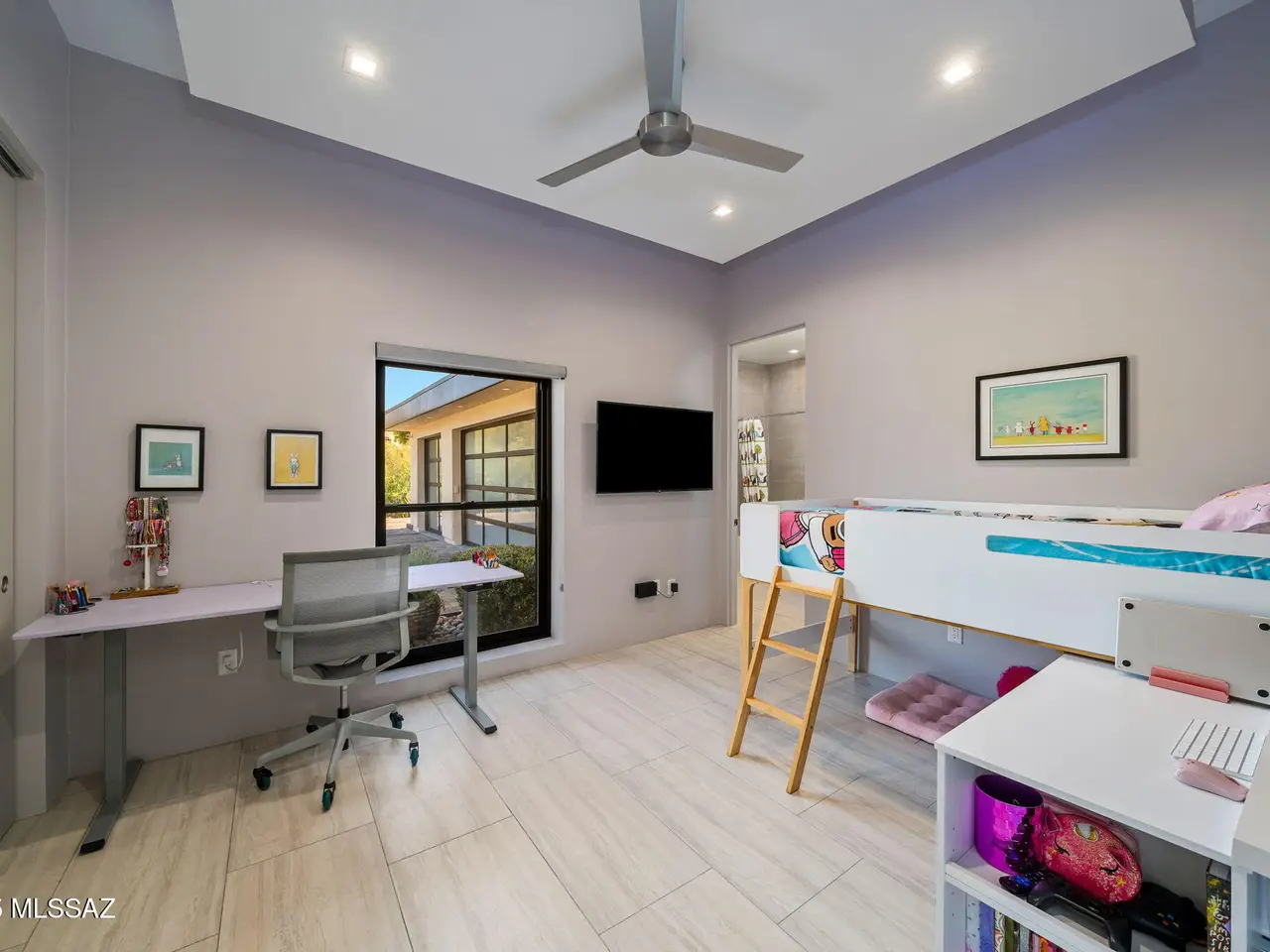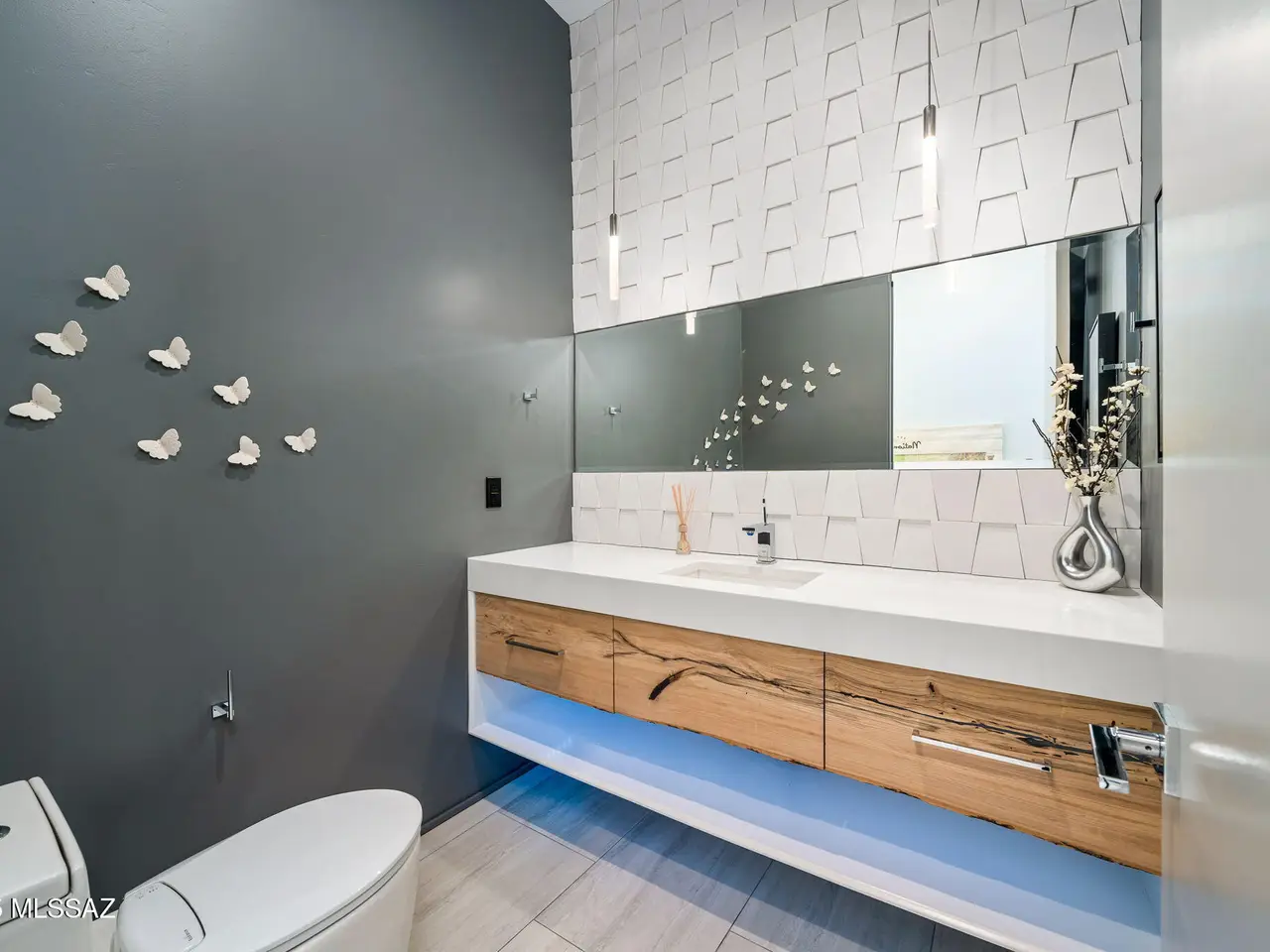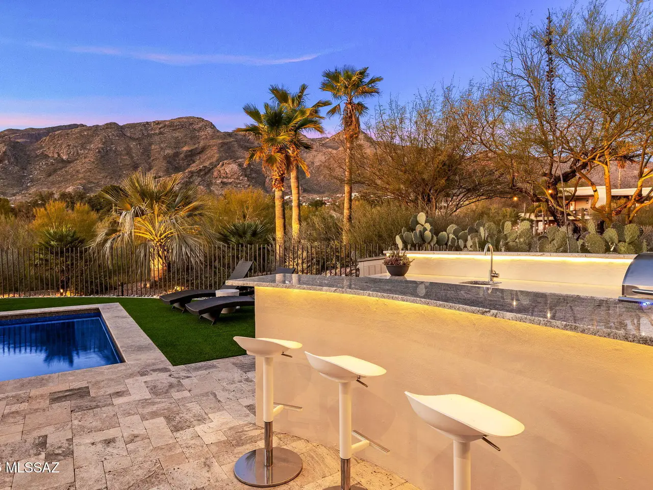 Experience the perfect blend of modern luxury and seamless indoor-outdoor living in this stunning TF Robertson-designed home, situated on 1.17 acres within the prestigious, 24-hour guard-gated Skyline Country Club Estates. Designed to impress, this 3,228 sq. ft. contemporary masterpiece offers four en-suite bedrooms, each featuring tray ceilings and custom lighting. From the moment guests arrive, they'll be captivated by the grand 12 ft-high, 9 ft-wide front door, offering a breathtaking view that extends through to the majestic Catalina Mountains beyond. Exceptional Design for Entertaining - the great room is an entertainer's dream, boasting soaring ceilings and a 12-ft multi-slide glass door that opens to an expansive patio. Here, you'll find a fire table, outdoor kitchen, and a heated pool and spa (built in 2023) with a self-cleaning system, all set against a panoramic Catalina mountain backdrop. A minimalist fence encloses the patio, ensuring unobstructed views while maintaining privacy. Serene Owner's Retreat - wake up to stunning mountain views from the spacious primary suite, which features a walk-in closet with built-ins and direct access to the patio for effortless indoor-outdoor relaxation. Sustainable Luxury & Smart Features - equipped with a 12.75 kW Tesla Solar System and three Powerwall battery backups (40 kW total), this home embraces energy efficiency. The oversized three-car garage includes a Tesla charger, while a whole-house water filtration system ensures optimal water quality. The smart home system connects indoor/outdoor accent lighting, motorized shades, and pool/spa features. Resort-Style Community Amenities - Skyline Country Club Estates offers exclusive access to golf, lighted tennis and pickleball courts, a swimming pool, spa, and a state-of-the-art fitness center (membership required for certain amenities, inquire for more details). Don't miss the opportunity to own this exceptional modern home with unparalleled views and luxury living.