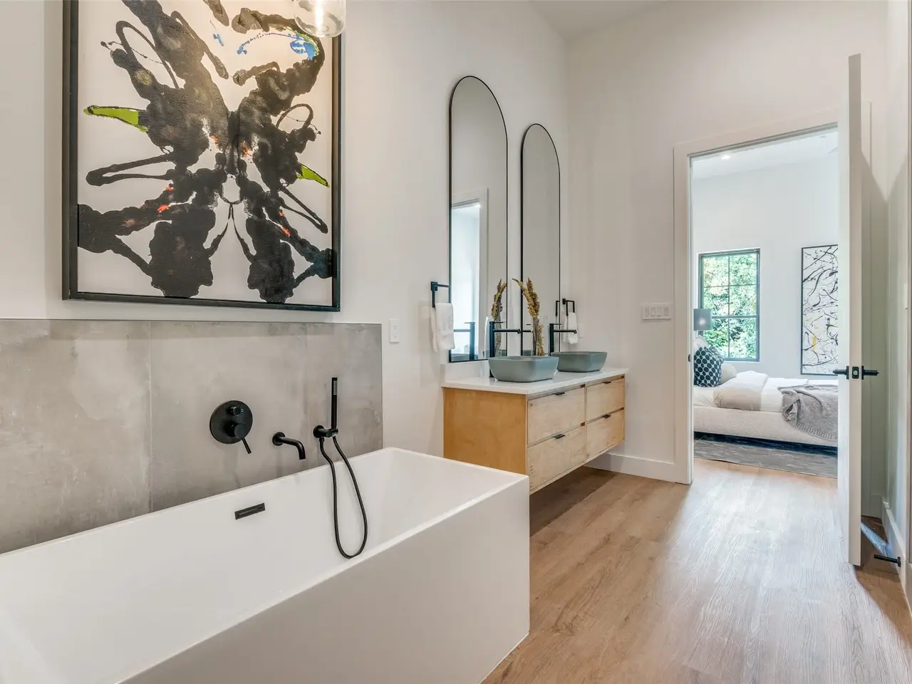 Modern Spanish Mission Estate on a secluded heavily treed 1.25-acre creek lot. New construction inspired by Pueblo Mission Architecture, completed in 2025. Twelve-fifteen minutes South of downtown Dallas, escape to seclusion where you live and entertain effortlessly! The private courtyard leads through custom iron and glass doors, with an open-concept gourmet kitchen, a seated island, and wine storage overlooking the formal dining and creek lot with room for a pool! Generous living room and office with floor-to-ceiling glass walls, retreat style owner's suite, and additional guest suite with access to indoor hot tub, and second office. First-floor laundry room located off entry hallway behind kitchen. The second floor holds an additional primary suite with a private office and washer-dryer connections, a fourth guest room, with hall bath access, and a theatre room with a kitchenette. Three-car garage with a built-in dog bath. Over 1,800 sq. ft. of partially covered outdoor terrace and patio space including an outdoor shower. This property has it all! Lot next door available! .85 of an Acre, MLS #21081898, 803 W Danieldale Road Duncanville, TX 75137.