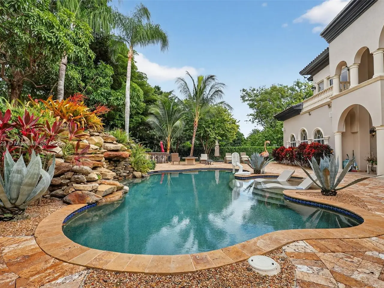 Timeless Elegance in Pinecrest. This stately 6-bed, 9-bath estate offers luxury and privacy on a lush builders acre lot. Features include a maids quarters and in-law suite with private access, expansive living areas, family room, theater, and safe room. Enjoy a 5-car garage, guest parking, and an expansive travertine driveway. Outdoor amenities include multiple patios, a basketball court, waterfall pool, and summer kitchen. The chefs kitchen boasts multiple ovens, sinks, and dishwashers. Gated entry, camera surveillance, surround sound, and a whole-house generator ensure security. Once the set of the Iconic Charlies Angels TV Series, this home blends Hollywood glamour with modern sophistication.