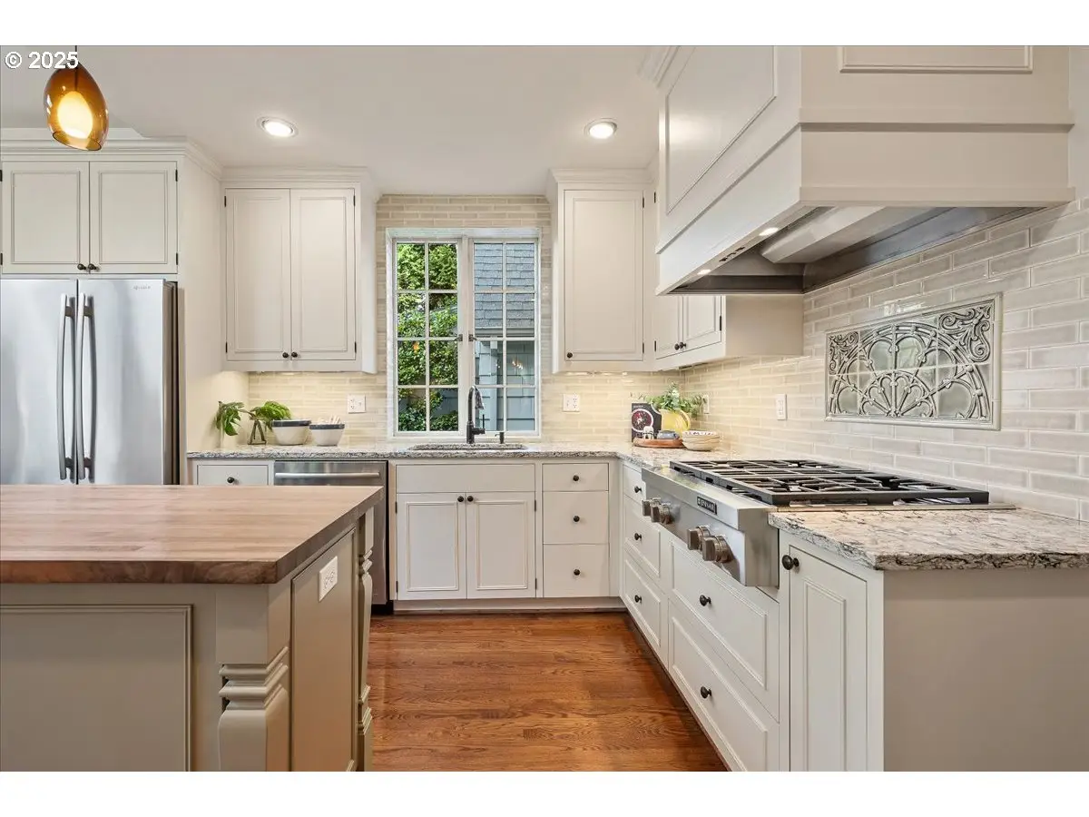 A carefully remodeled 1925 Tudor on a beautiful, tree-lined Eastmoreland street. Original details preserve the soul of the era, and an exceptionally modern floorplan make the home ideal for today. This is the FIRST time on the market, with only three owners. An understated timber clad exterior and winding path take you to the front door. The friendly entry is a cathedral ceiling with French doors to the living room; custom bookshelves, built-ins, hardwood floors, gas fireplace, too many windows to count, and a view through French doors of the architect designed backyard/courtyard. Your first impression is WOW, and that feeling continues. Remodeled kitchen with quality inset cabinetry, high-end stainless appliances, coffee nook, butcher block & solid stone counters, timeless tile. Skylights fill the adjoining family room with soft natural light. Remarkable indoor/outdoor connection and entertaining areas. Dining room is spacious and filled with detail; every day use will feel special, and also dressed & ready to entertain. Amazing main floor office with stunning leaded glass windows. Necessary modern updates blend with original features all throughout the home; coved ceilings, crown moldings, built-in window screens, original doorknobs, nooks. The primary bedroom suite has FOUR closets, the attached bath has double sinks, marble counters & gorgeous new tile shower surround. A total of 4 bedrooms + office. Downstairs, a cozy family room provides the perfect retreat for movie nights or guests. A rare find to have living room, family room and bonus room! Step outside to renowned Barbara Fealy designed backyard -- an urban sanctuary framed by lush landscaping and mature trees, courtyard, winding paths and garden beds. Detached garage is oversized. Eastmoreland is moments from the convenience of Woodstock, charm of Sellwood, and beautiful Reed College campus. A comfortable, functional and elevated home, this elusive Eastmoreland home delivers it all. Open Sunday 11am - 2pm [Home Energy Score = 1. HES Report at https://rpt.greenbuildingregistry.com/hes/OR10242387]