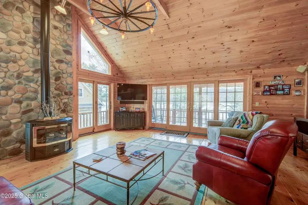First class lakefront home w/120' on the Great Sacandaga! Property boasts high quality finishes & beautiful spaces, inside & out, with sophisticated Adirondack style. Gorgeous custom kitchen w/commercial appliances & lots of natural light. Vaulted ceiling & stone hearth in living room. First floor master w/luxurious bath featuring soaking tub & large walk in shower! Wrap around deck is accessible from multiple rooms. Enjoy lake views from most rooms of this amazing home. Addt'l BRs, full bath, & office space both upstairs and down. Laundry room on main level. Walk out basement w/additional finished space & workshop. Spacious guest room above det. 2 car garage (w/3 bays below for 'toy' storage!) Whole house generator. Adjacent 15 acre addt'l lot w/ 30' lakefront available for addt'l $165k