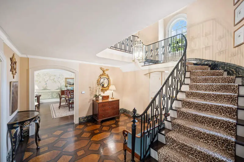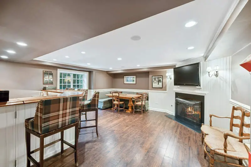 Nestled away on private acre of Woodley Road, this stunning whole house renovation of stately colonial by Benvenuti & Stein, with interior architecture and design by James Michael Howard, is a must see! Greeted by elegant entry with hand painted wood floor and pretty staircase. Oversized formal living room with lacquered ceiling and fireplace open to sunny sitting room with fireplace overlooking tranquil backyard. Formal dining room features hand painted walls and custom wood trim and opens to tasteful Butler's pantry with sink, SubZero beverage drawers, Scotsman ice maker, and Fisher Paykel dishwasher. Oversized gourmet white kitchen features custom cabinetry, Carrara marble countertops and backsplash, two sinks, huge island with wood countertop and breakfast bar, top of the line appliances including: SubZero refrigerator & freezer, SubZero beverage drawers, Wolf double oven, range and griddle, Wolf warming drawer, and Miele dishwasher. The kitchen opens to gorgeous family room with fireplace, built-ins, breakfast dining nook, and French doors to back patio. Rounding out the first floor you will find a tucked away office nook, lovely powder room, and handsome mud room with brick floors and custom lockers. Primary suite features attractive bedroom with en suite dual vanity bathroom with steam shower, separate soaking tub, water closet, and walk-in closet. Two bedrooms feature their own en suite bath. Two additional bedrooms share a lovely Jack and Jill bathroom. Upstairs also features an office or homework room and a back staircase. The finished basement has a huge recreation room with attractive built-ins, powder room, and a great built-in bar with ice maker, beverage fridge and kegerator, wine cellar, and laundry room. Three-car attached, heated garage, with built-in SubZero refrigerator and storage. The substantial yard was professionally landscaped by Mariani & Rosborough Partners. Backyard is an entertainer's dream with beautiful patio, built-in Viking grill, built-in all brick wood burning fireplace, golf hitting bay and cute storage shed. Come see this spectacular home and property!