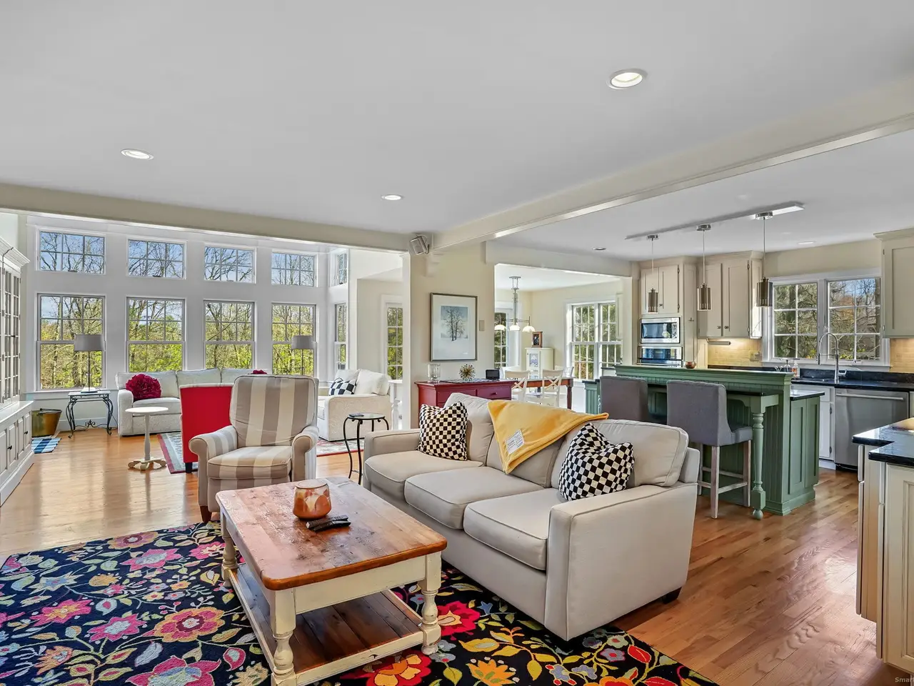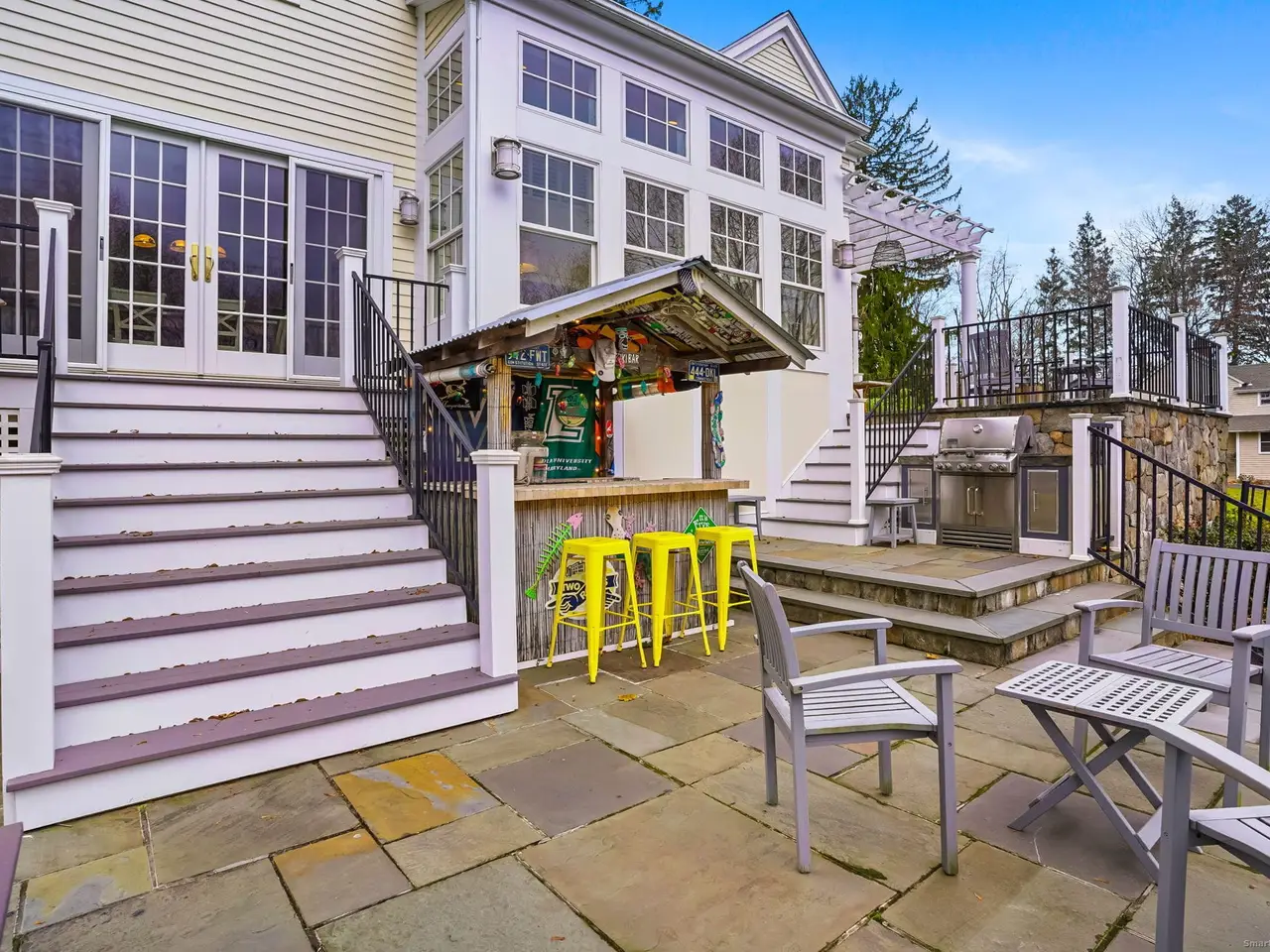 Welcome to this beautifully maintained home in sought-after South Ridgefield, proudly built by well-known local builder Reed Whipple and expanded in 2007 by Roger Provey. Set on stunning park-like, level grounds, the property feels like a private retreat with an in-ground heated pool, waterfall, tiki bar and pergola - perfect for relaxing or entertaining. Inside, the home is open and airy with exceptional natural light from a multitude of windows. The main level features a spacious dining room, study, office, and half bath along with the central heart of the home - a gorgeous chef's kitchen with stainless steel appliances, granite counters and abundant cabinetry. The adjoining breakfast room flows into the vaulted great room with floor-to-ceiling windows, while the comfortable family room offers a cozy fireplace. Hardwood floors run throughout. Upstairs, the primary suite includes two walk-in closets and a beautifully updated full bath. A large multi-purpose room also features an ensuite bath, while two additional well-sized bedrooms share yet a third full bath. The finished lower-level rec room adds even more flexibility. With a whole-home generator, a fantastic neighborhood setting and easy access to all commuter routes down county, this is a special opportunity. Pride of ownership throughout. Don't miss it out on this one - it won't last!