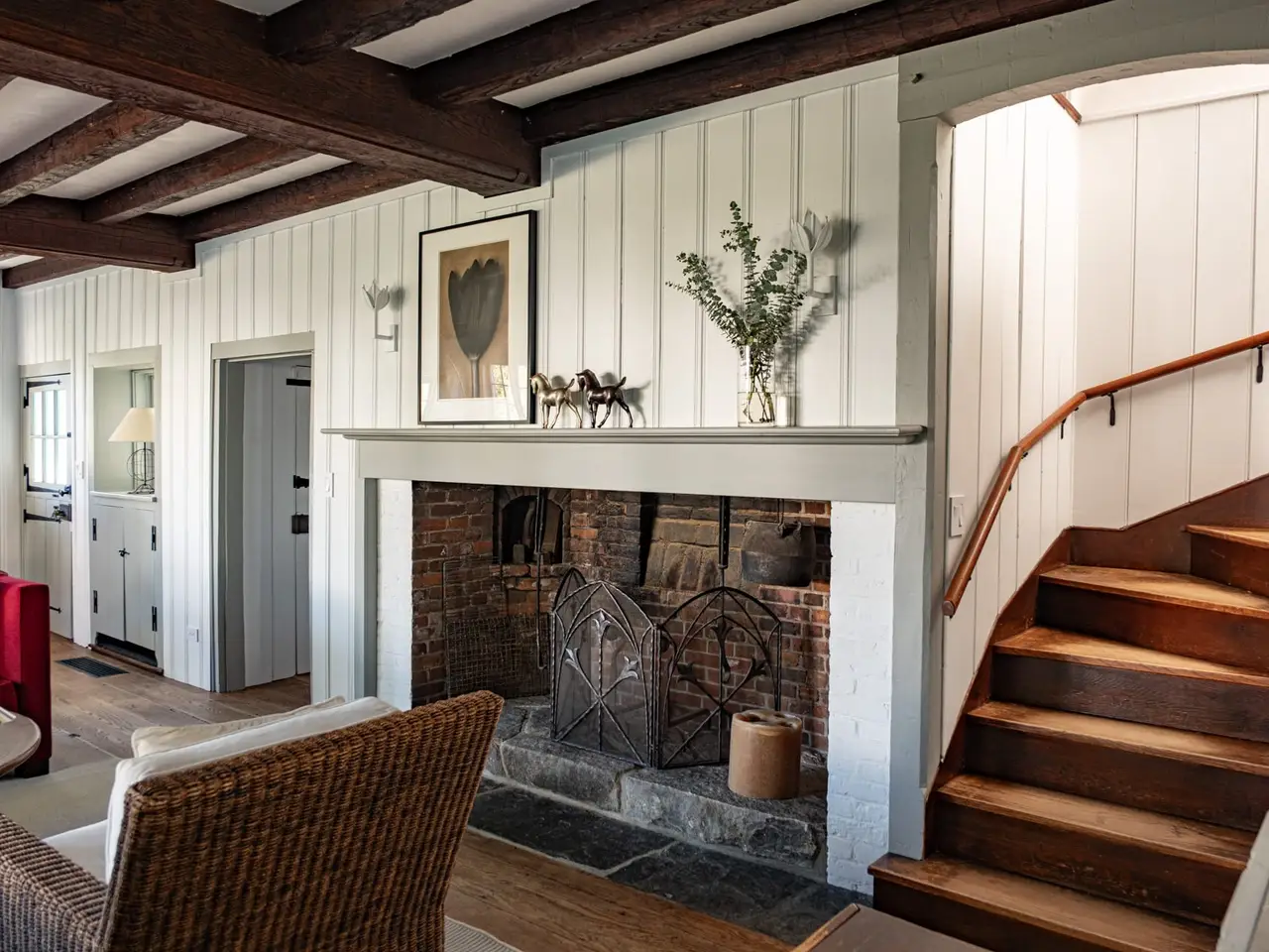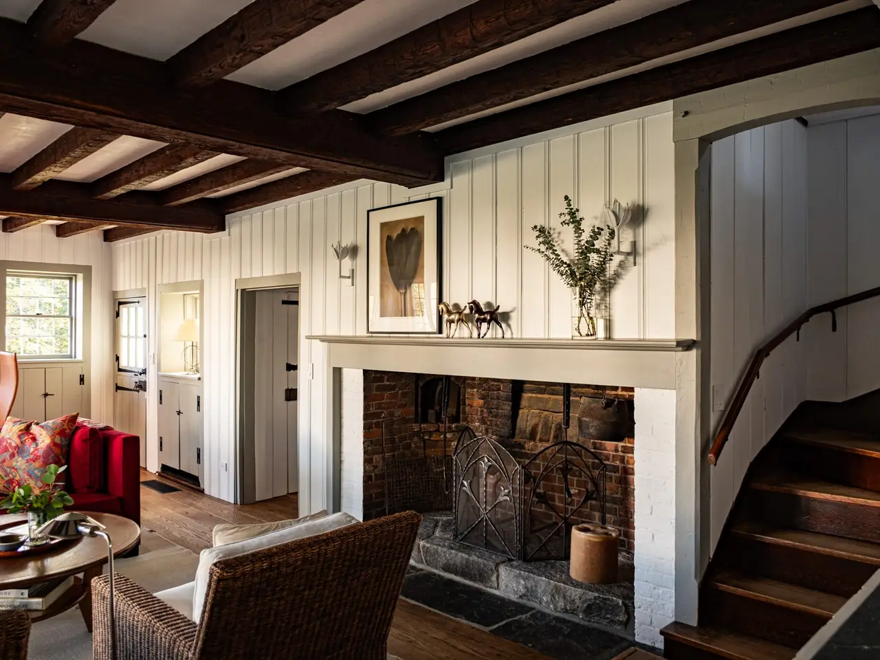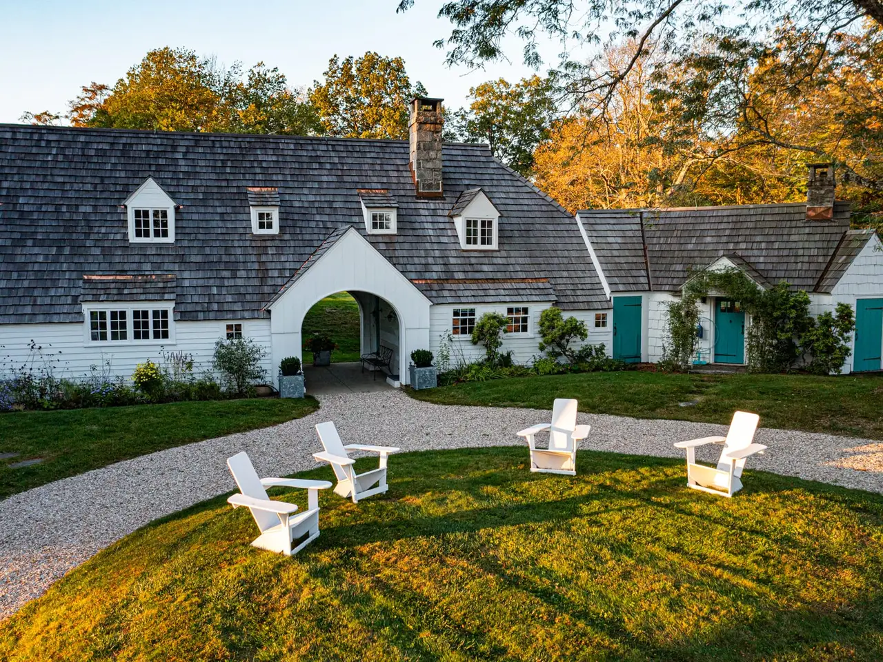 Reverie Farm is an exceptionally rare late 18th century stone and shingle estate, on more than one hundred acres, located in one of the highest and most private parts of Connecticut. Situated in the heart of Litchfield County, the property rises more than 1,200 feet in elevation across four distinct tax parcels, among which are several estate quality building sites. The setting is dreamlike in every season, and quintessentially New England. The 1799 Main house is an architectural marvel that achieves effortless balance between its Georgian-Federal, Dutch Colonial, and European elements. The effect is nothing short of entering a fairy tale, one that unfolds endlessly with each new detail that one discovers. An incredibly intimate home, the Main house at Reverie is nonetheless nearly 7,000 square feet and boasts seven bedrooms, five full and two half baths, several ancient fireplaces, and an historic pub, reputed to be the oldest part of the house. There is a Gunite pool, privately situated among mature gardens, a tennis court, and a beguiling number of ancient trees around the property. Reverie has an overwhelming number of outbuildings including a guest house, separate dance studio with apartment, and an antique barn that was the studio of American Abstract Expressionist painter Cleve Gray. Gray lived at the property with his wife Francine du Plessix, the noted journalist-novelist.