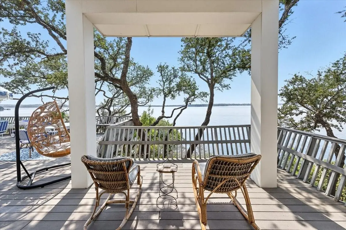 Nestled behind private gates on an expansive 3-acre estate, this extraordinary lakefront residence showcases breathtaking panoramic viewsdirectly across the water from the Boat Club. Designed for those who appreciate the finest in waterfront living, this home combines timeless architecture with stylish, thoughtful updates throughout. The main house offers five spacious bedrooms and four beautifully appointed bathrooms, each designed for comfort and privacy. The kitchen is a true showpiecefeaturing bold designer cabinetry, high-end appliances, and stunning finishes that make it both functional and unforgettable. Multiple living and dining areas flow seamlessly, creating inviting spaces for both intimate gatherings and large-scale entertaining. Outside, tiered landscaping leads to a resort-style pool, covered lounge pavilion, and an enclosed boathouse equipped with three slips and garage doorsperfect for enjoying every season on the water. The casita adds flexibility with an additional bedroom and full bath, ideal for guests or extended stays. Every hour here hits differentfrom easy mornings on the lake to evenings that feel like vacation. With space to host family, friends, and unforgettable lakefront events, this is next-level living at its finest.