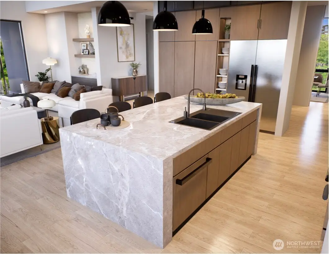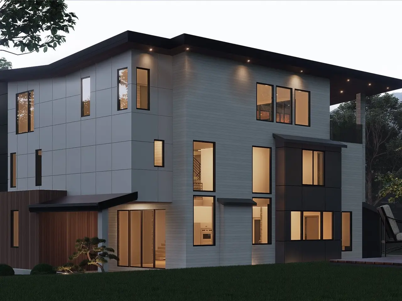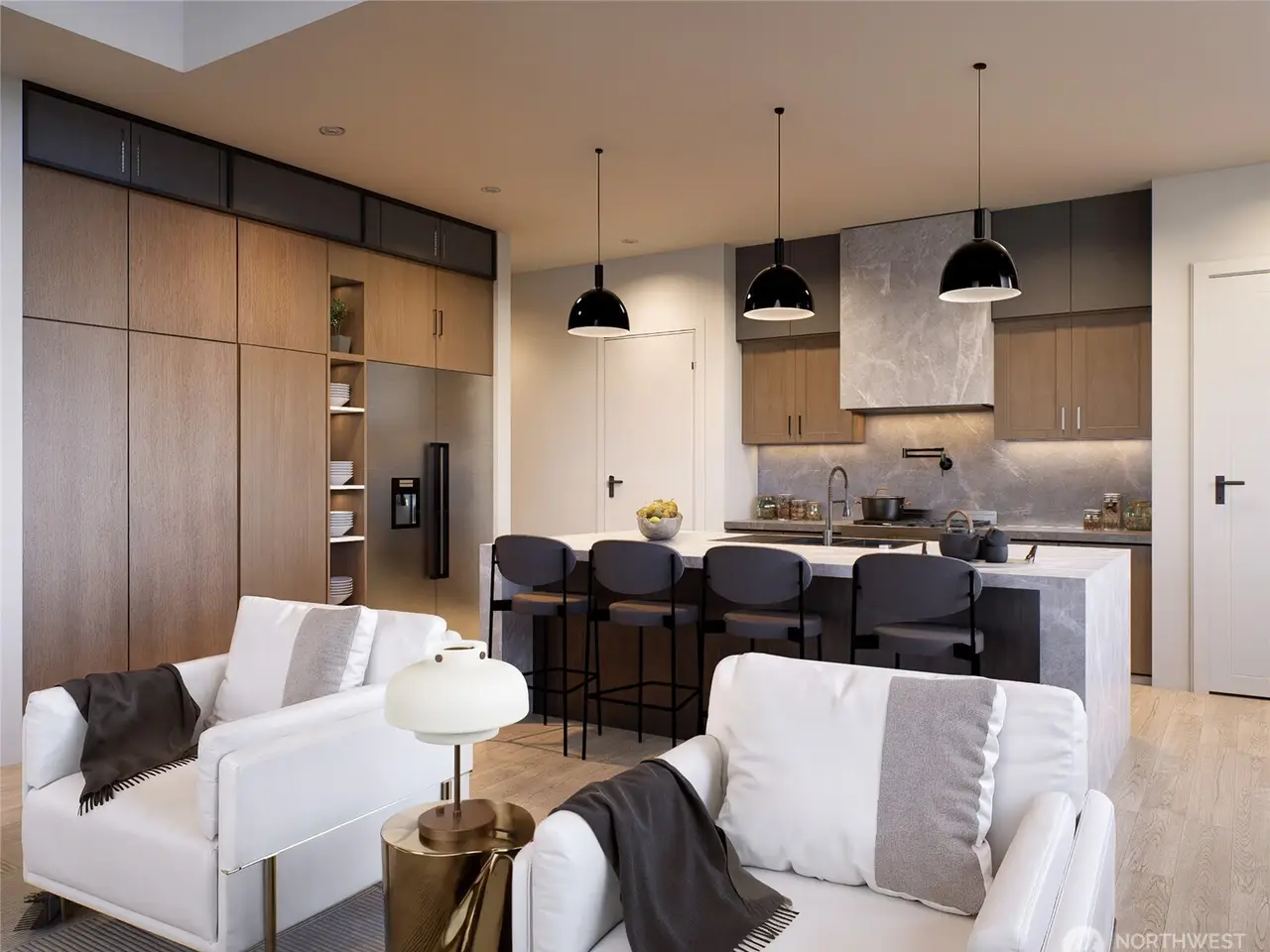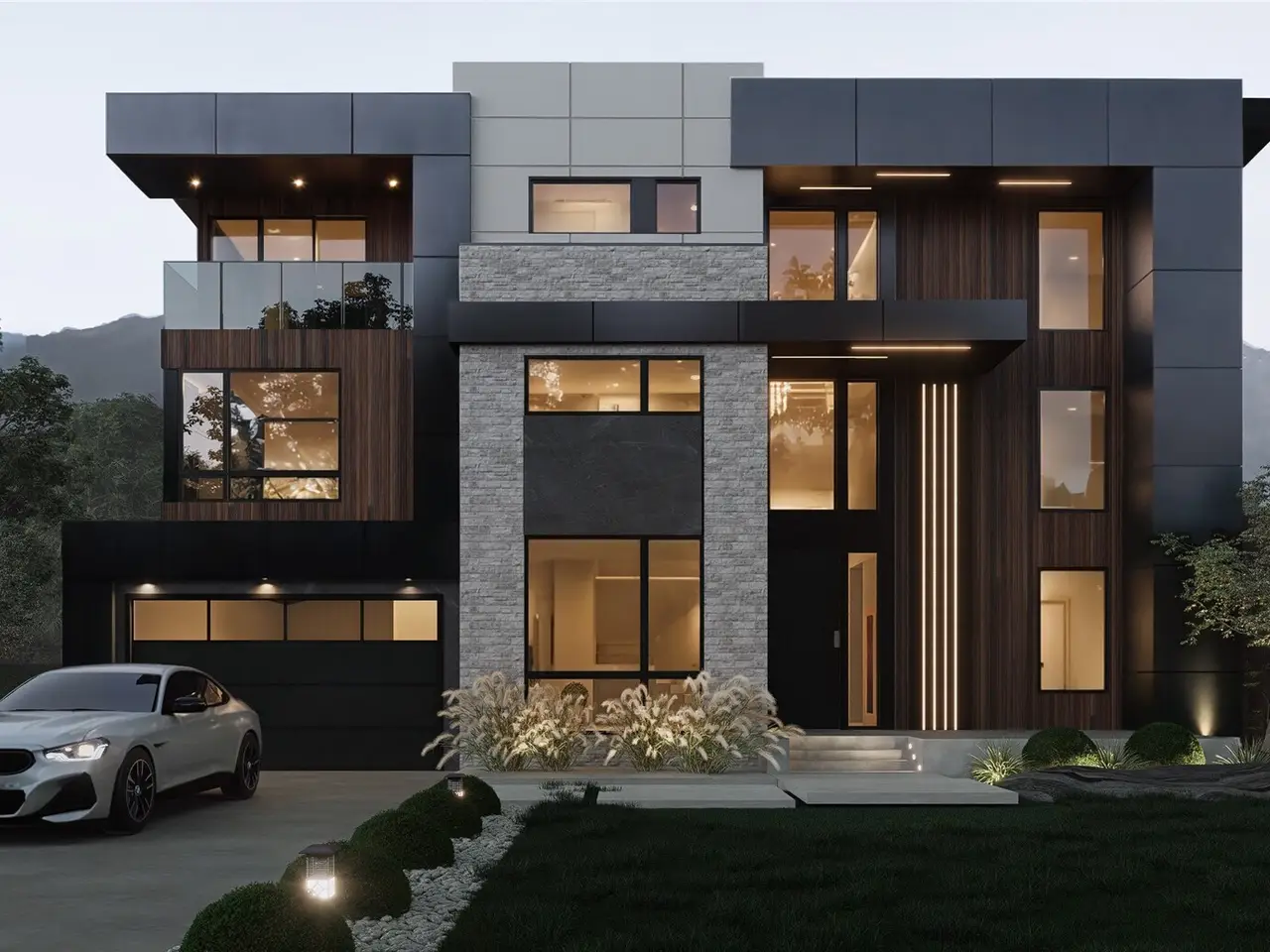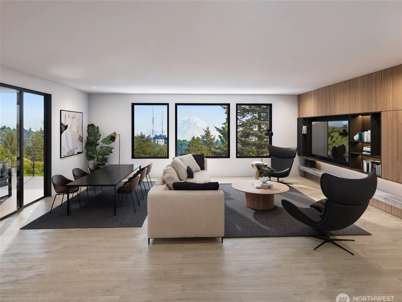 Gorgeous views of Bellevue just two blocks from Bellevue Square. This six bed, five full plus two powder bath, approximately 5,500 square foot modern blends luxury and lifestyle. Accordion doors open to patios, decks and lounge areas for seamless indoor/outdoor flow. German tilt-turn windows, soaring ceilings and sleek finishes elevate every space. Main: chef's kitchen with walk-in pantry, great room, dining, office and guest suite. Upstairs: spa-worthy primary retreat with lounge plus three en-suites and laundry with double-stacked washer and dryers. Top floor rec room and lounge open to expansive deck overlooking Bellevue. Mud room has stacked washer/dryer as well. Elevator, three-car garage and covered patios complete this urban retreat. Estimated Completion Spring 2026. Choose finishes that fit your lifestyle!