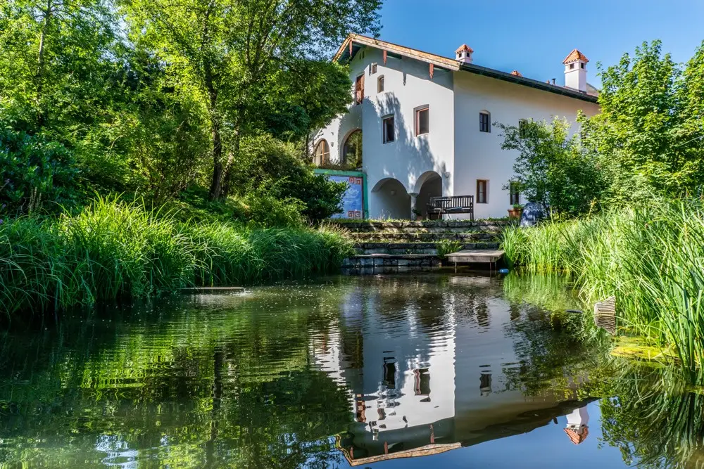 This listed baroque residence with extensive grounds is located within the historic town center and just a few steps away from the southern-style market square - in an idyllic location. The property is situated on an island with a surrounding artificial stream fed by the Wanklbach. This unique location promises absolute privacy in a secluded setting in the middle of the village center - completely untouched by the hustle and bustle of urban life. The picturesque main building of the former Bruckmühle dating from 1767 in the style of a baroque manor house was completely renovated back in the 1990s and most recently extensively and lovingly modernized in 2016. Today, a successful combination of historical splendor and modern living comfort awaits you in the multifaceted walls. On two lovingly renovated floors, residents will find plenty of space for living, well-being and self-fulfilment on over 380 m² of living space. The first floor impresses above all with its cross vaults and Bohemian vaults, but also with a variety of special rooms and retreats. Whether it's the eat-in kitchen with luxury fittings, the atmospheric parlor with tiled stove, the spacious split-level living room with fireplace or the cosy lounge with bay window, each room has its very own character and reveals its very own purpose. The upper floor offers no fewer highlights and impresses with a total of three high-quality, modern bathrooms, stately bedrooms and study rooms and a separate granny apartment, which exudes its very own charm with large arched windows. The top floor also offers exciting expansion potential for a partial area. But it's not just the top floor that has considerable potential; the longhouse, the former farmhouse along the stream, also offers around 100 m² of further expansion potential for a wide variety of uses and space for a studio with a large glass front, for example. The technical building infrastructure such as water, sewage, electricity and heating has already been prepared. The garage, former horse boxes and an outdoor seating area are currently located there. The long house and the residential building are connected by the arched gateway with a restored wooden gate over 100 years old and 5 meters high, which provides access to the outside area and the idyllic garden. Whether you choose access via the archway, the various points in the house or via the imposing outdoor seating area, the garden offers views from all sides and on two levels and, above all, maximum privacy. The central point in the garden is undoubtedly the elaborate, high-quality swimming pond with a depth of up to 3.5 meters and exquisite botanical planting. Here you can jump into the water from the jetty, enjoy a wonderful view of the house and garden from the deckchair on the wooden deck or simply let your mind wander while watching the koi. These and other atmospheric oases in the garden round off an exquisite living ambience on this stately property. The symbiosis of urbanity and maximum privacy, paired with superior living comfort and plenty of space in a historic setting leaves virtually nothing to be desired! Come and see for yourself! We would be delighted to introduce you to this dream retreat! As a first step, please send us a written inquiry (real estate portal, homepage, e-mail) with your full contact details. We look forward to your inquiry! ...and here are a few more impressions of the property: https://youtu.be/hDTbViBUSDg