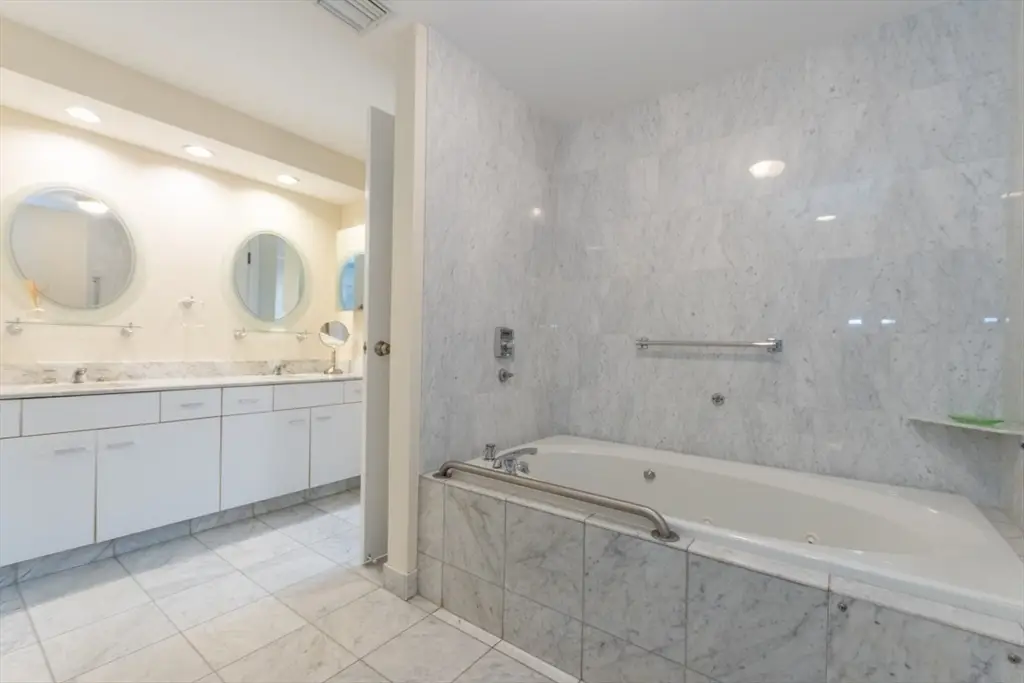 Welcome to the ultimate luxury at Hampton Place! Experience effortless entertaining in this extra spacious back-facing corner unit - the epitome of elegance. It offers grand Living / Dining room complemented by architectural details, hardwood floors, a fireplace, abundant closets, and a full in-unit laundry room. The primary suite features a spa-like marble bath w/ whirlpool tub, separate shower, and double vanities. A second en-suite bedroom, separate office/den, and powder room add versatility. Enjoy coveted serene views of the pond, rare four-car garage parking, extra storage, and a full time concierge. Renovated "Country Club" common area facilities offer indoor and outdoor pools, a spa-inspired fitness center w/locker rooms & sauna, grand function room, numerous inviting entertainment spaces. Ideally located near Wegmans, The Street, Chestnut Hill Mall, public transportation and major roads. This residence offers space, elegance, and easy living!