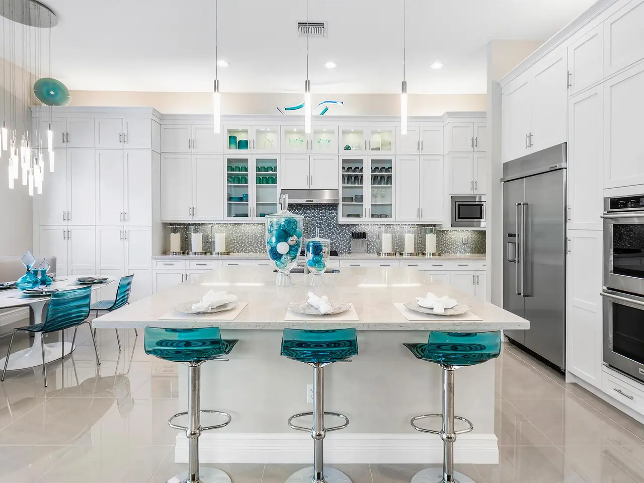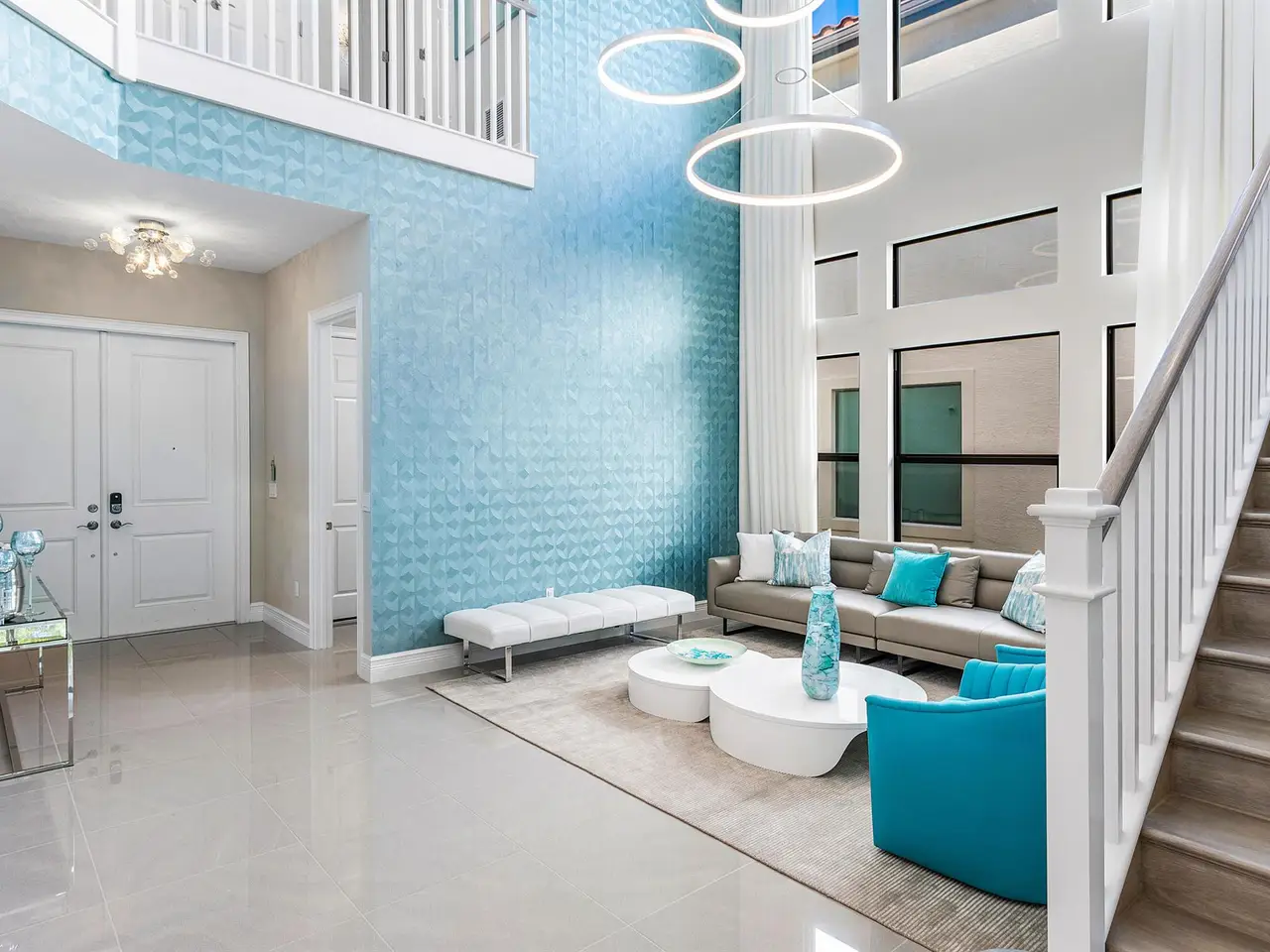Experience elevated living in this exquisite Anabelle model nestled in the prestigious, guard-gated community of Seven Bridges. Meticulously designer-decorated, this expansive residence offers 5 bedrooms, 6 bathrooms, a versatile club room, loft, private pool facing the reserve, and a 3-car garage. Blending sophisticated style with everyday comfort, this home is the perfect backdrop for both elegant entertaining and relaxed living. Modern elegance meets vibrant personality with soaring ceilings, expansive windows, and sleek contemporary finishes throughout. The dramatic 2 story living room stuns with accent walls, chic circular LED chandeliers, and natural light pouring in from every angle. The open-concept layout flows effortlessly into the gourmet kitchen and living areas, continued... perfect for entertaining or relaxing at home. Upstairs, retreat to a sophisticated primary suite with a serene sitting area, custom lighting, and spa-inspired touches. A playful media room adds a splash of color and fun, while the loft provides flexible space for work, play, or lounging. From bold pops of turquoise to curated finishes and statement lighting, every inch of this home is thoughtfully styled for high-impact living. Enjoy resort-style amenities at the Seven Bridges clubhouse, including a full-service Prime 7 steakhouse, a state-of-the-art fitness center with group activities, indoor and outdoor full-court basketball, tennis, and a new pickleball complex (coming soon). Cool off in the lap pool or relax in the free-flowing resort-style pools - all part of a world-class lifestyle experience. This one-of-a-kind residence is a true standout - schedule your private tour today!
